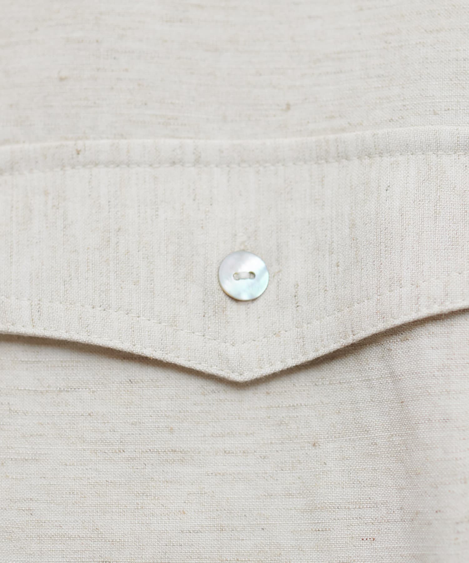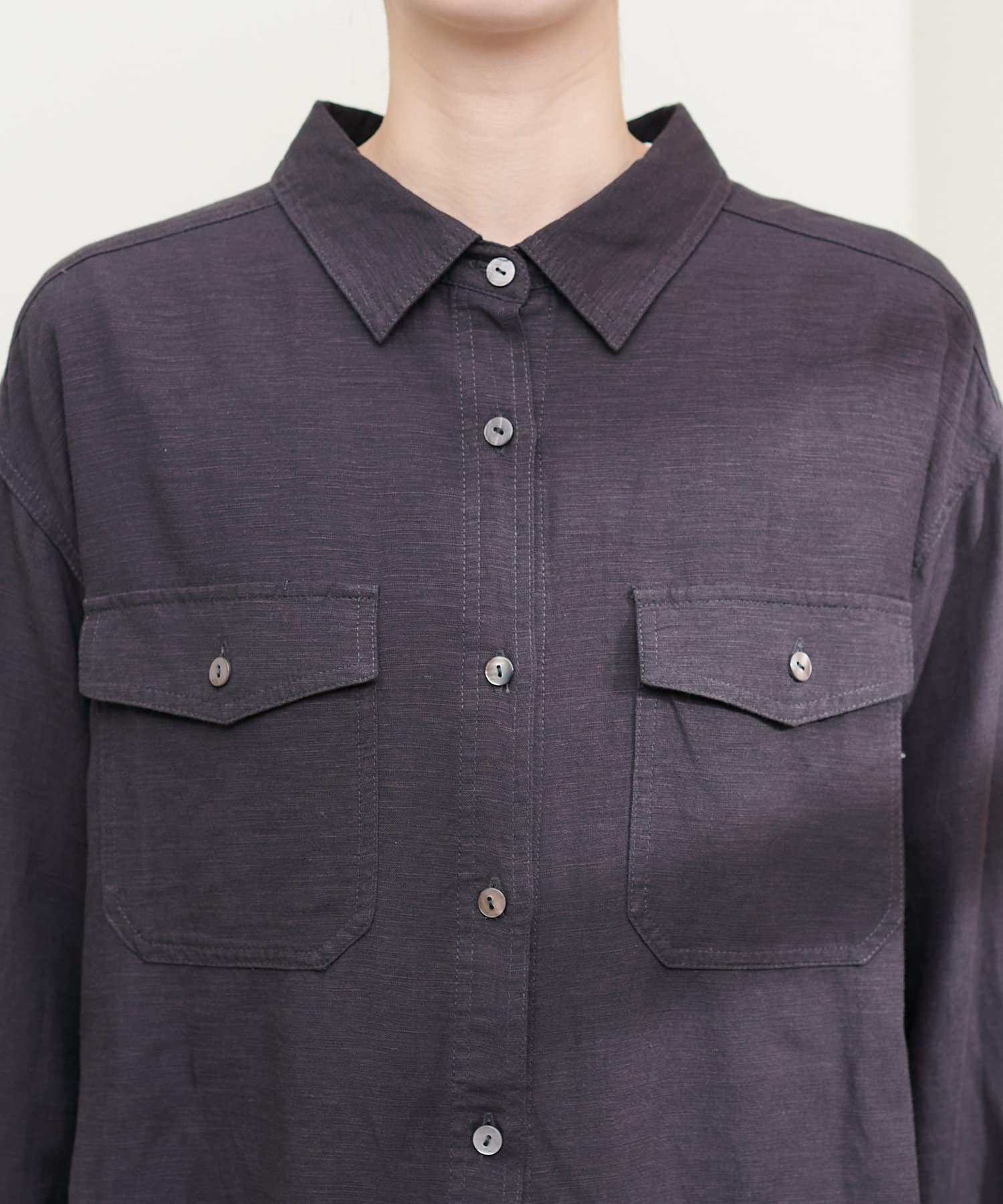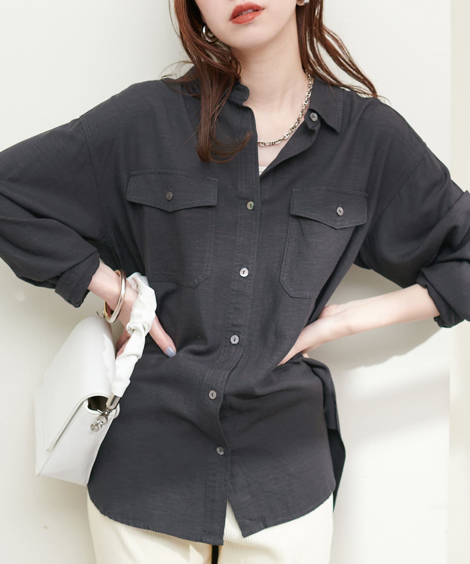 夏の羽織りとしても活躍する麻調合繊のミリタリーシャツ