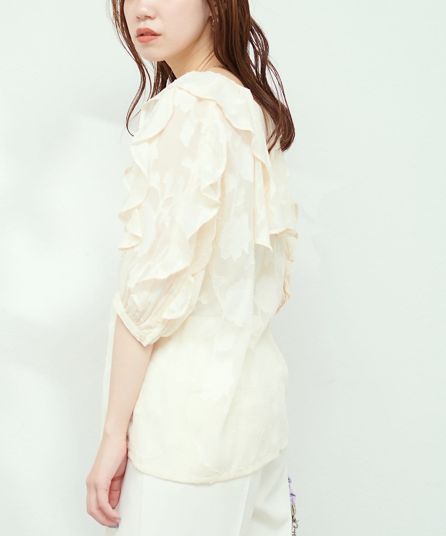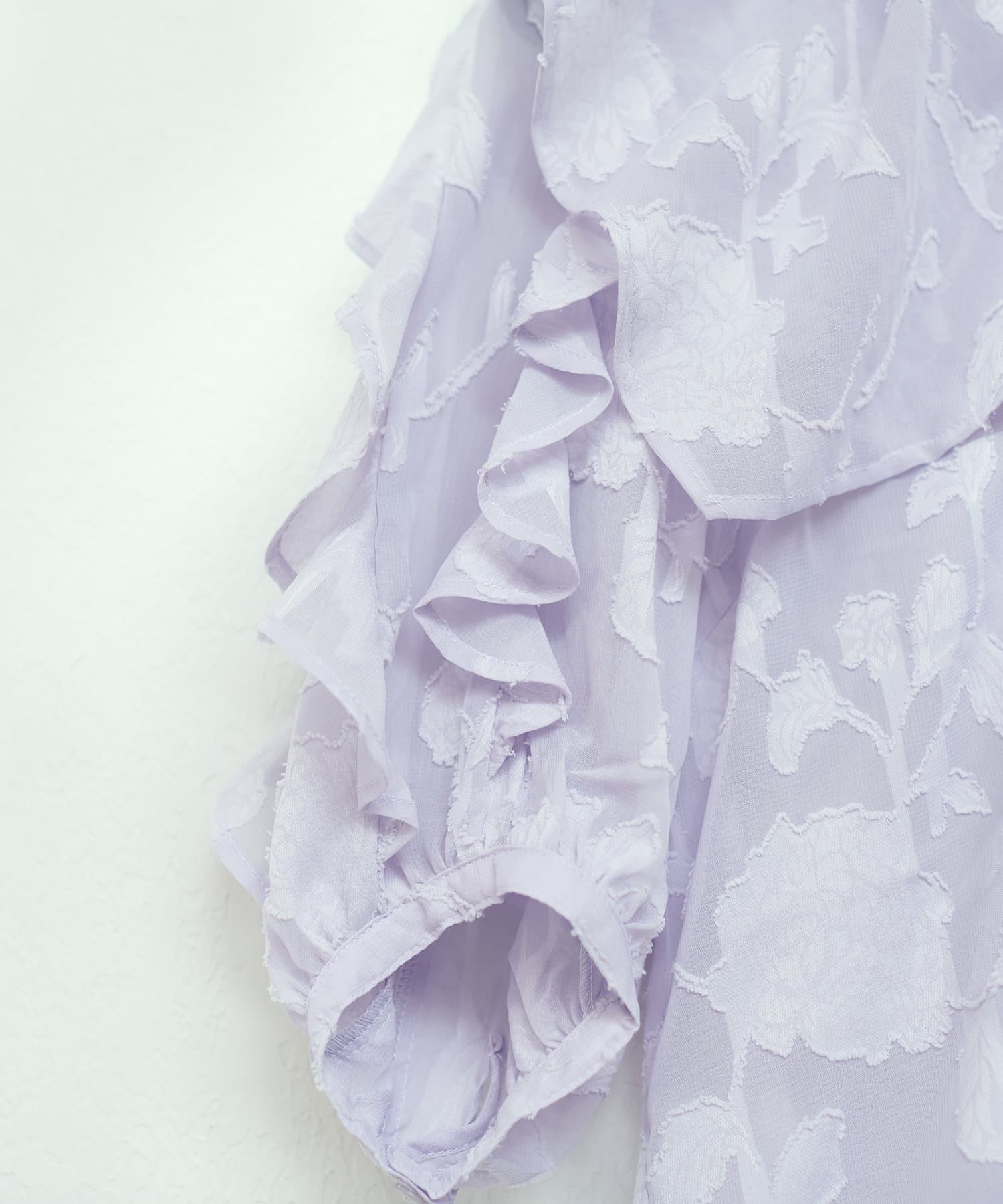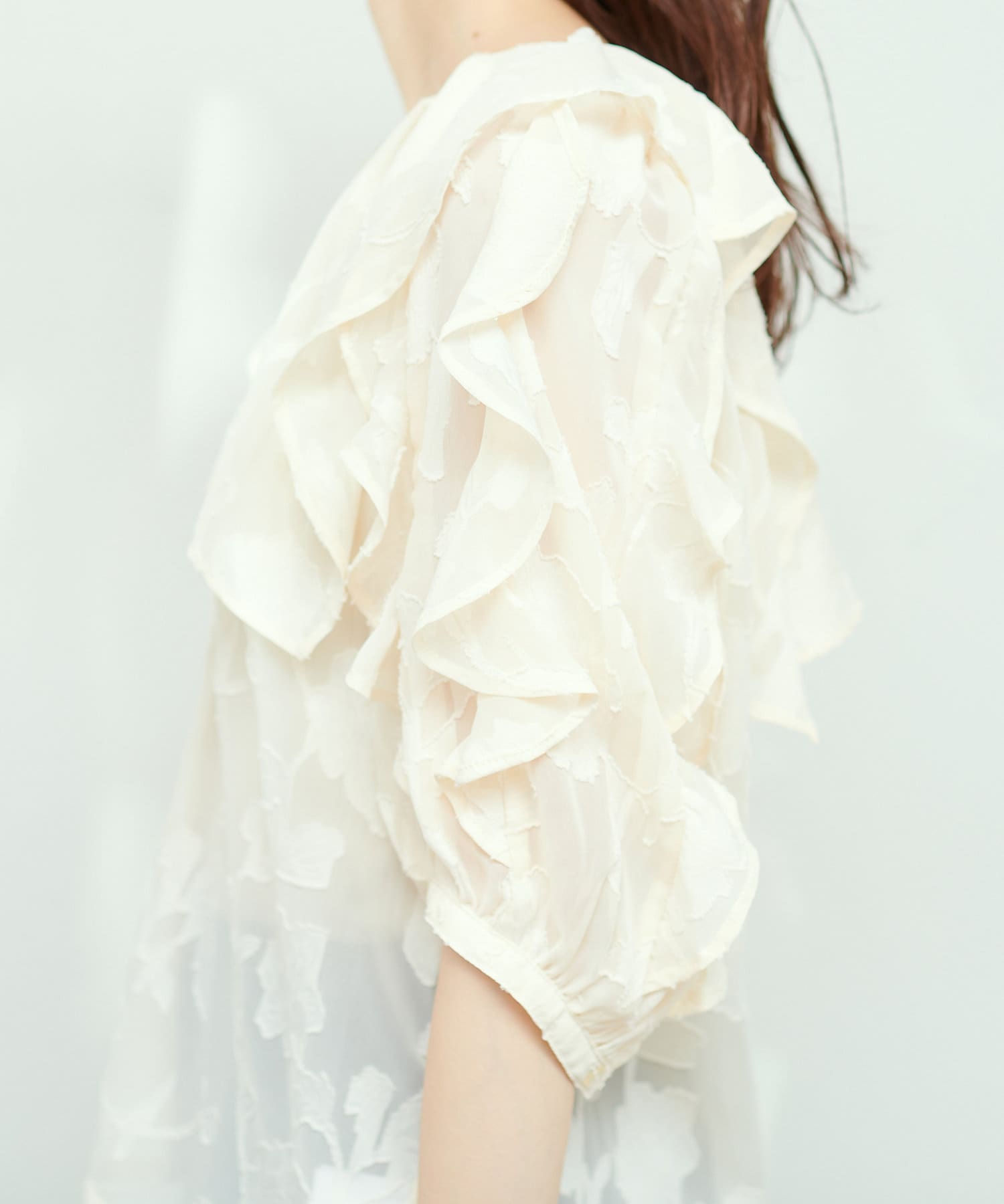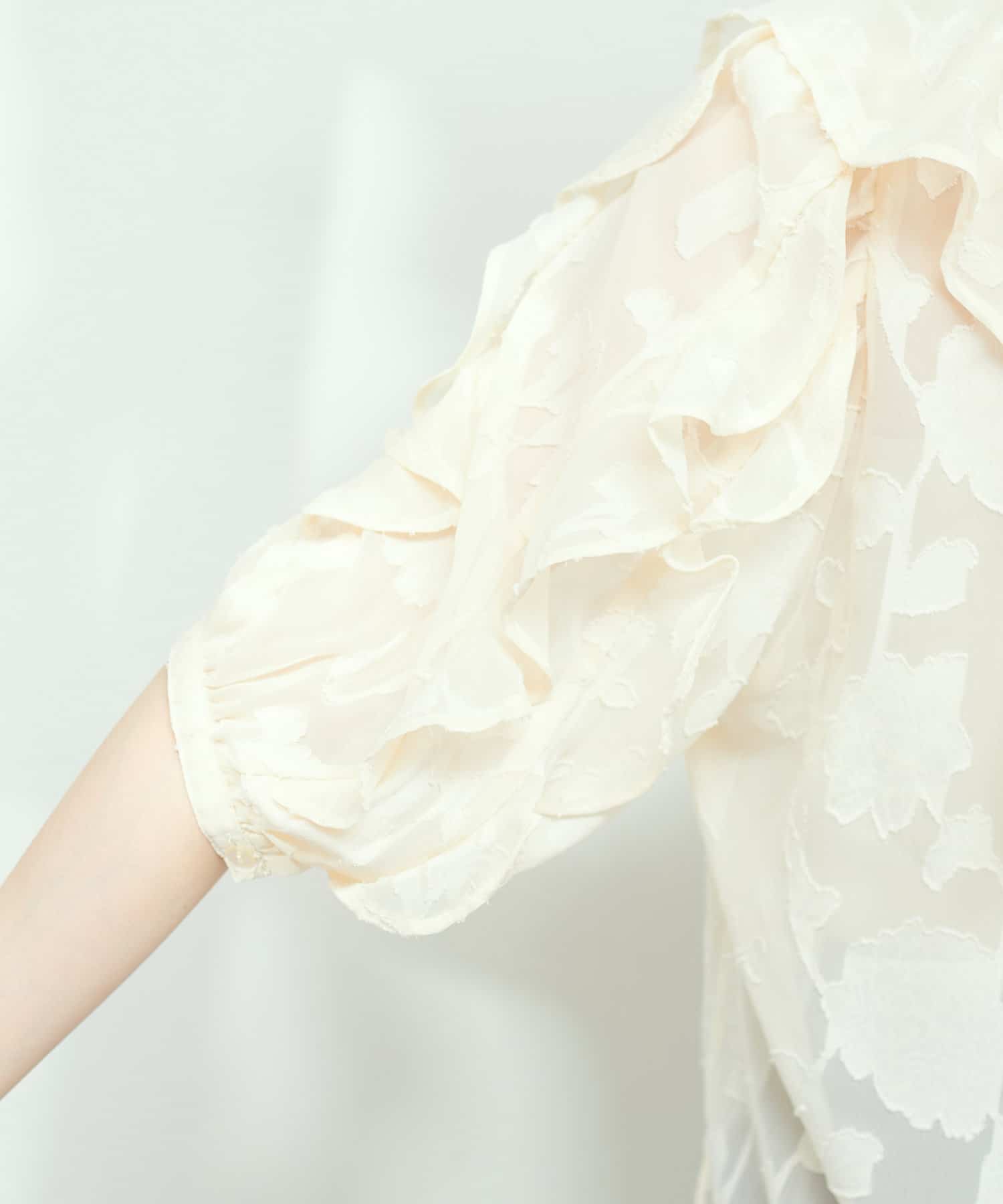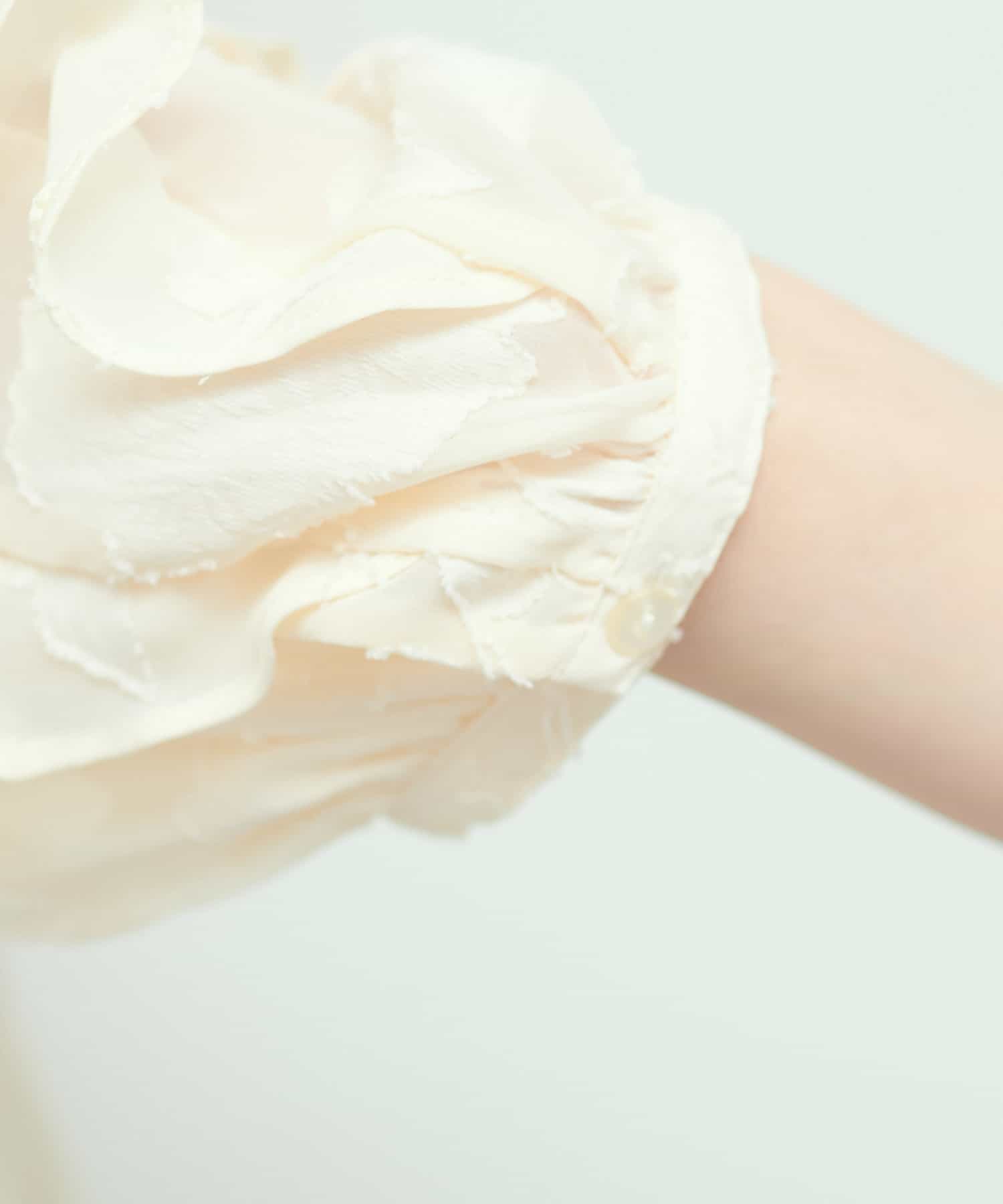 袖のフリルデザインがふんわり立体的なシルエットを作り、