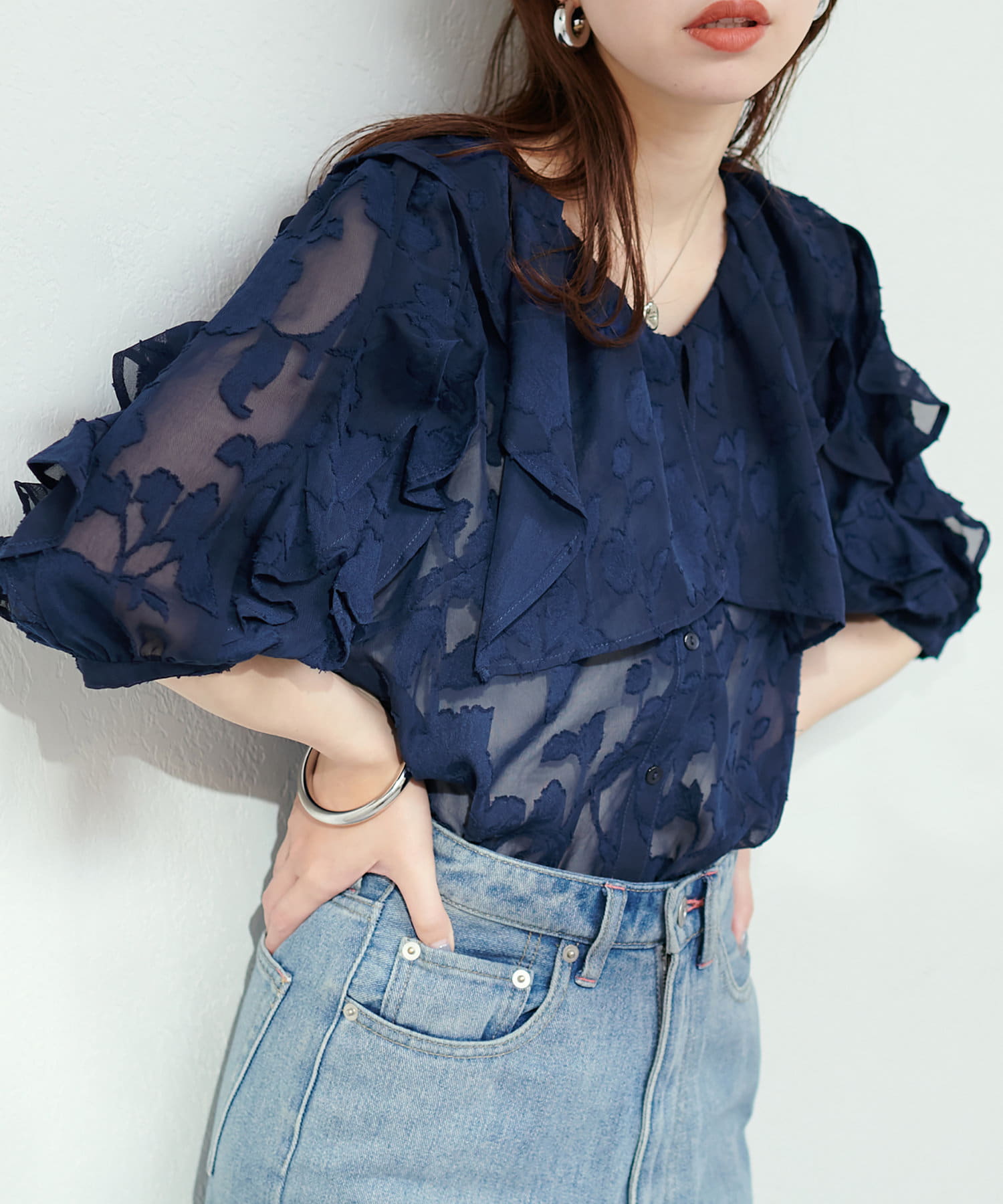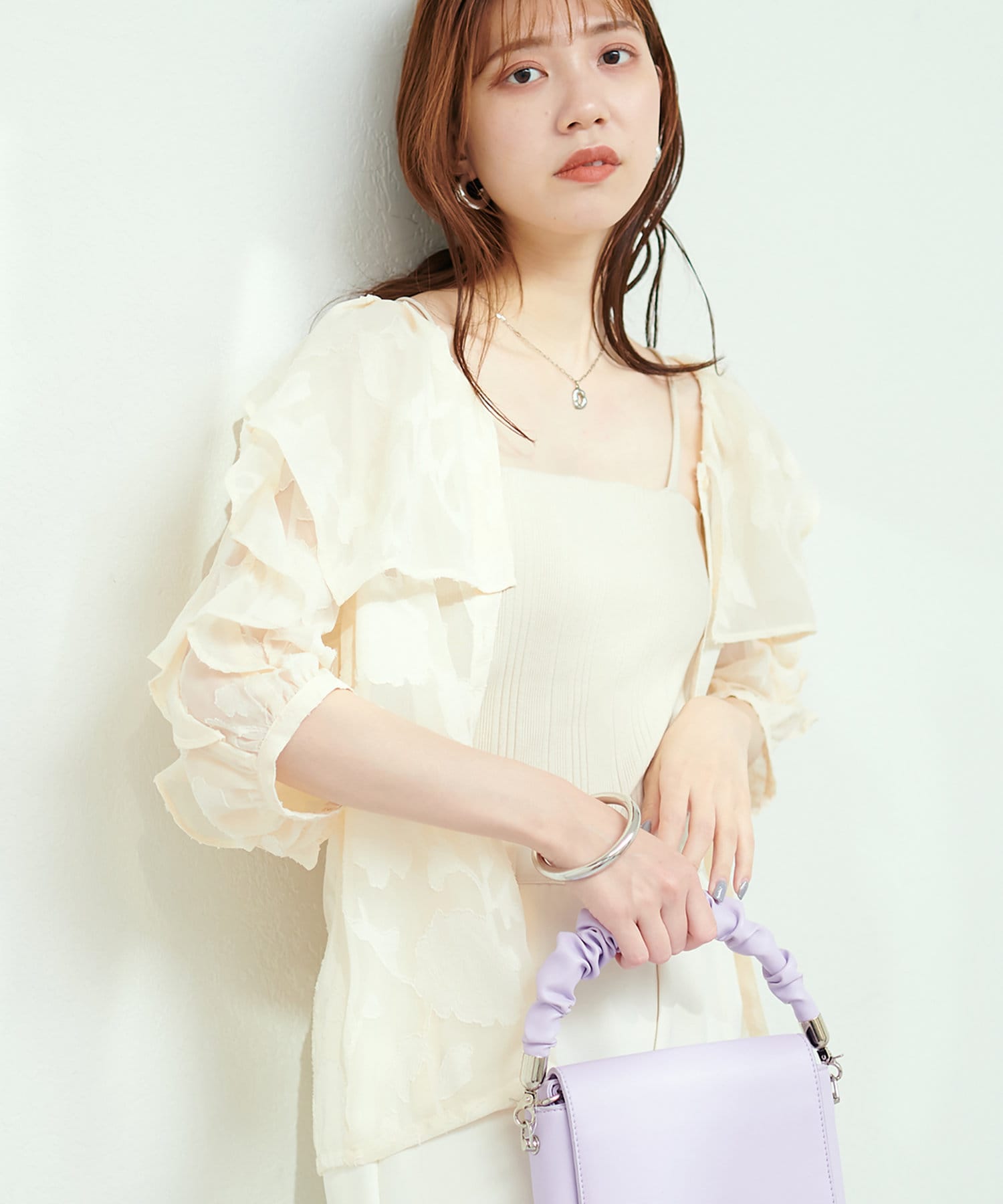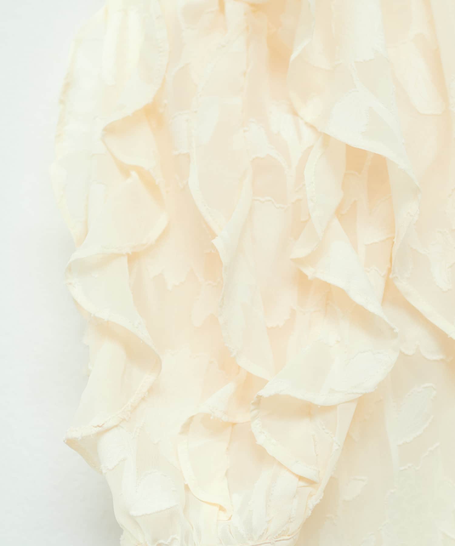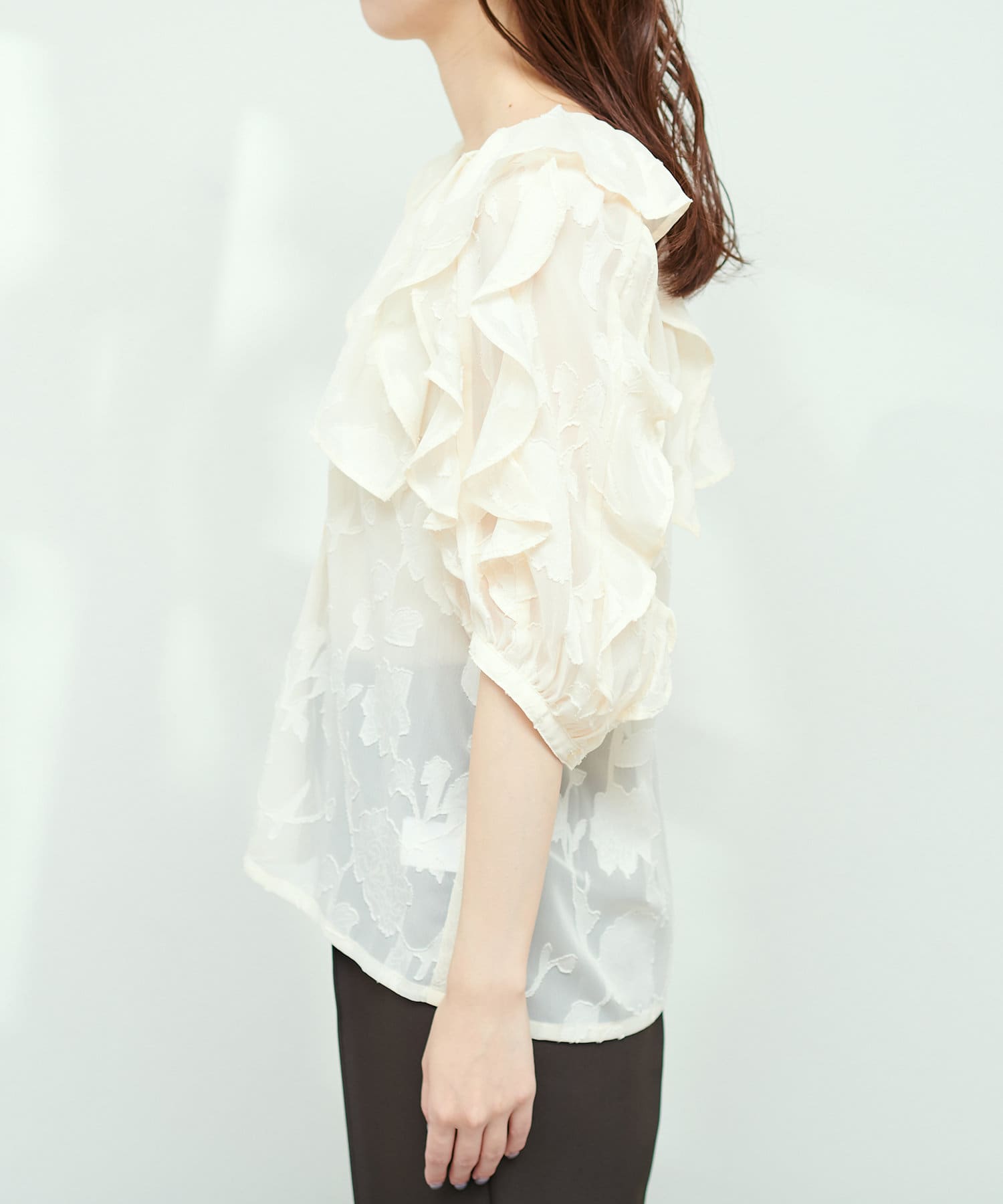 袖のフリルデザインがふんわり立体的なシルエットを作り、