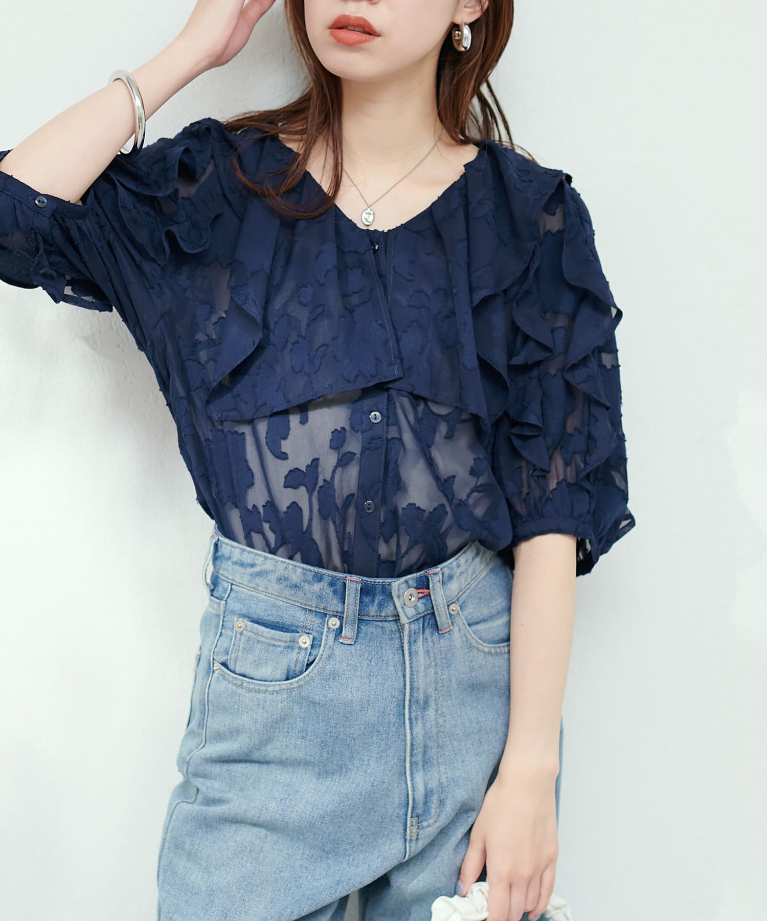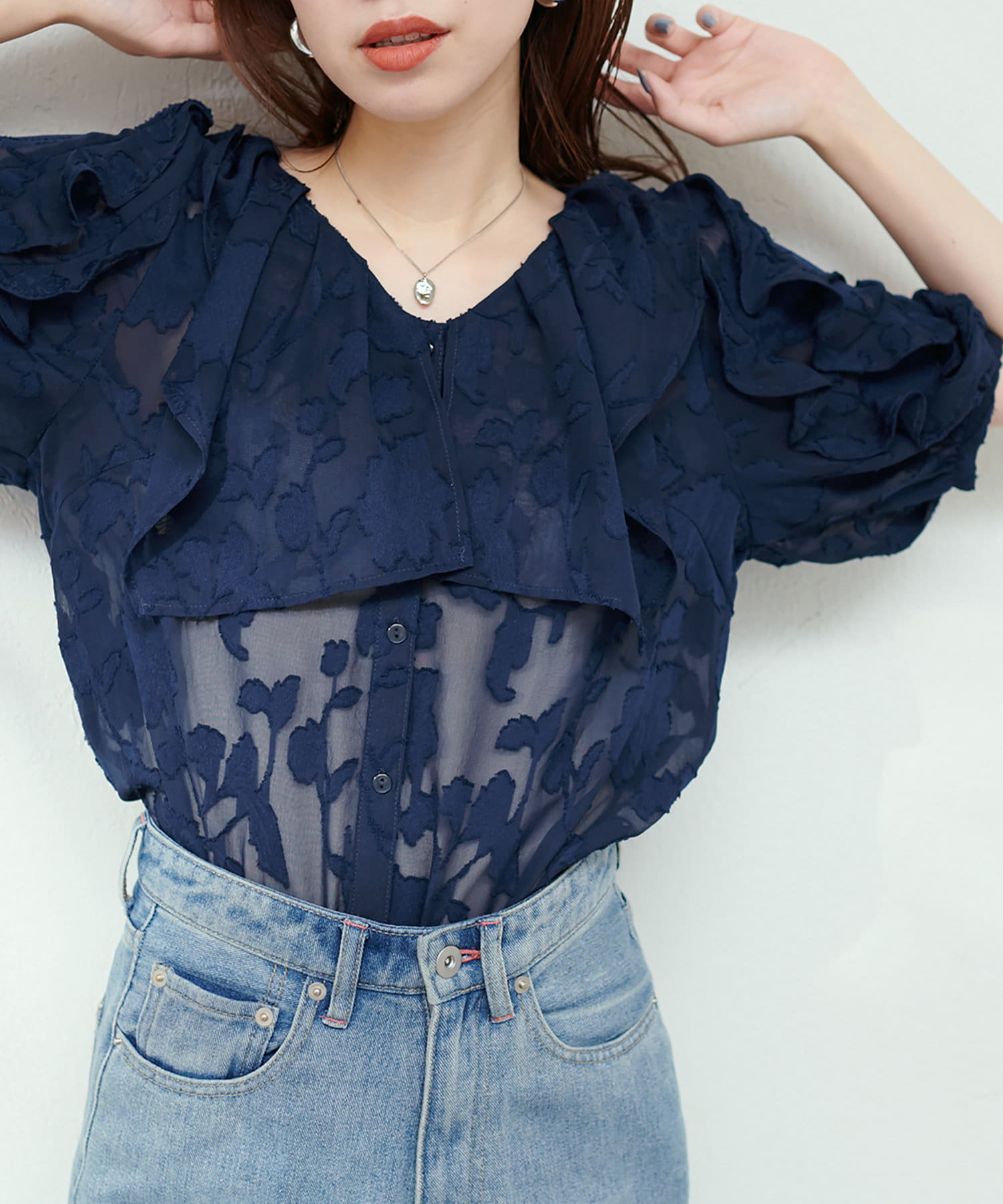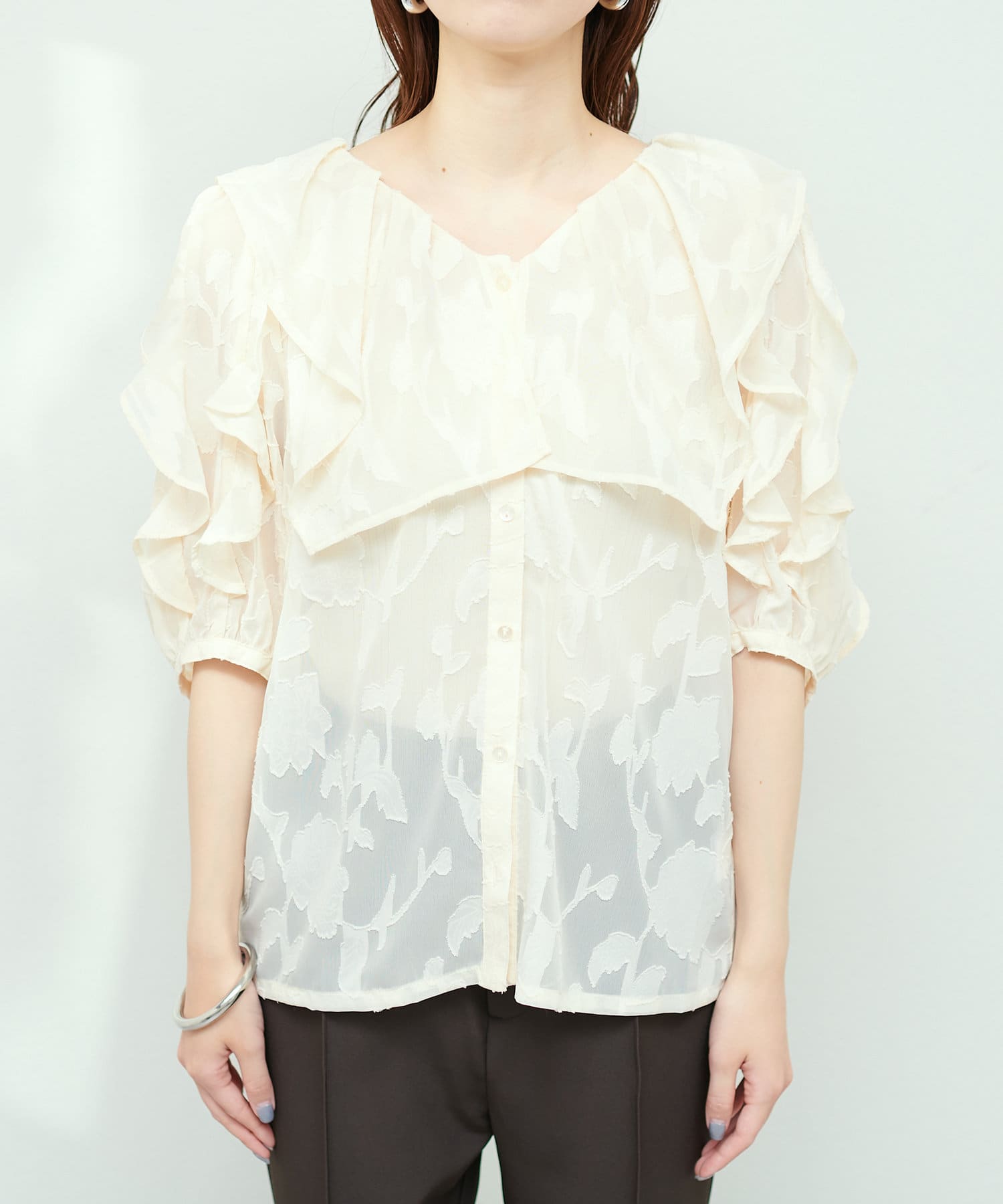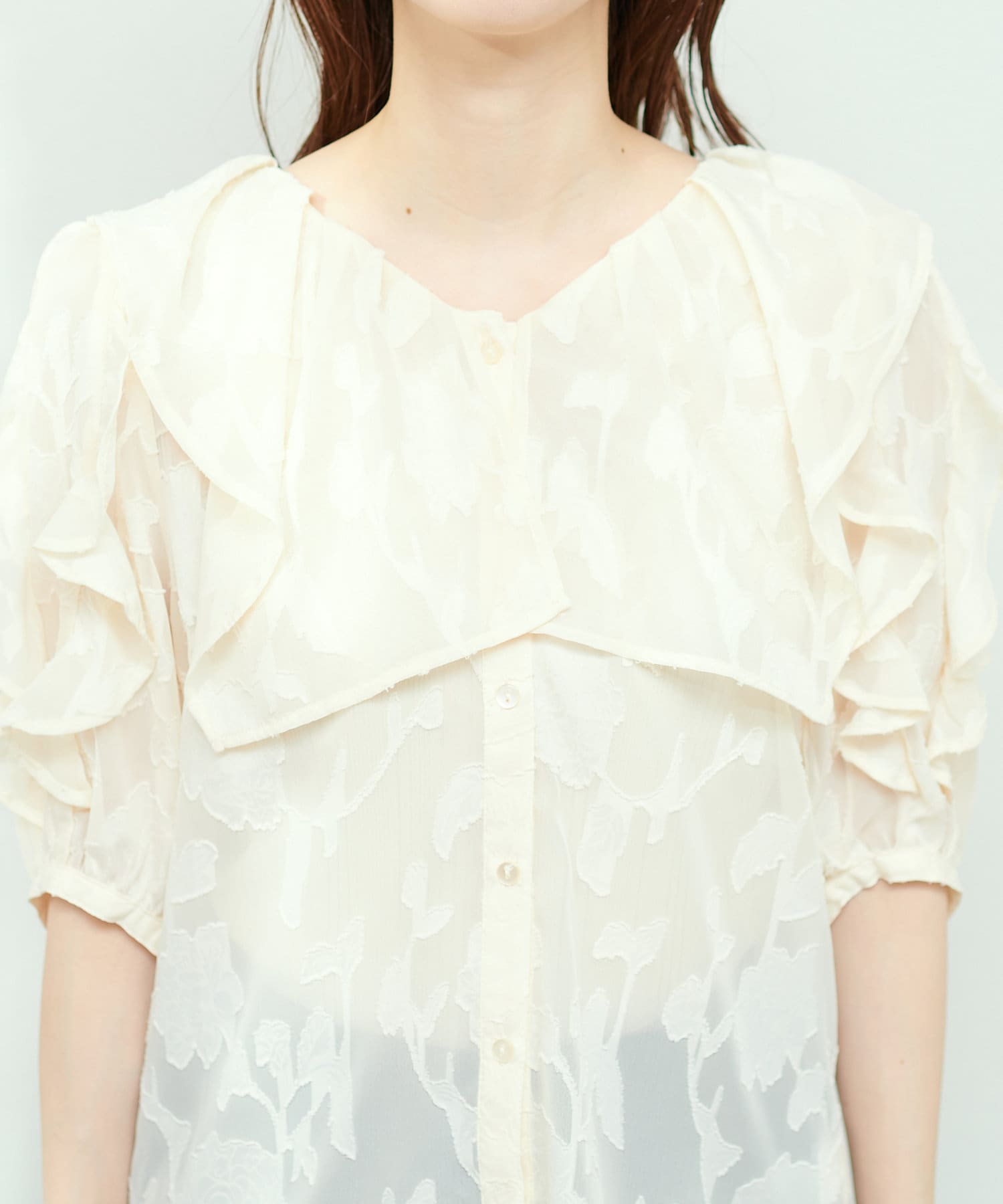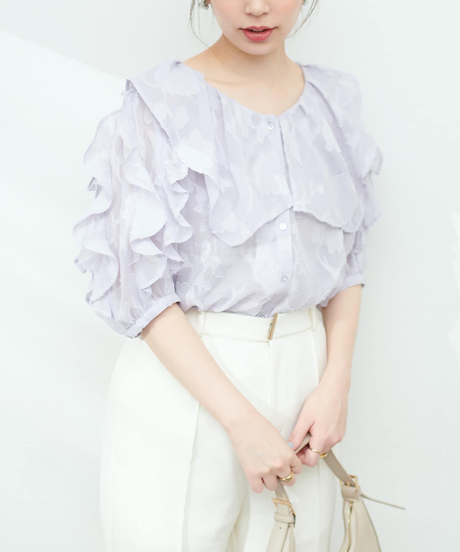 袖のフリルデザインがふんわり立体的なシルエットを作り、