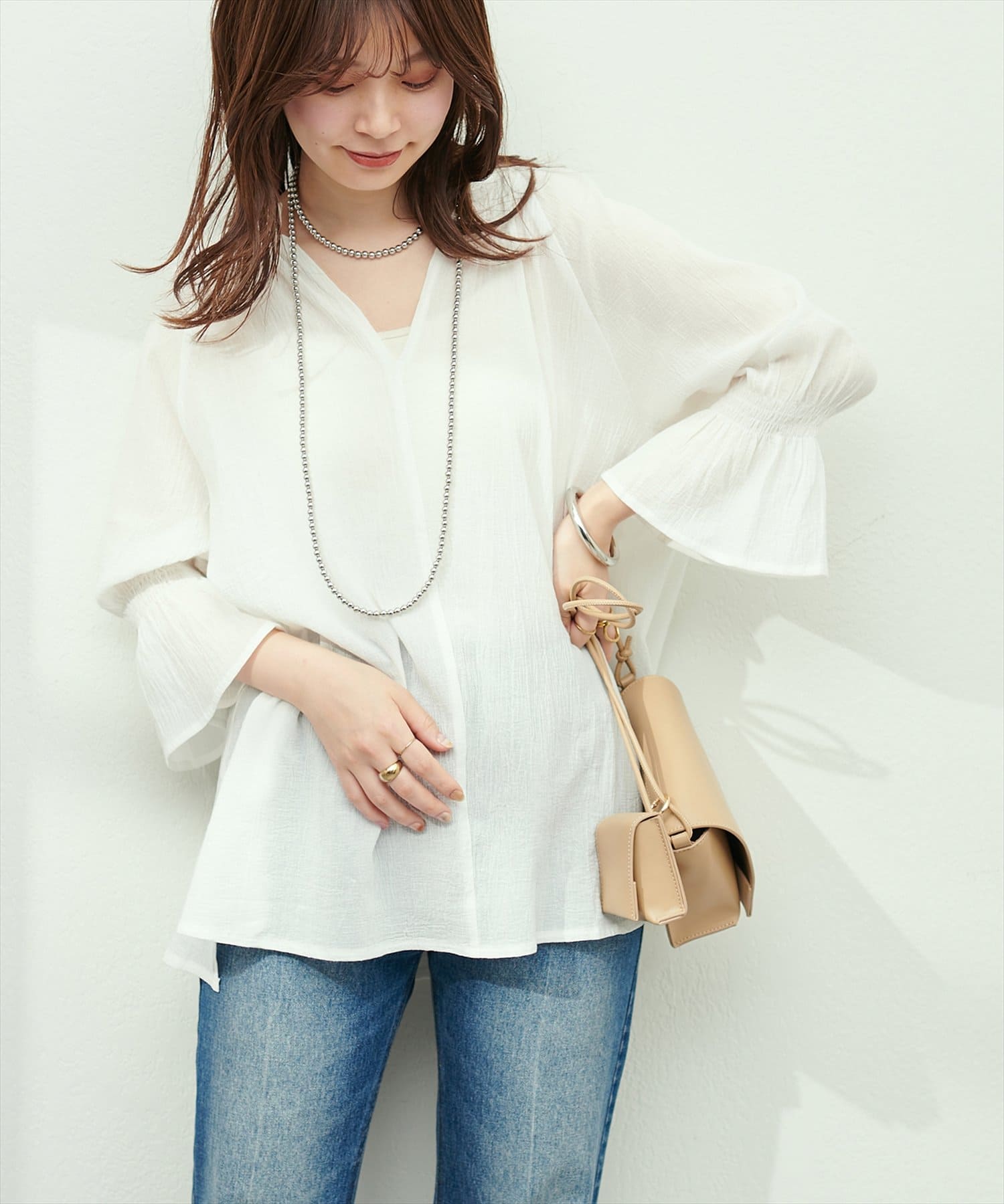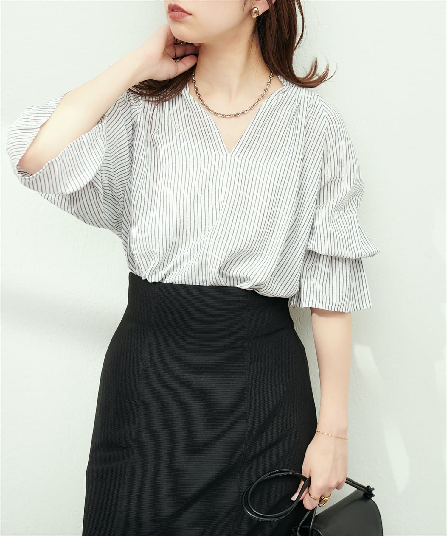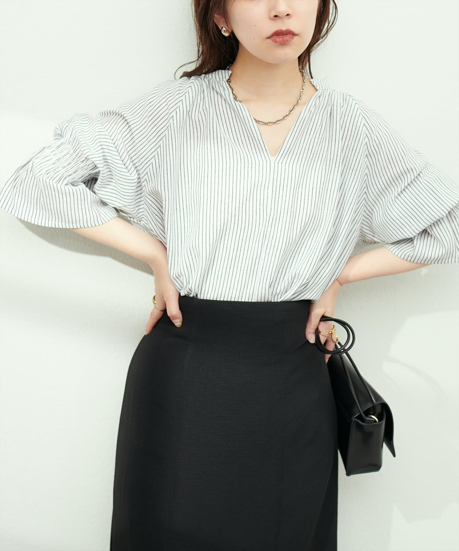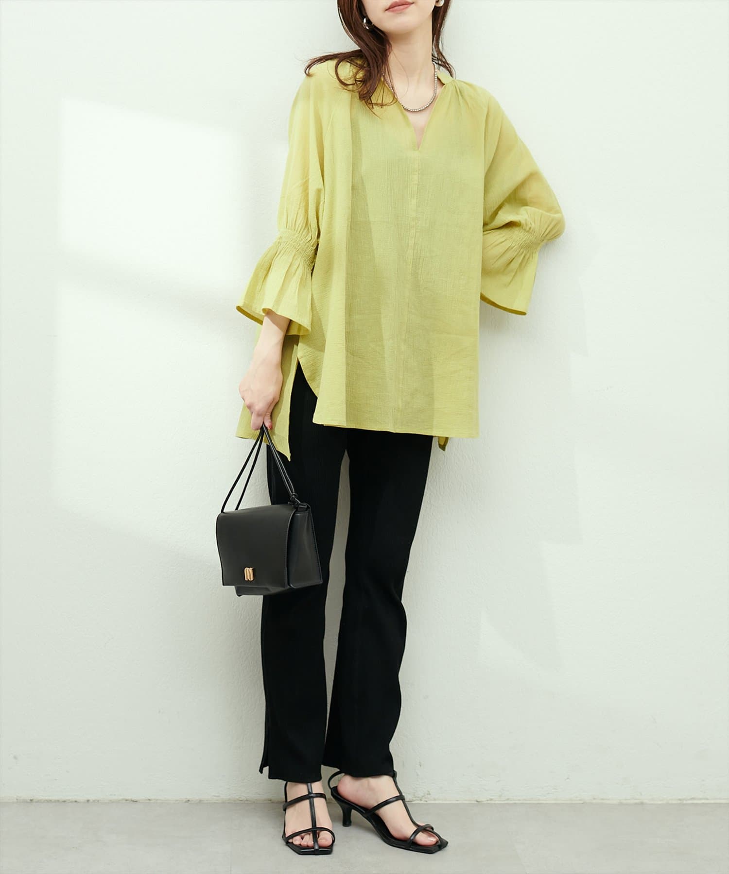袖にはゴムが使用されており、ぽわんとしたキャンディスリーブがフェミニン。