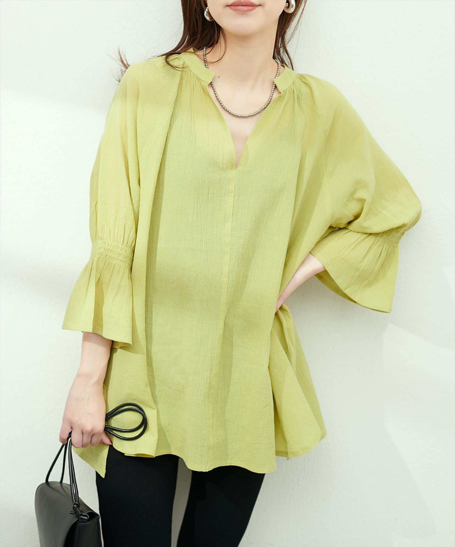 綿の柔らかい風合いと楊柳素材が魅力の大人チュニック。