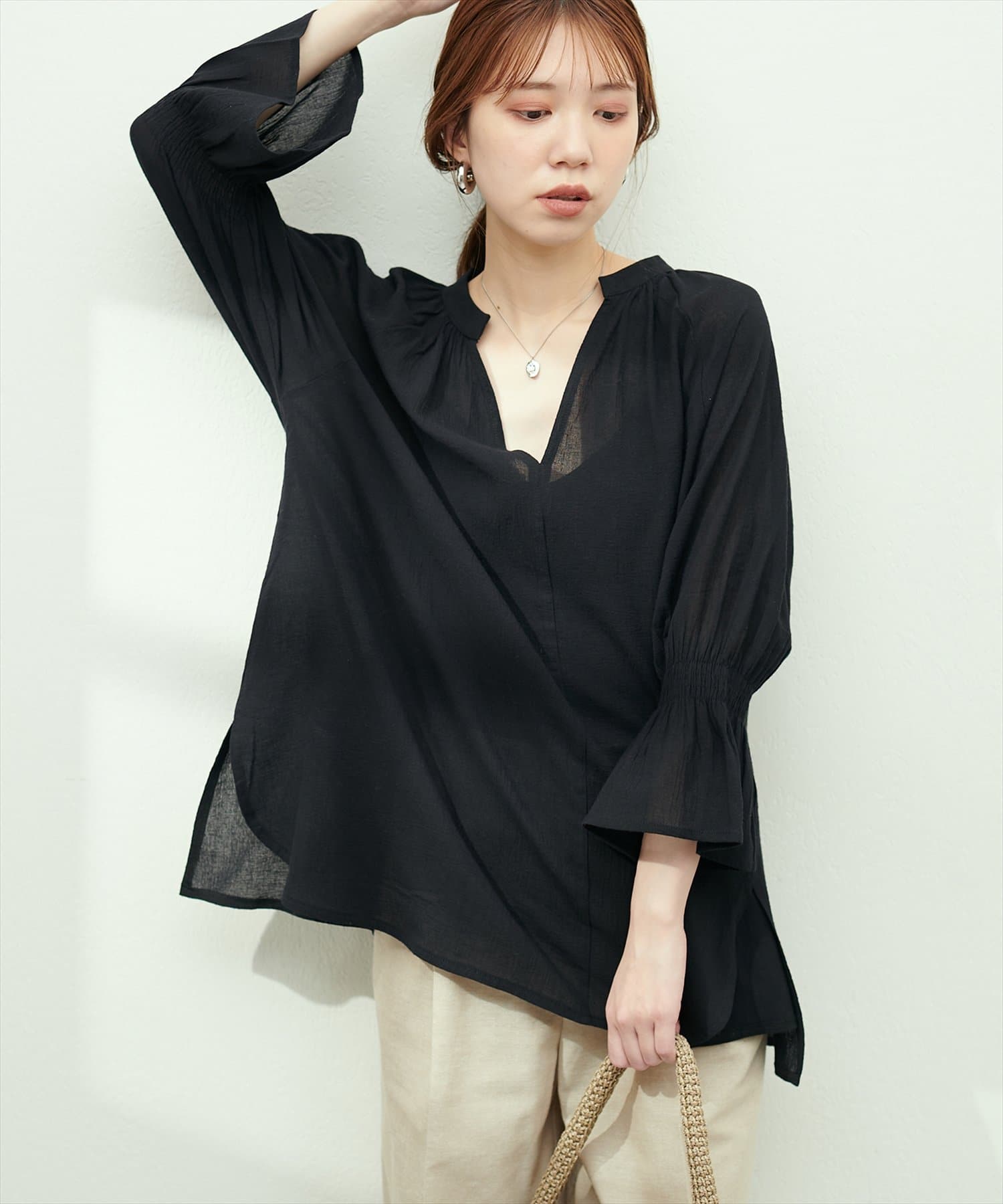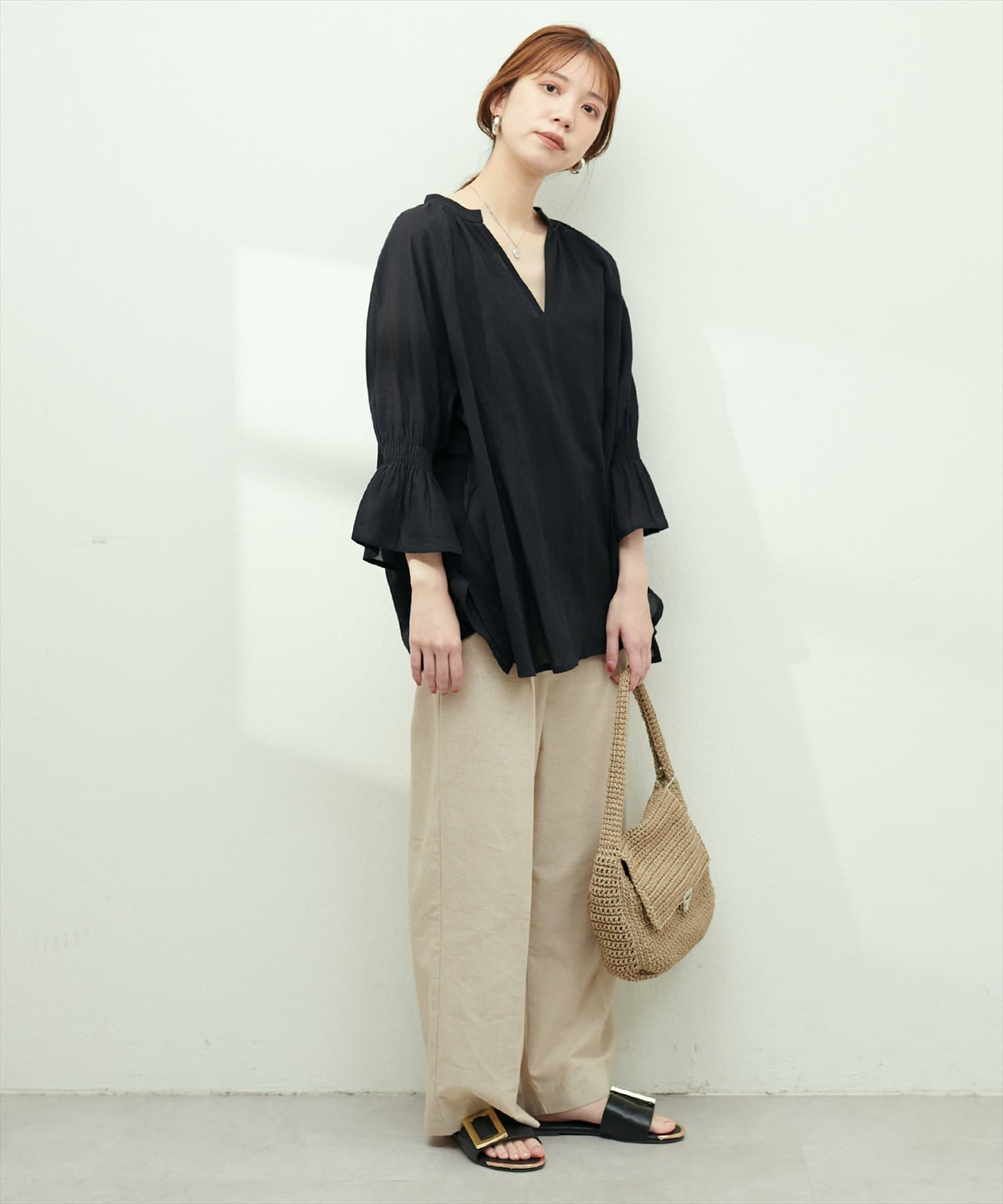 テロンとしたパンツと合わせて品よくまとめたり、いつものデニムと合わせて大人カジュアルにきめたり、様々なコーディネートに使える主役級チュニック。