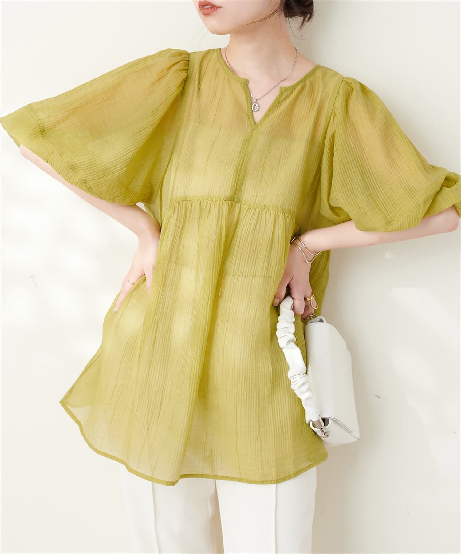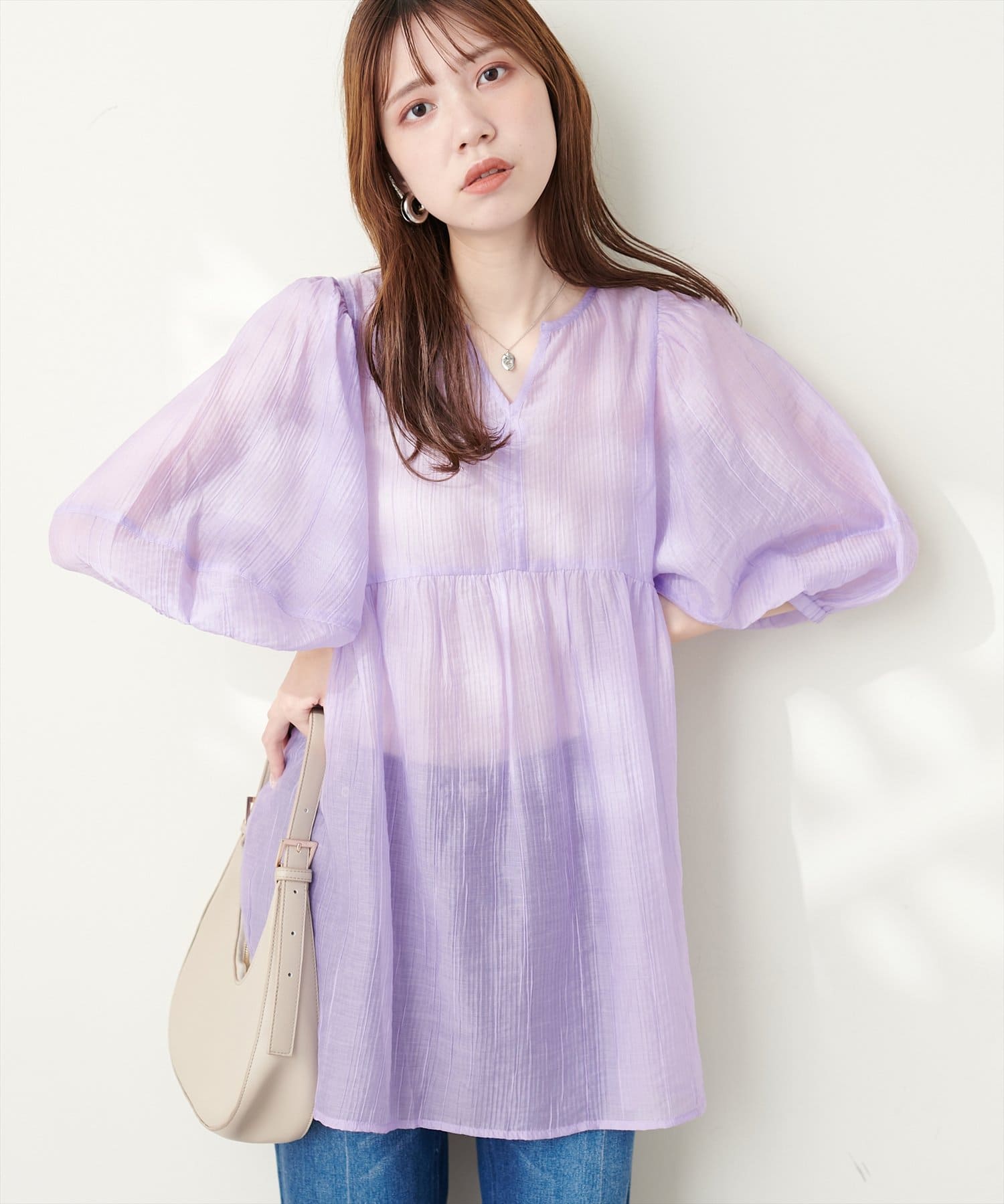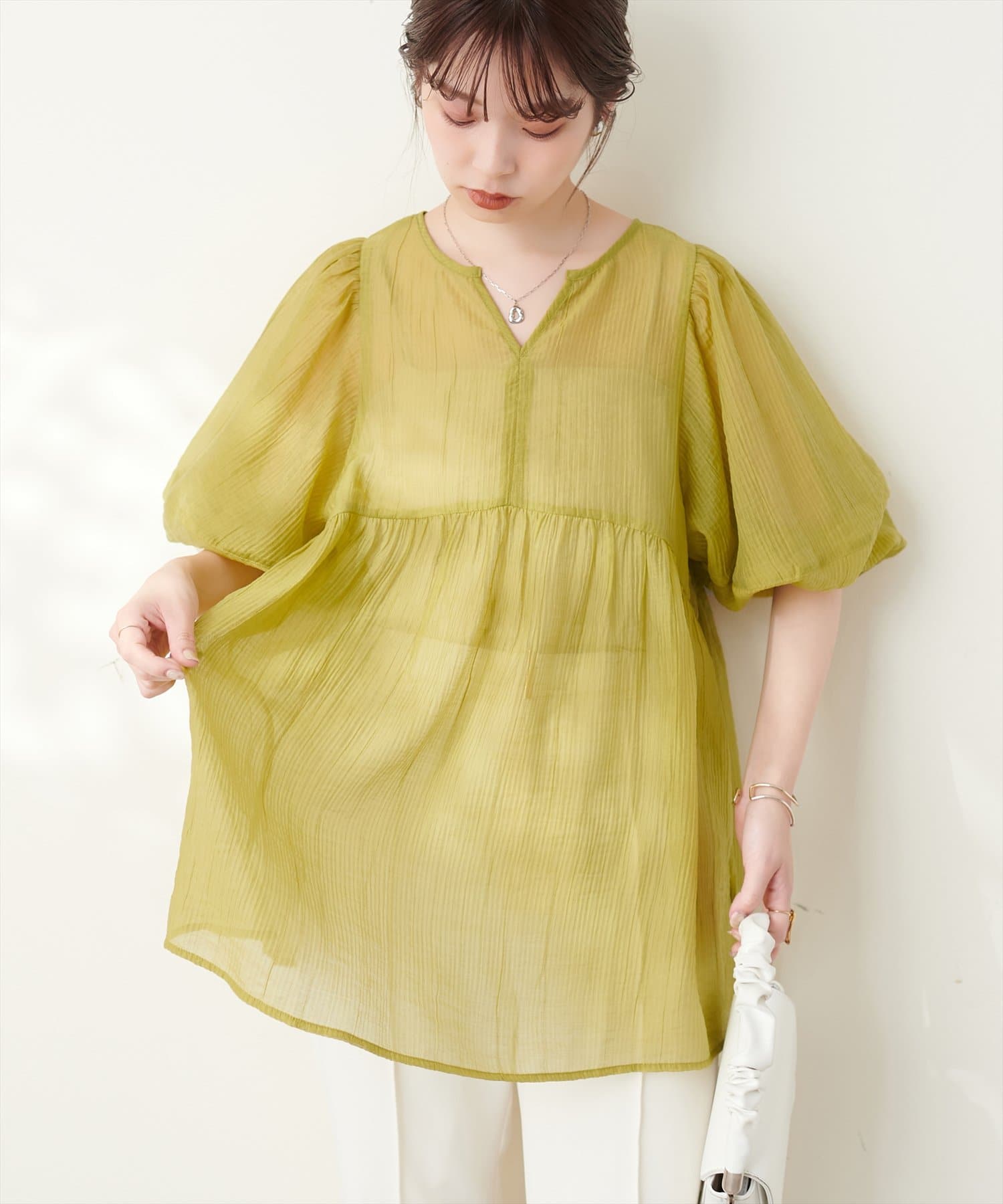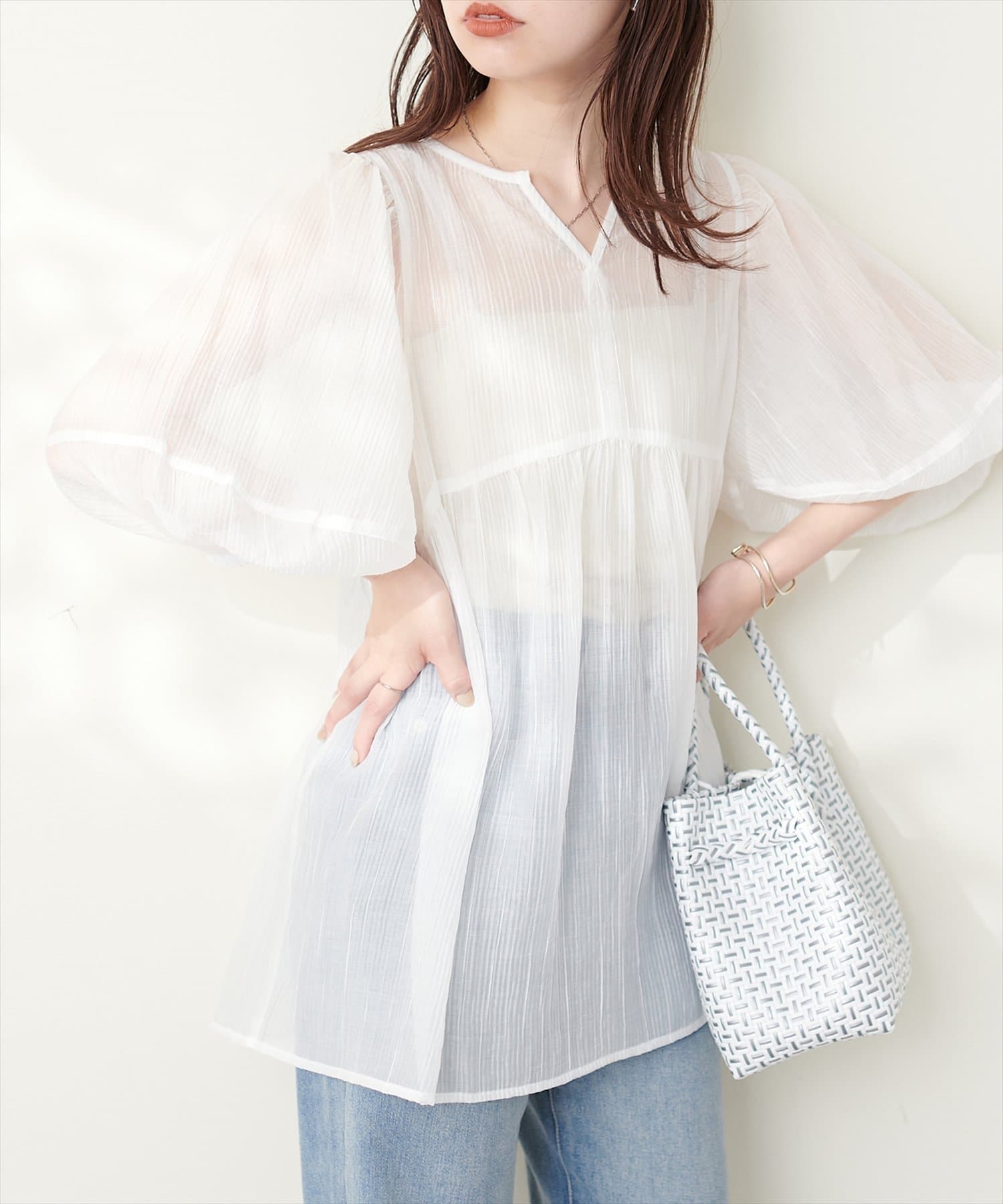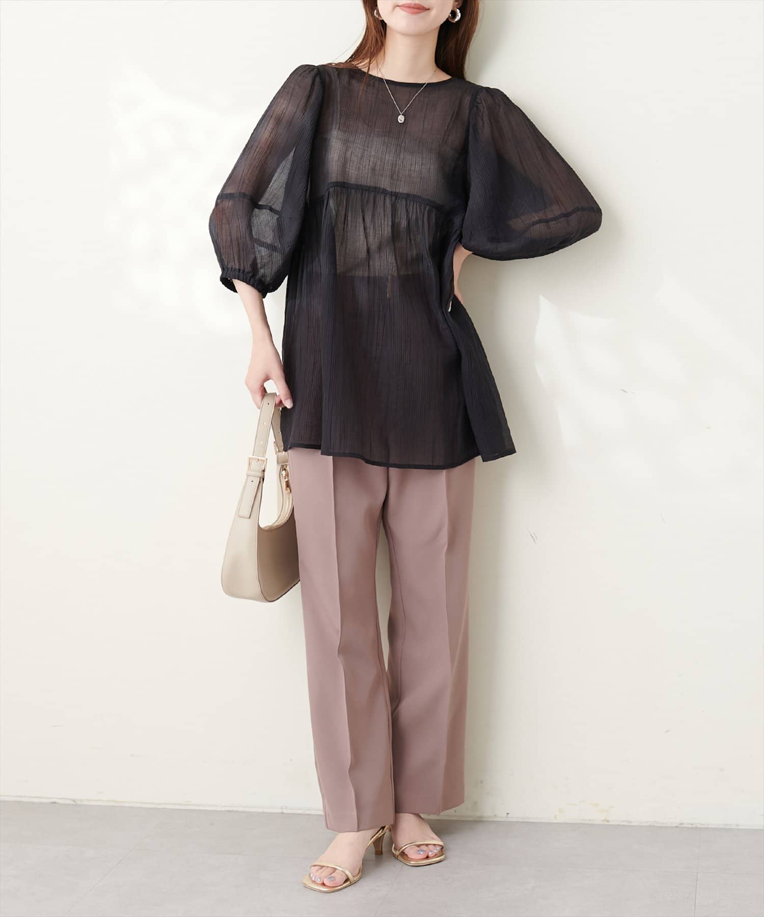 ほんわりとしたボリューム袖がトレンドライクで、女性らしさを意識したデザインに。