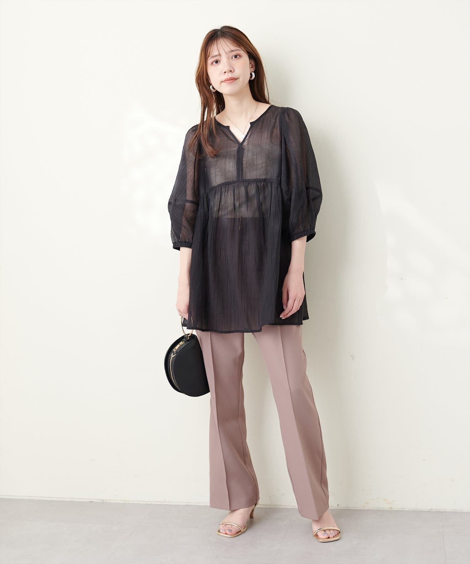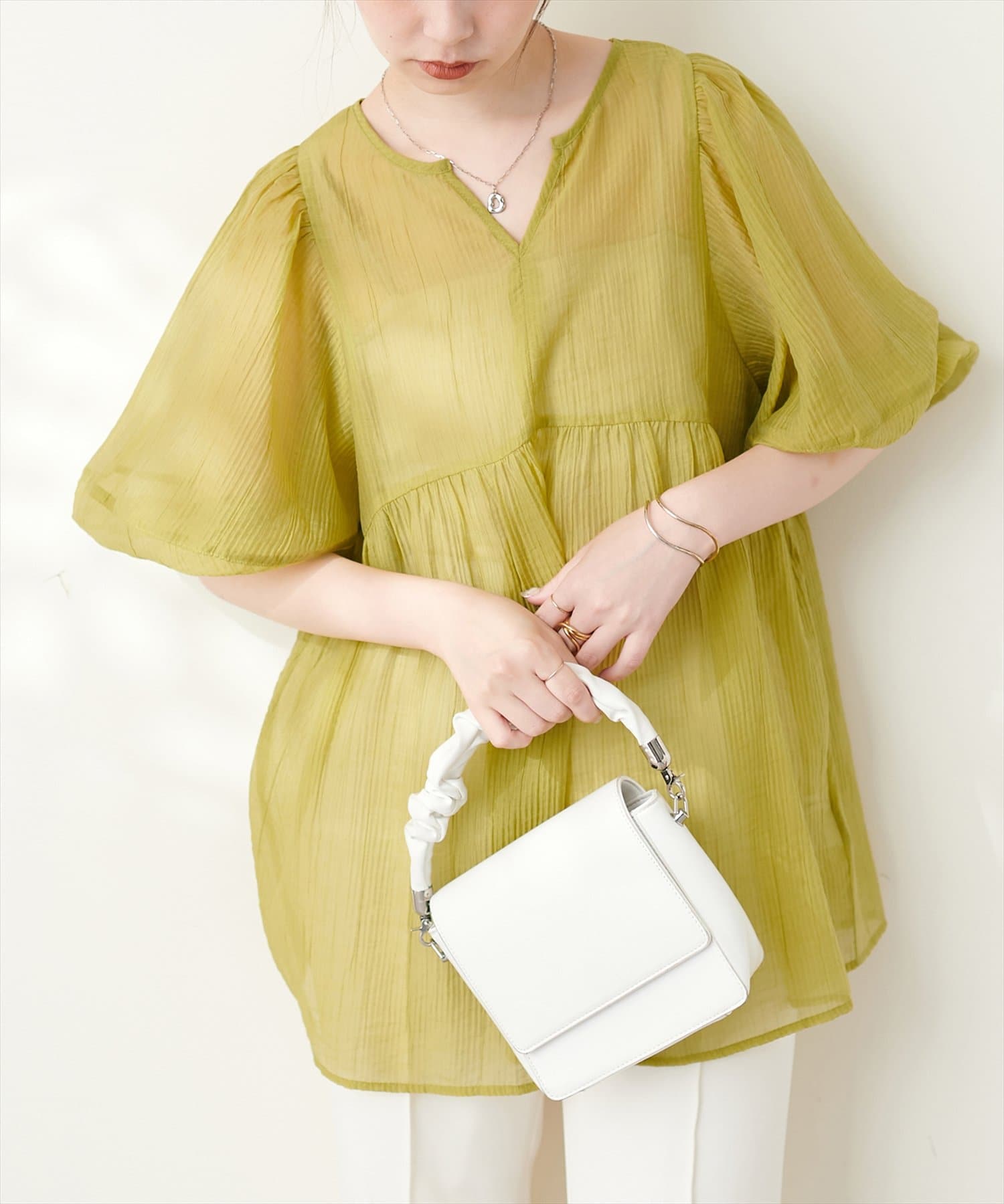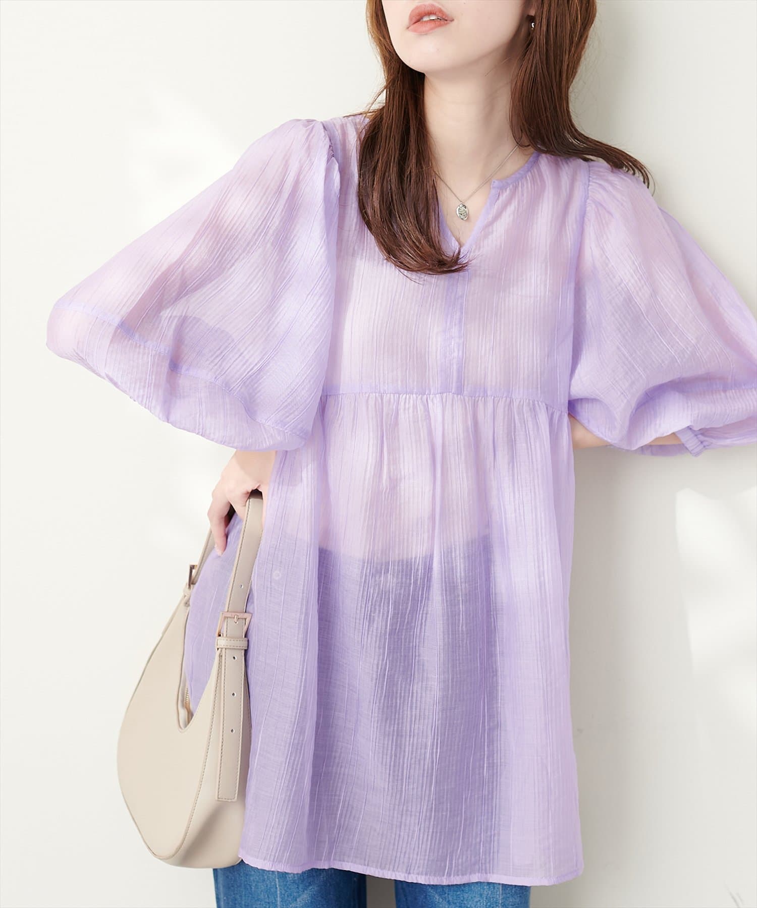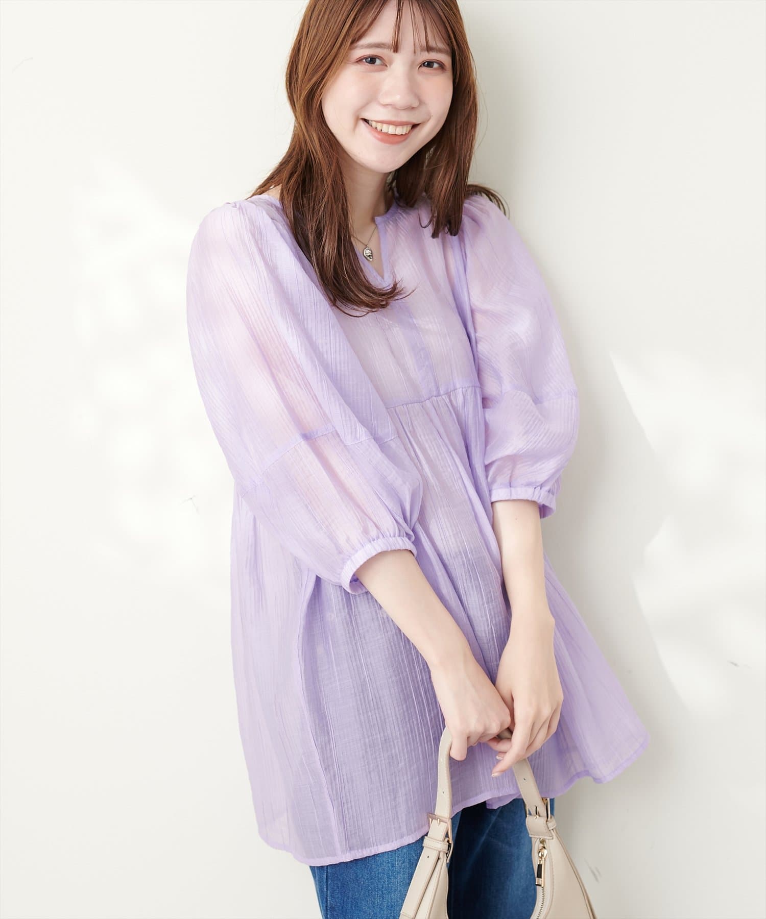 ほんわりとしたボリューム袖がトレンドライクで、女性らしさを意識したデザインに。