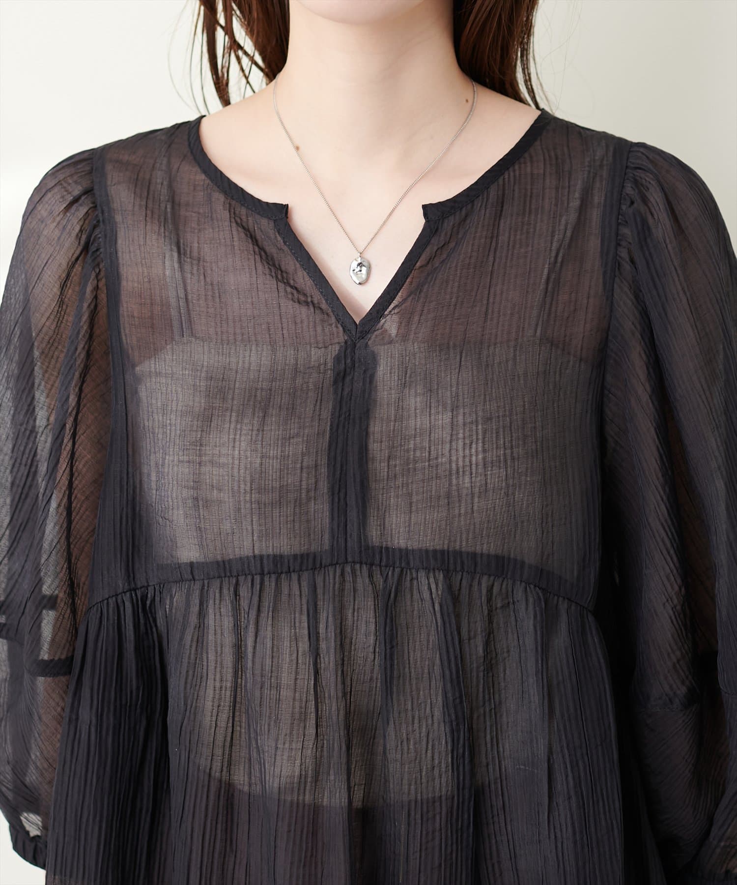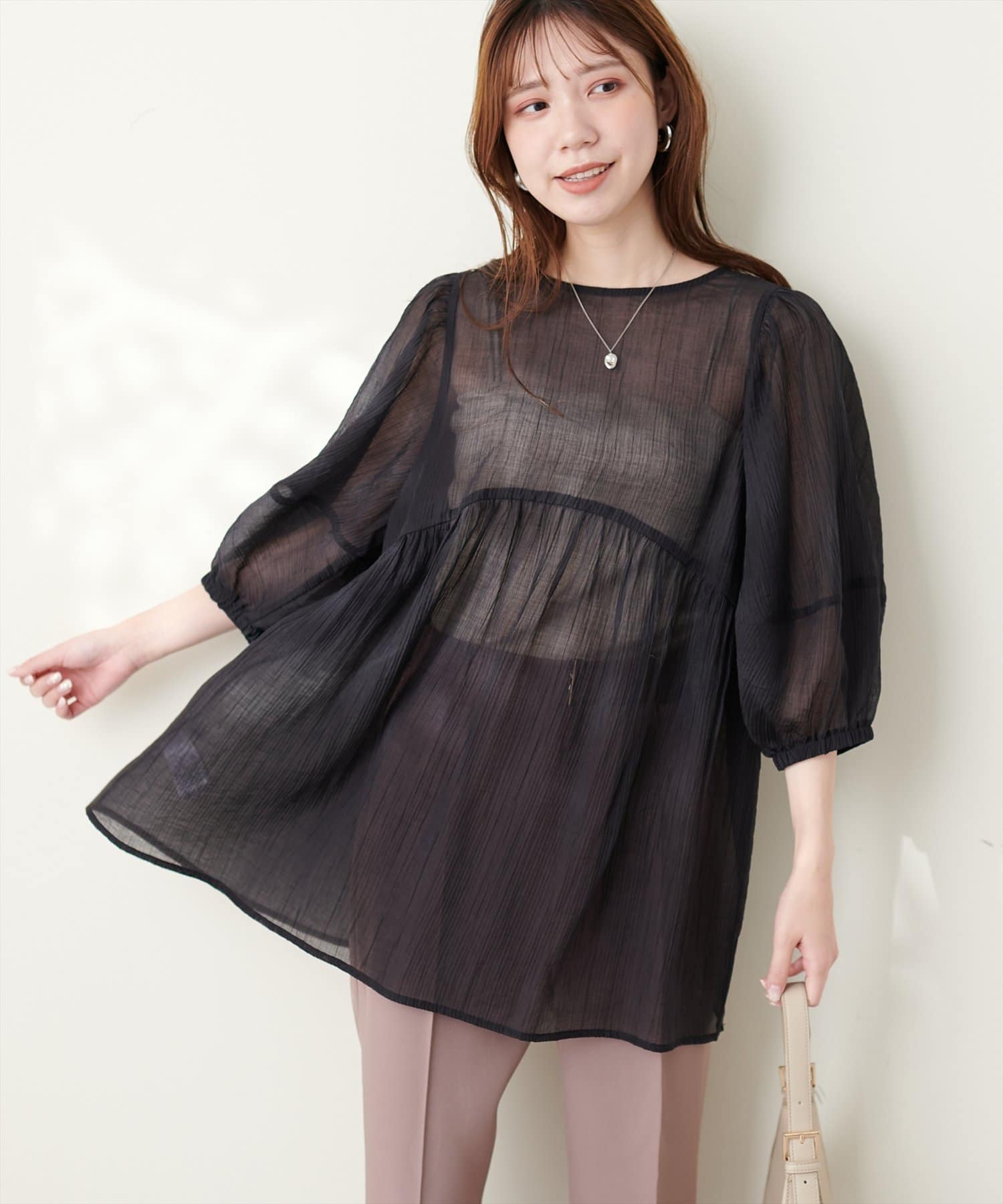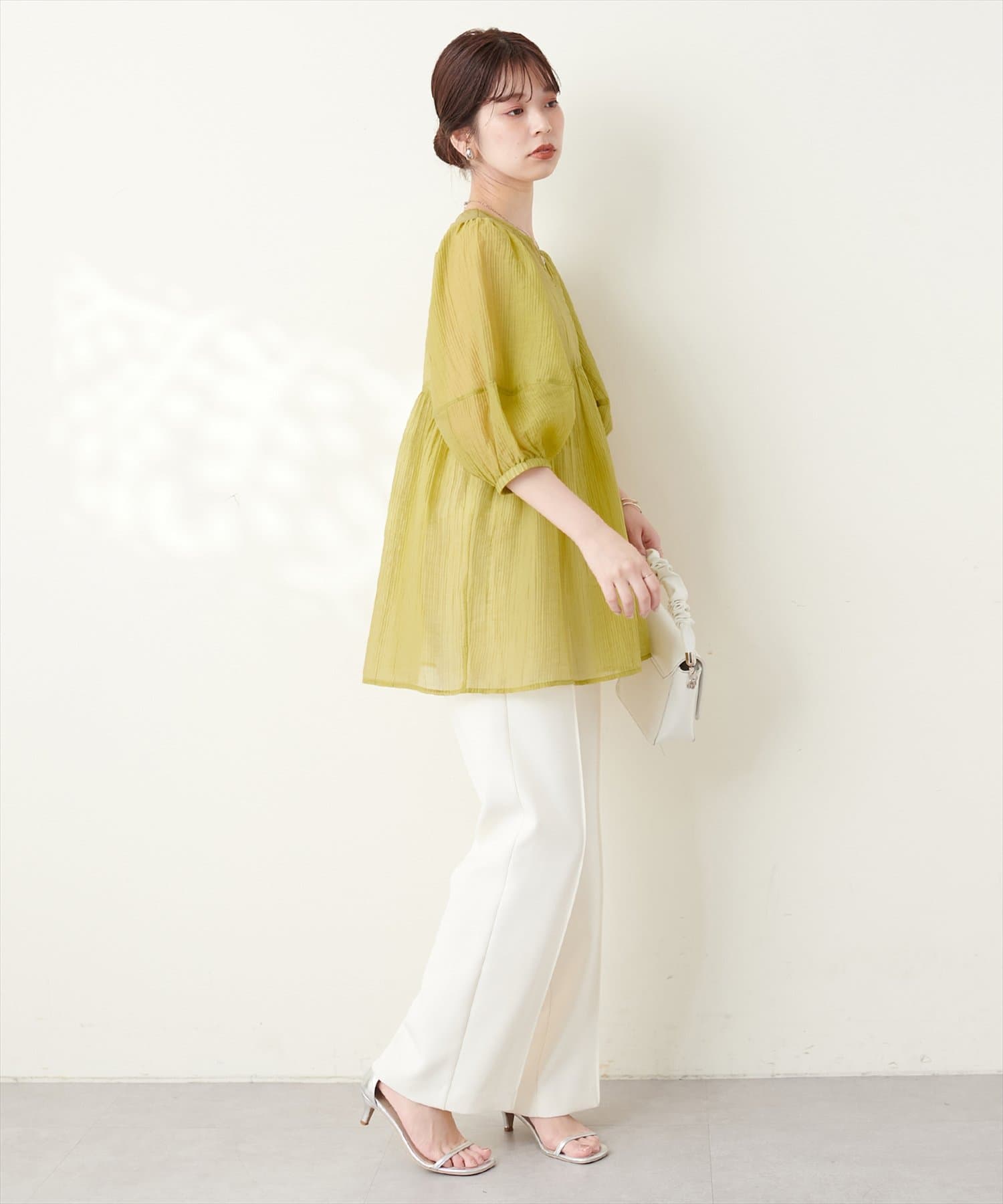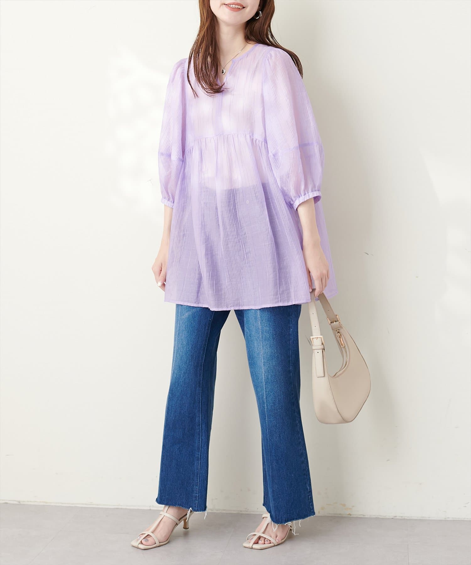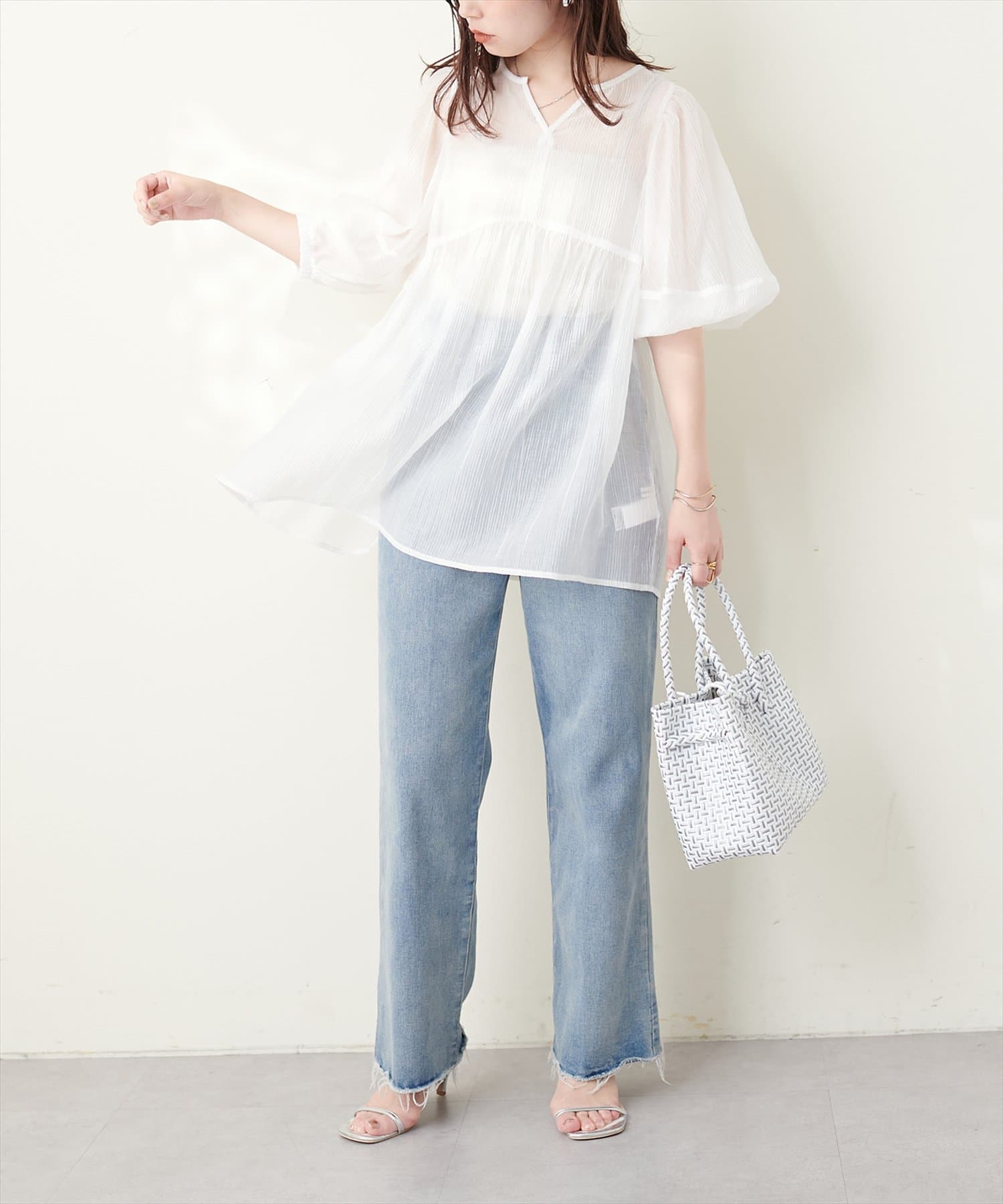 ほんわりとしたボリューム袖がトレンドライクで、女性らしさを意識したデザインに。