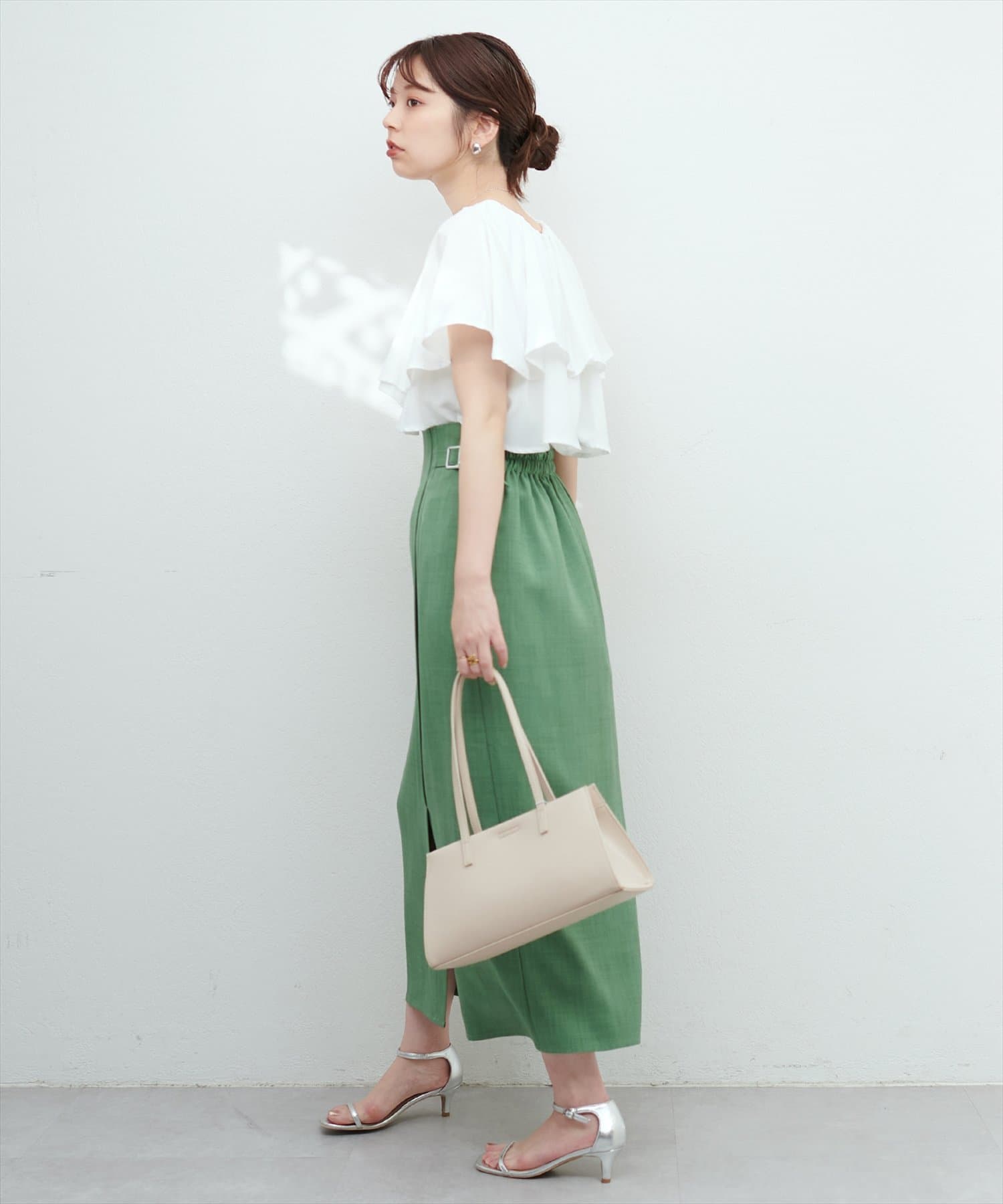ハイウエストボトムスやフレアライン、Iラインシルエットのスカートにウエストインして女性らしいスタイリングにして頂くのはもちろん、デニムやスラックスでカジュアルダウンした着こなしもおすすめ。