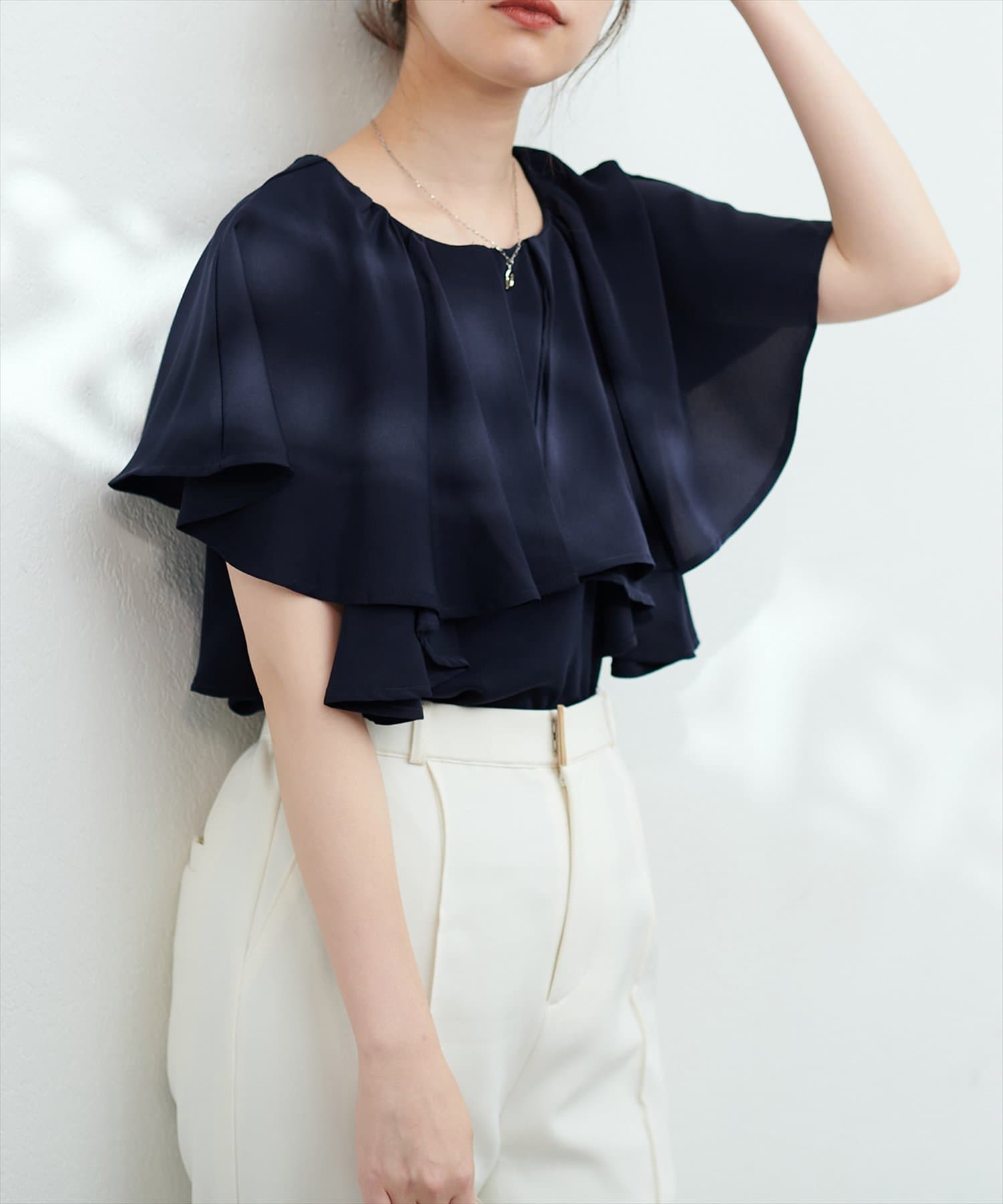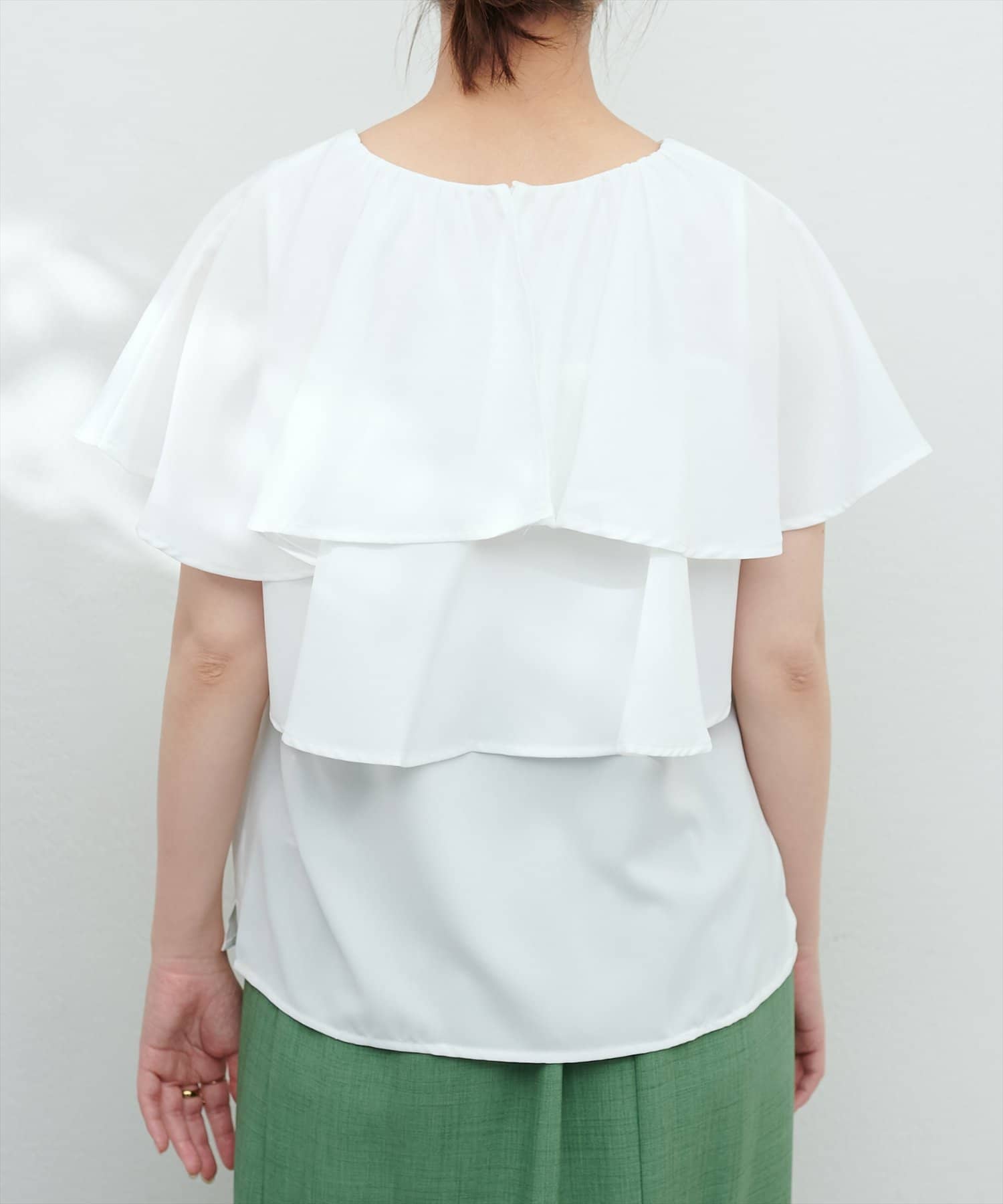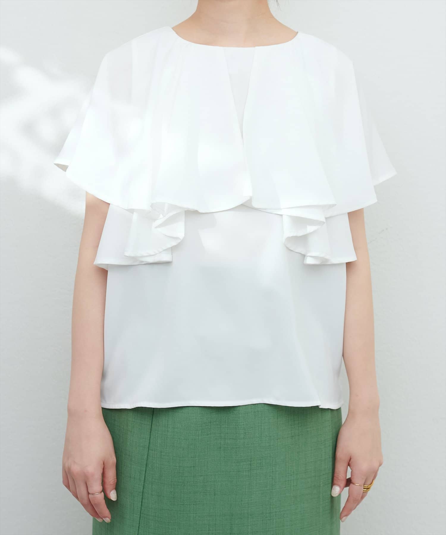 程よい甘さのラッフルフリルを贅沢に2枚仕立てにし、立体感のあるシルエットに仕上げた大人レディな1枚。