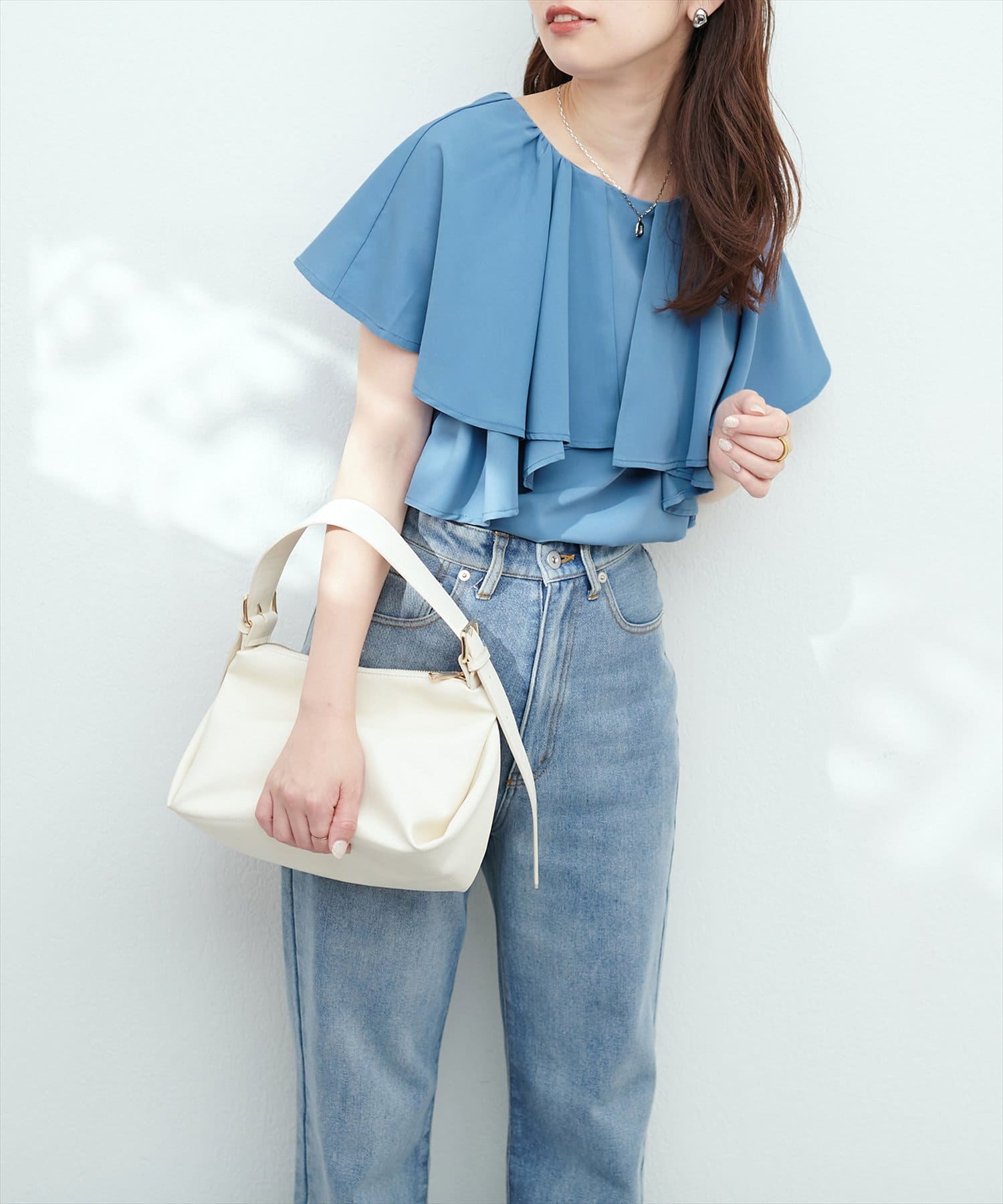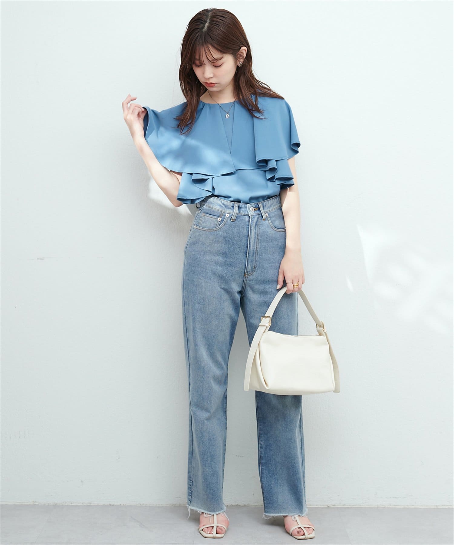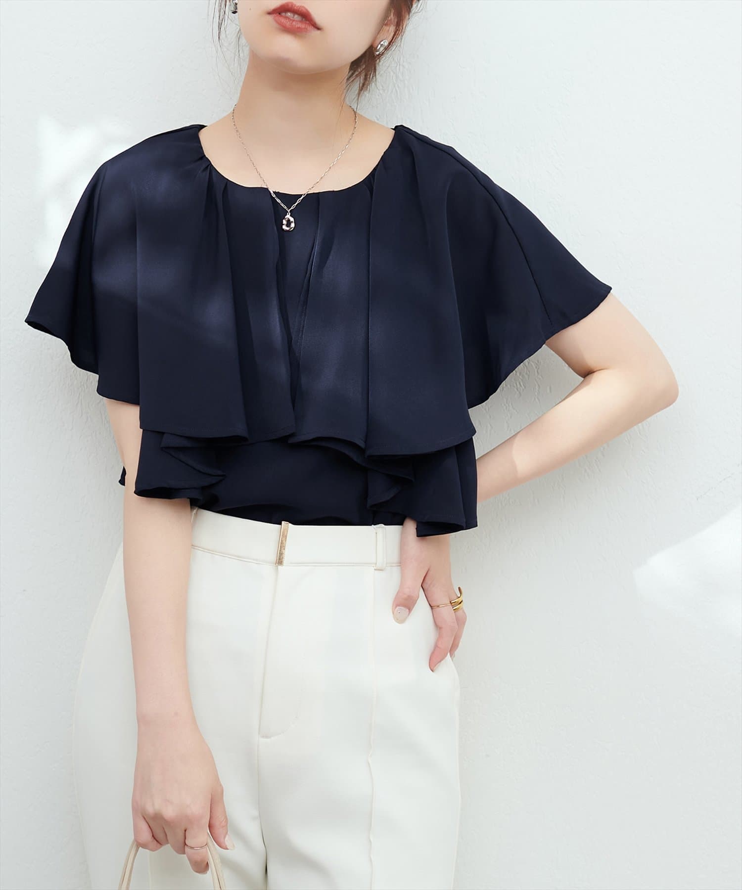 程よい甘さのラッフルフリルを贅沢に2枚仕立てにし、立体感のあるシルエットに仕上げた大人レディな1枚。