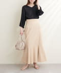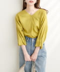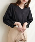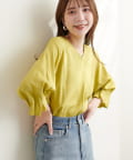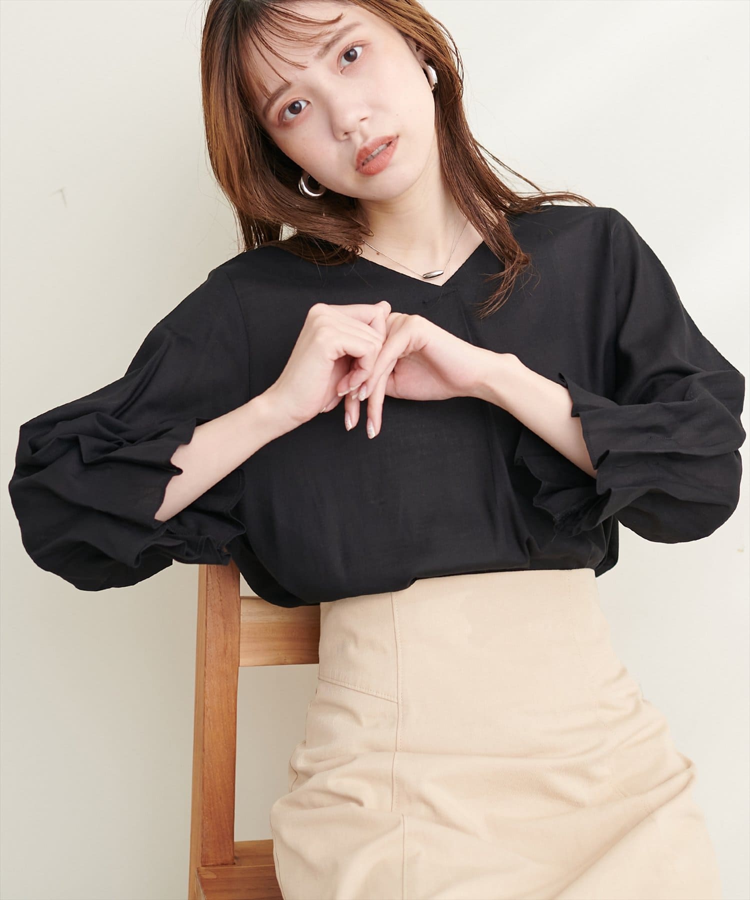 タックデザインの袖にはゴムが使用されており、ふんわりとしたシルエットが簡単に作れてフェミニンな雰囲気を演出します。