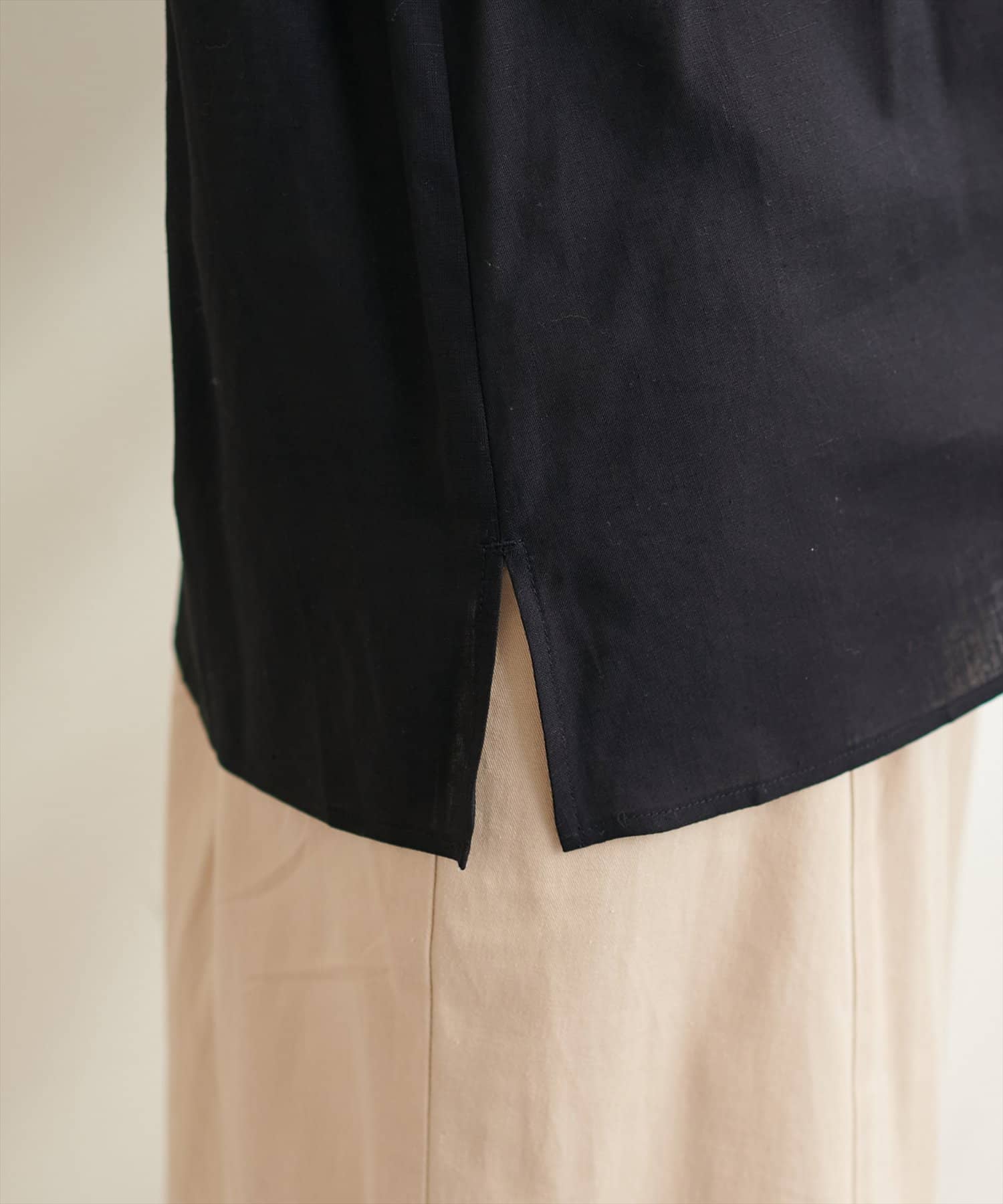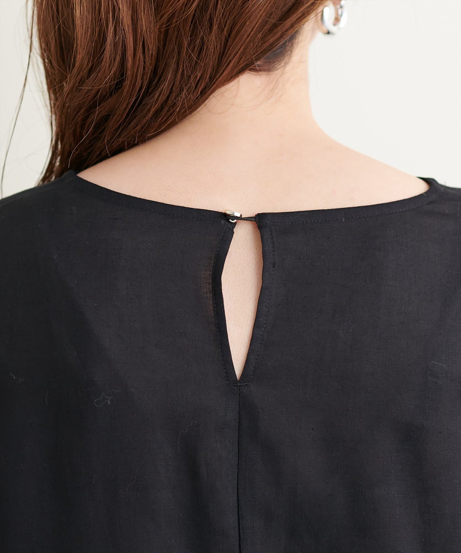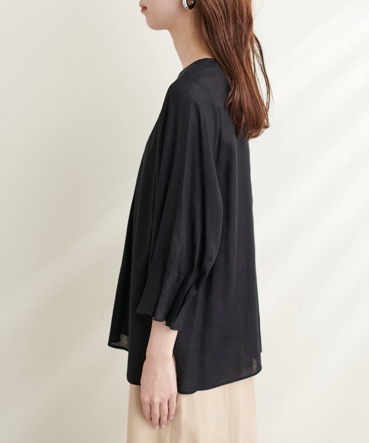 吸水性や速乾性に優れた夏にぴったりの麻素材に、レーヨンをブレンドすることでとろみと落ち感が生まれ、上品な印象にきまるブラウス。