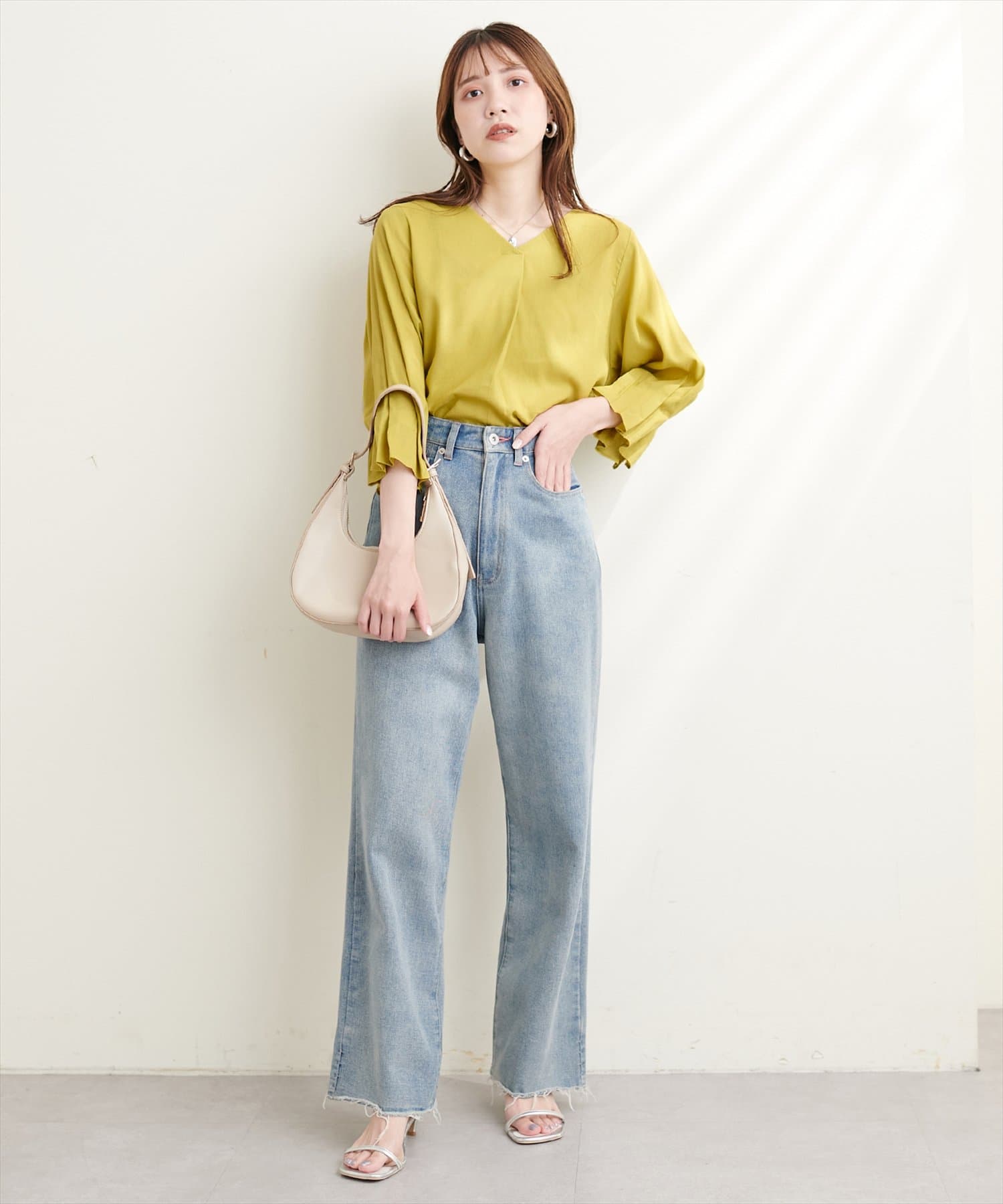 デニムやサロペットとも相性がよく、親しみやすさもありつつ女性らしい上品な印象に。