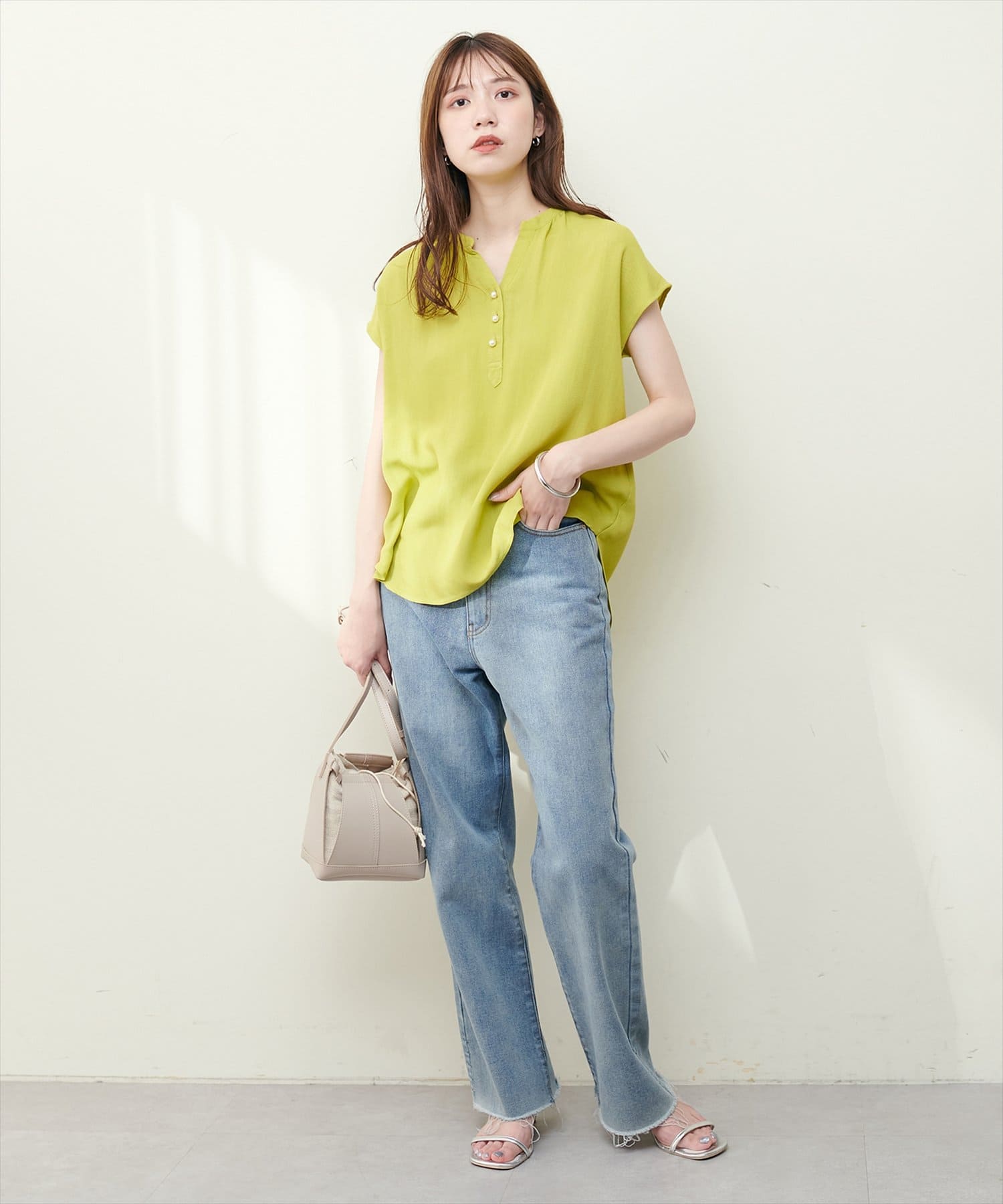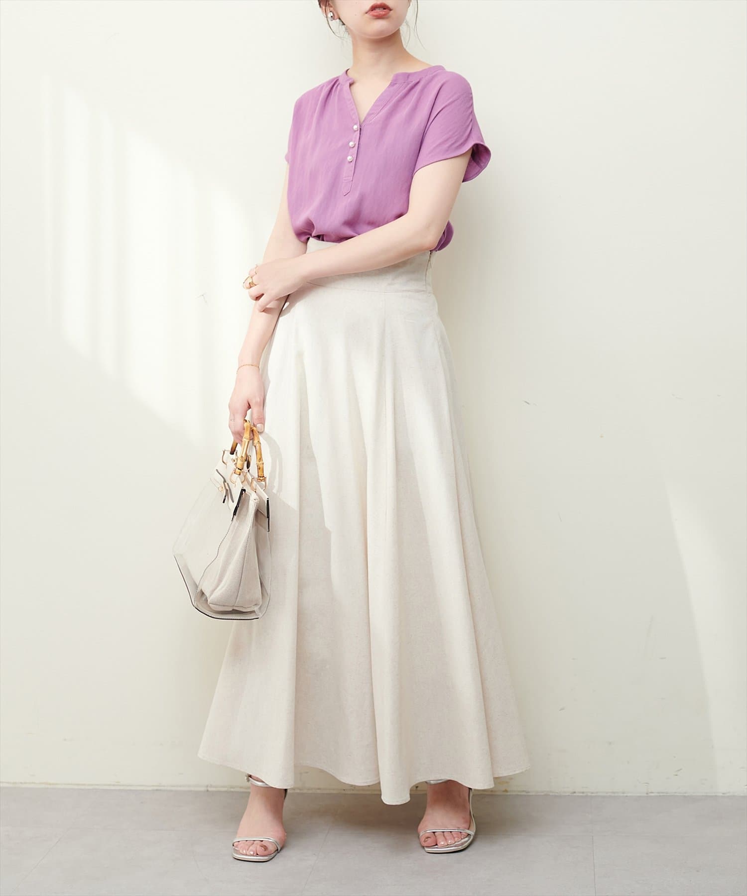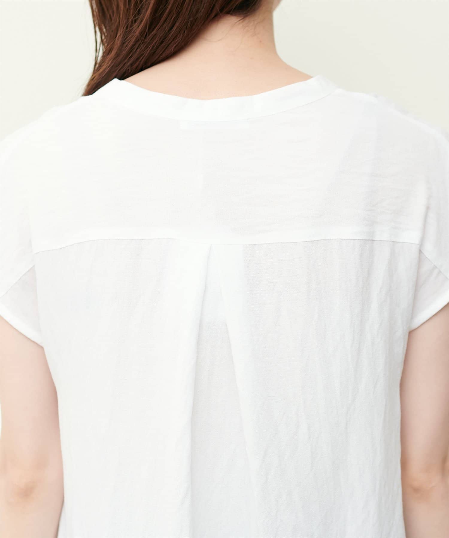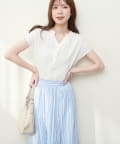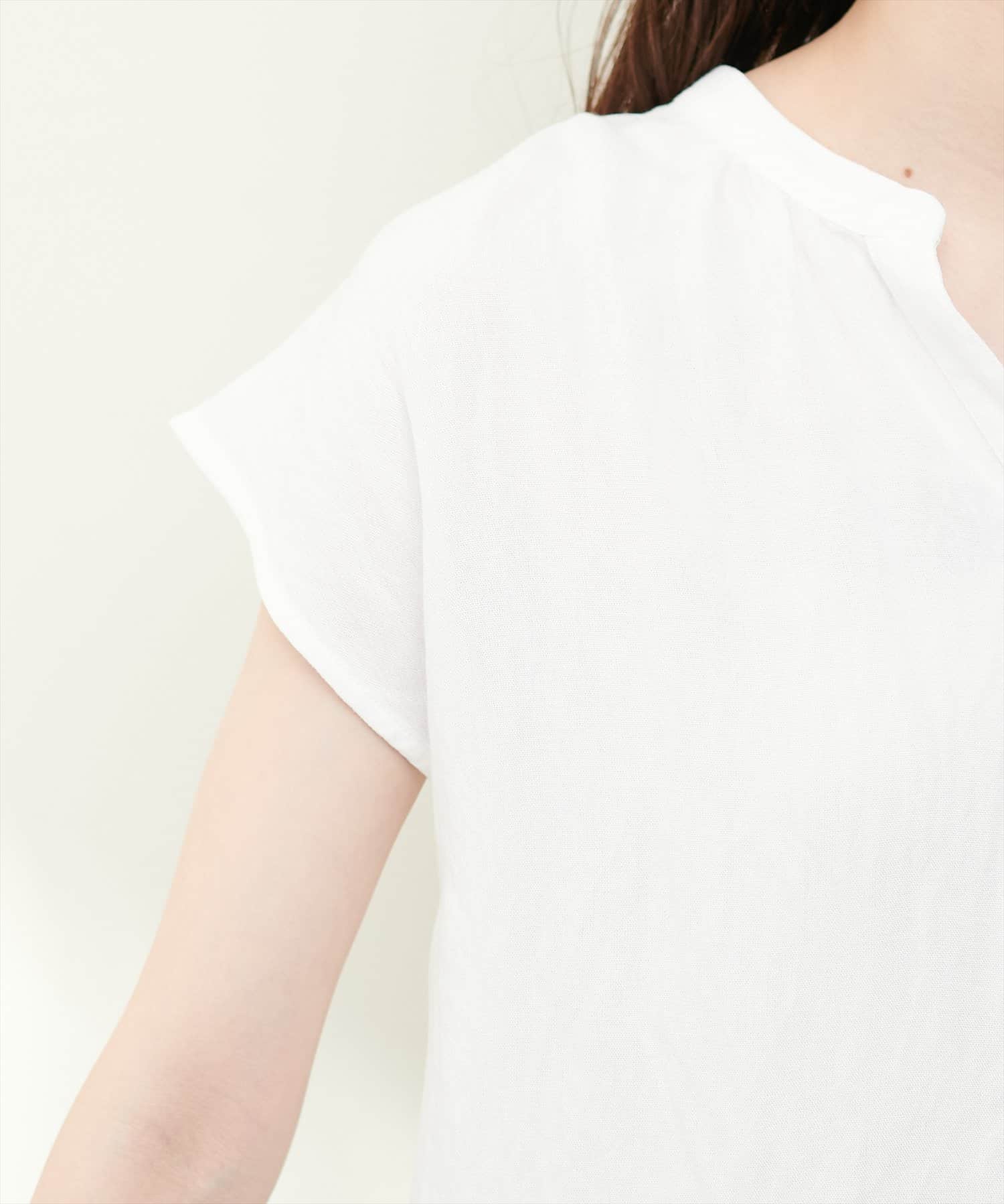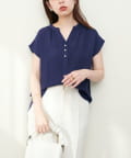ややフレンチスリーブに仕上げたデザインと、涼やかな素材が季節感のあるスタイリングを叶えてくれます。
