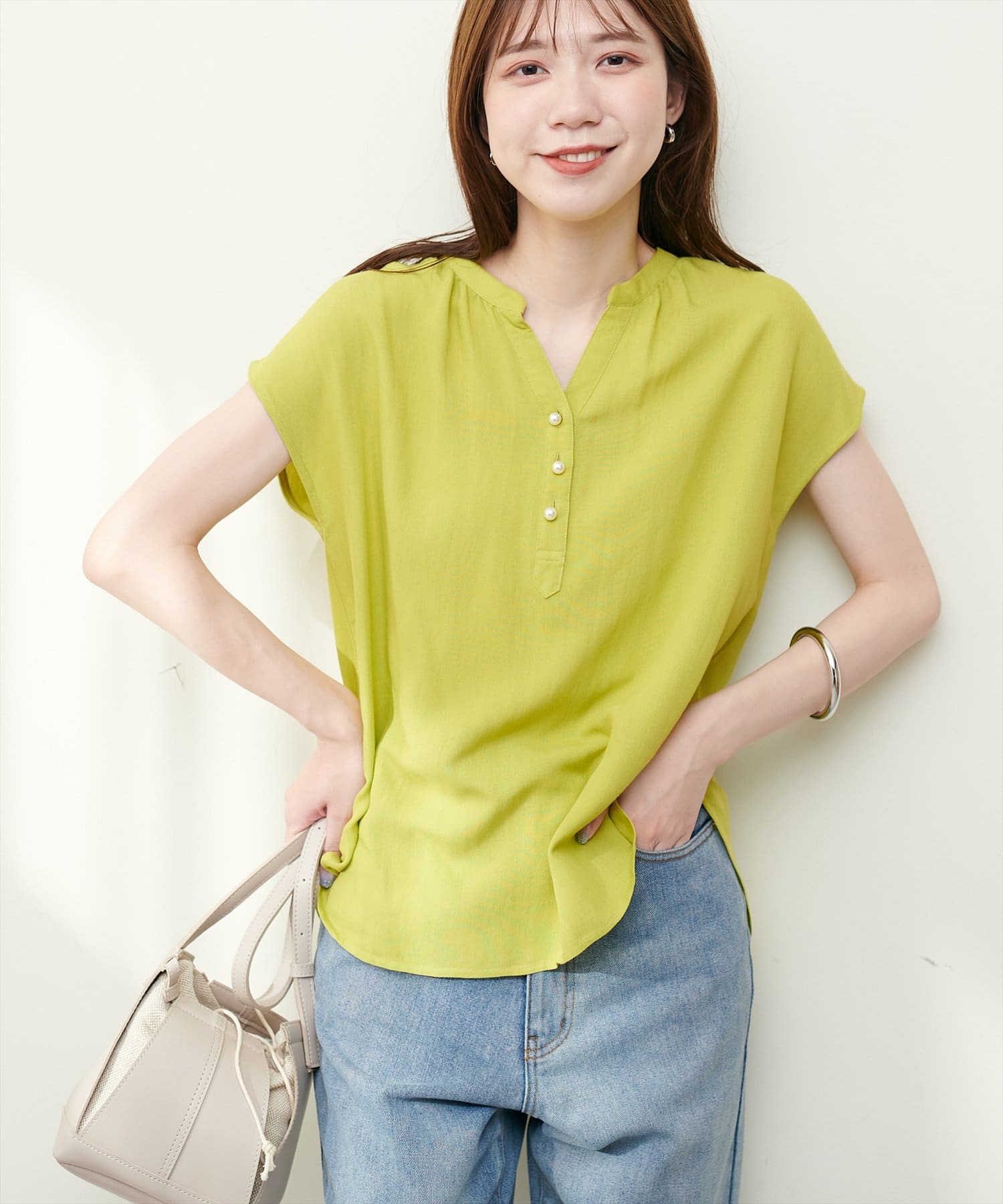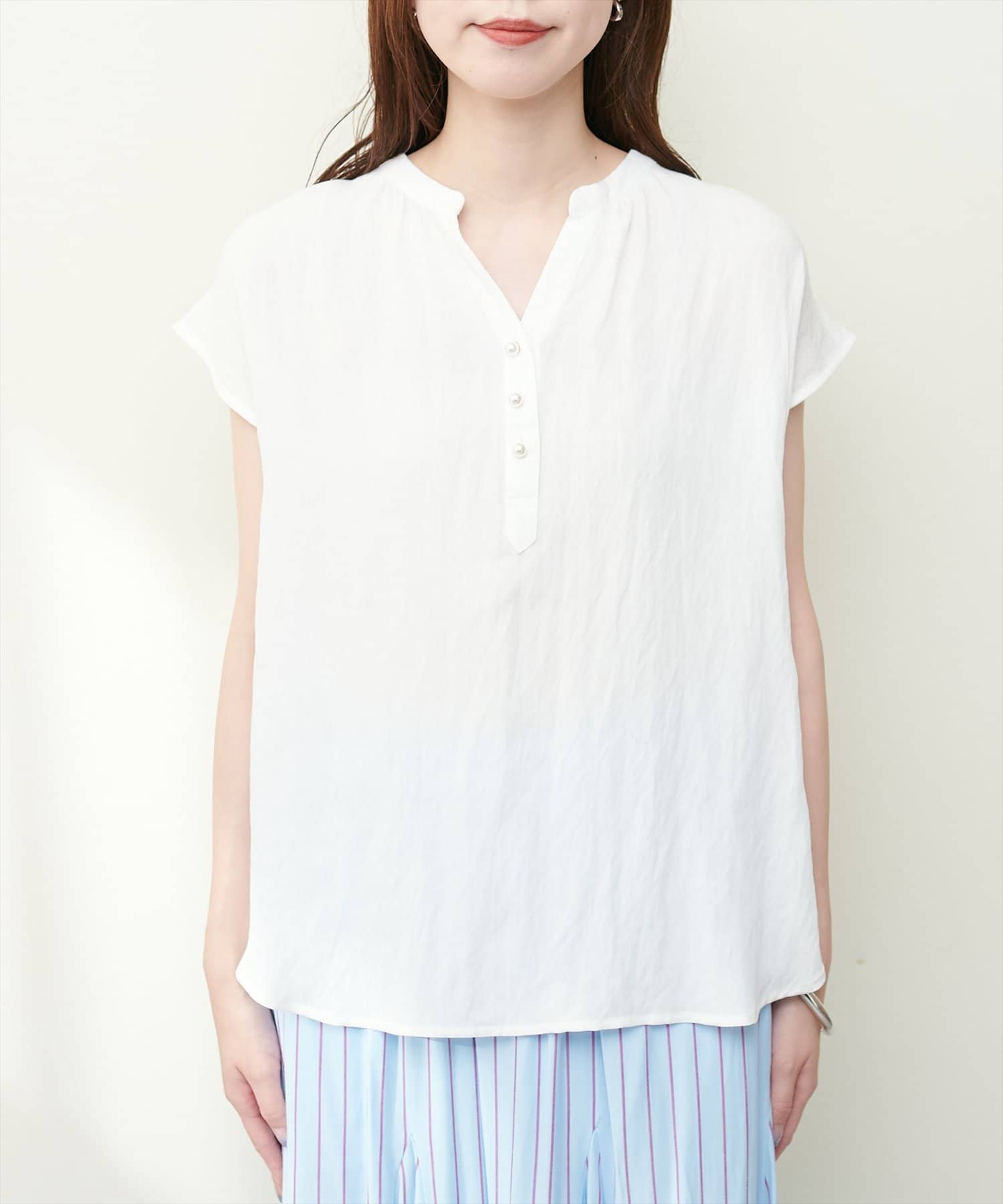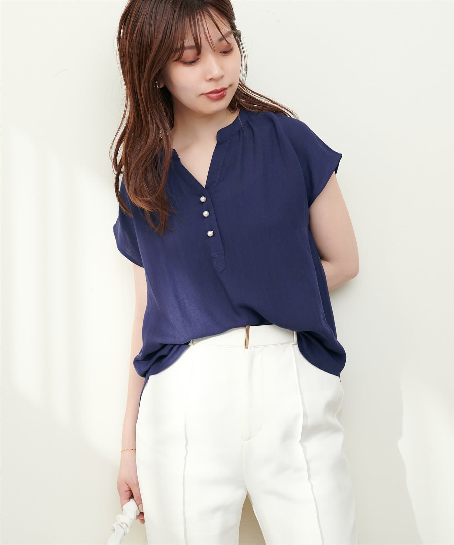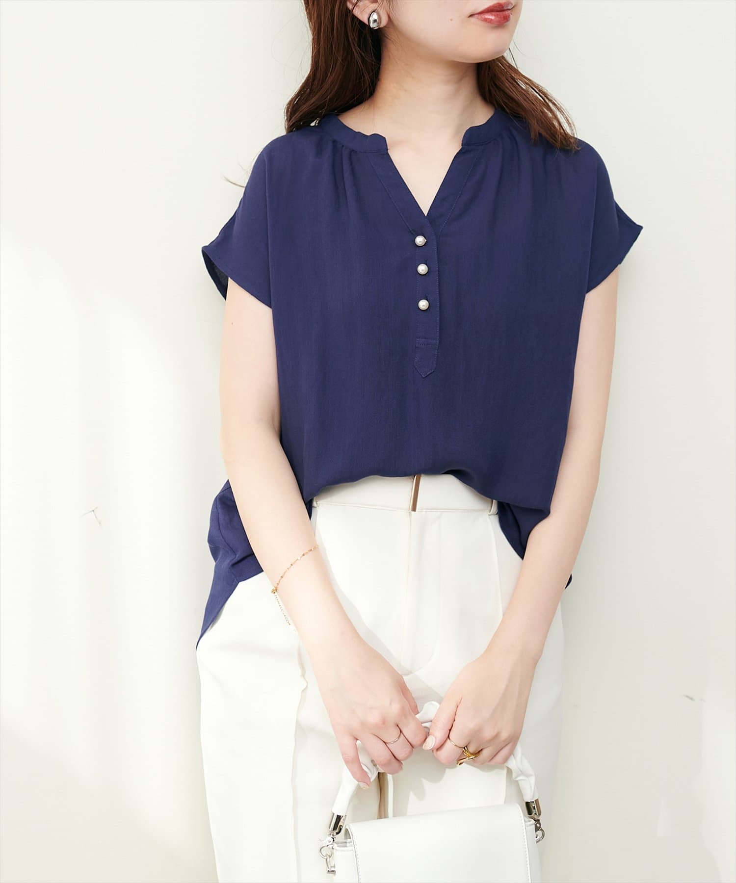 • natural couture(ナチュラルクチュール) パール釦涼しげスキッパーブラウス