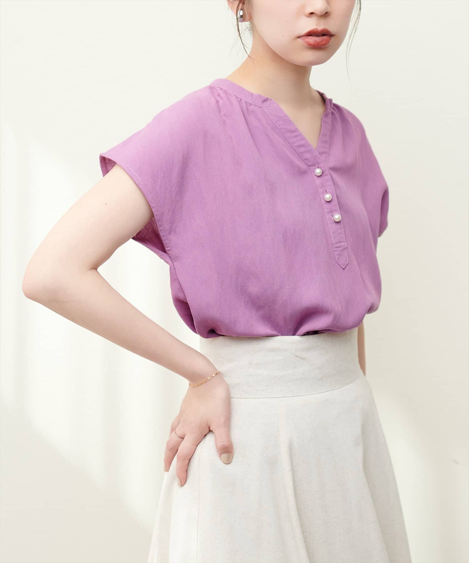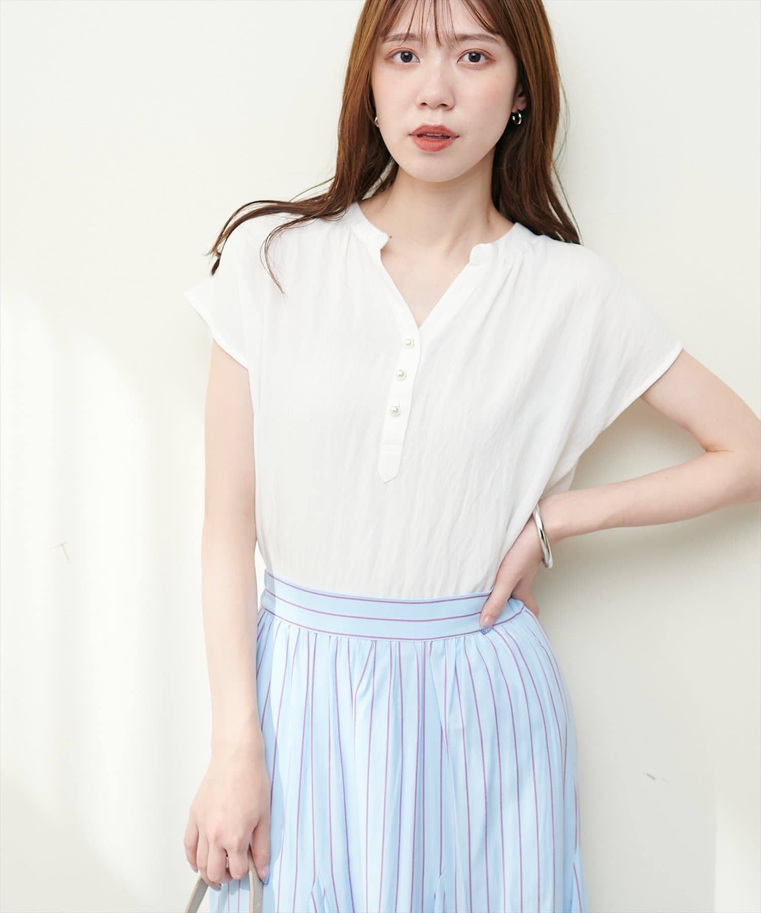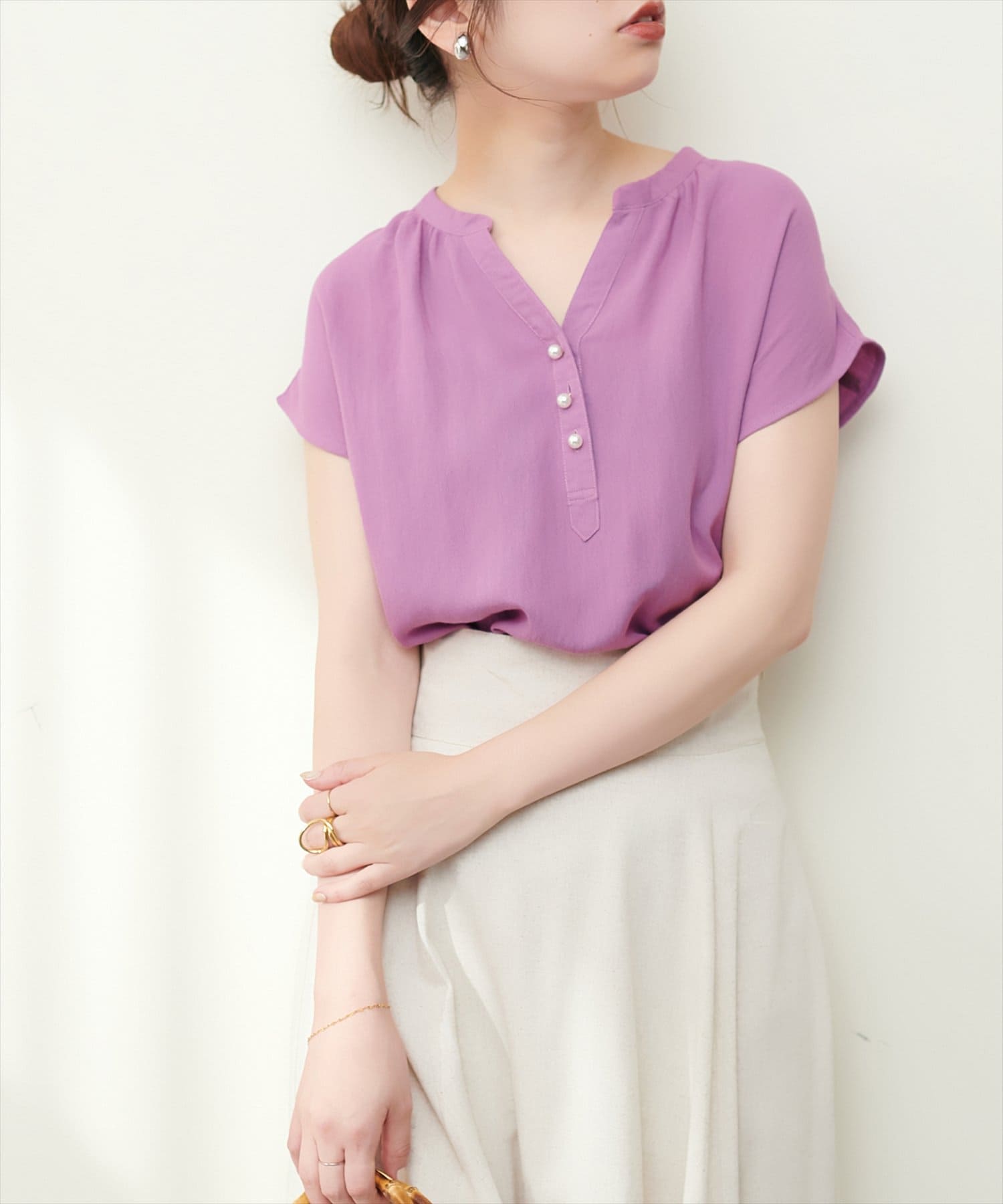 • natural couture(ナチュラルクチュール) パール釦涼しげスキッパーブラウス