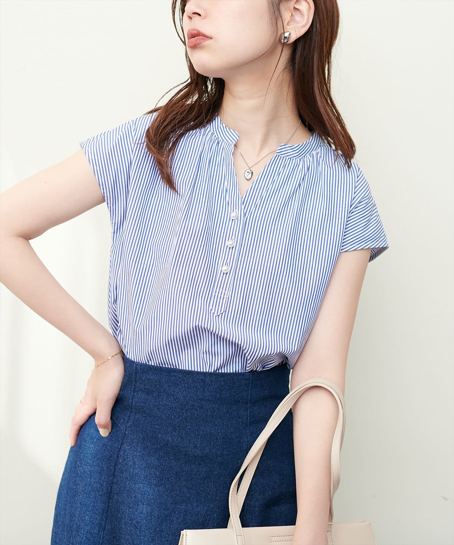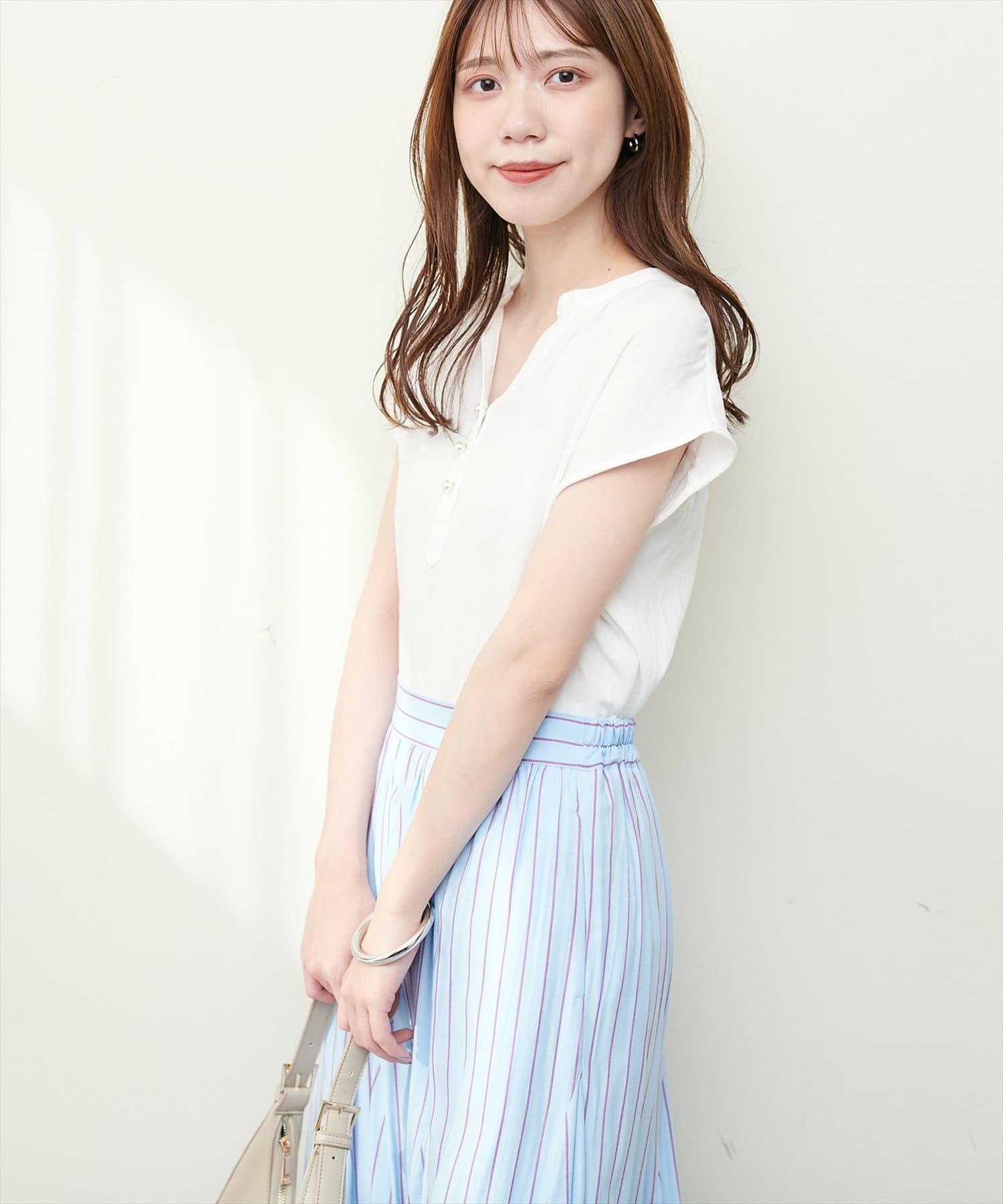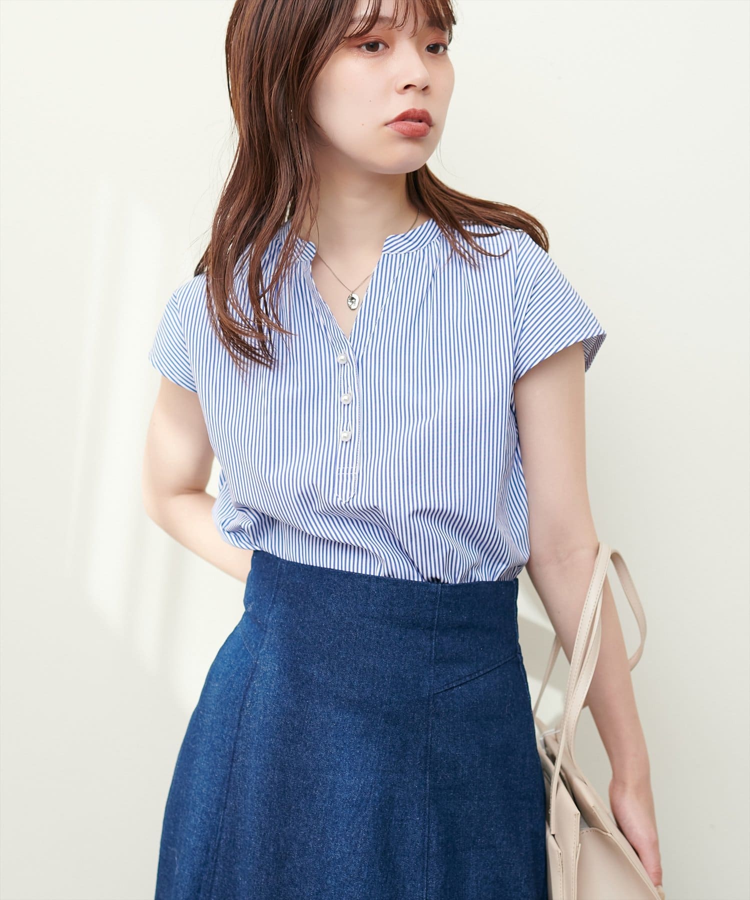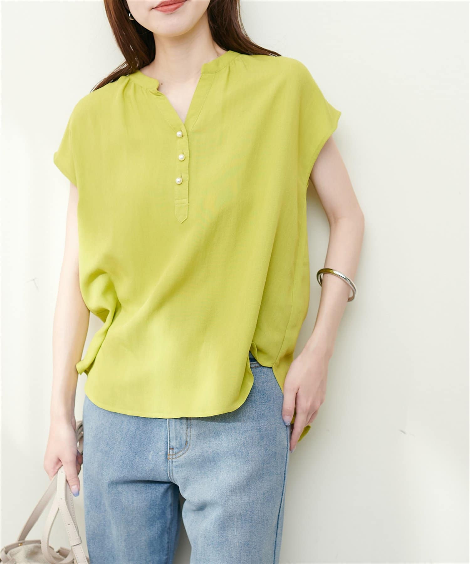 • natural couture(ナチュラルクチュール) パール釦涼しげスキッパーブラウス