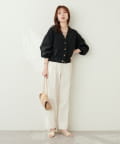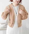羽織りとしてはもちろん、1枚着のトップスとして後ろに抜いて着るのもオススメ!