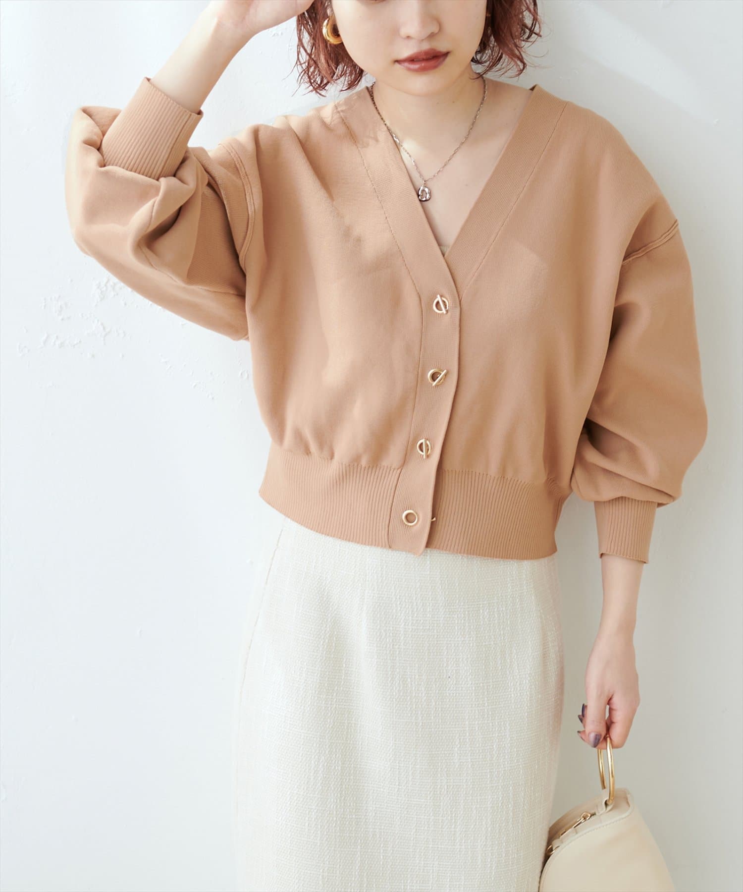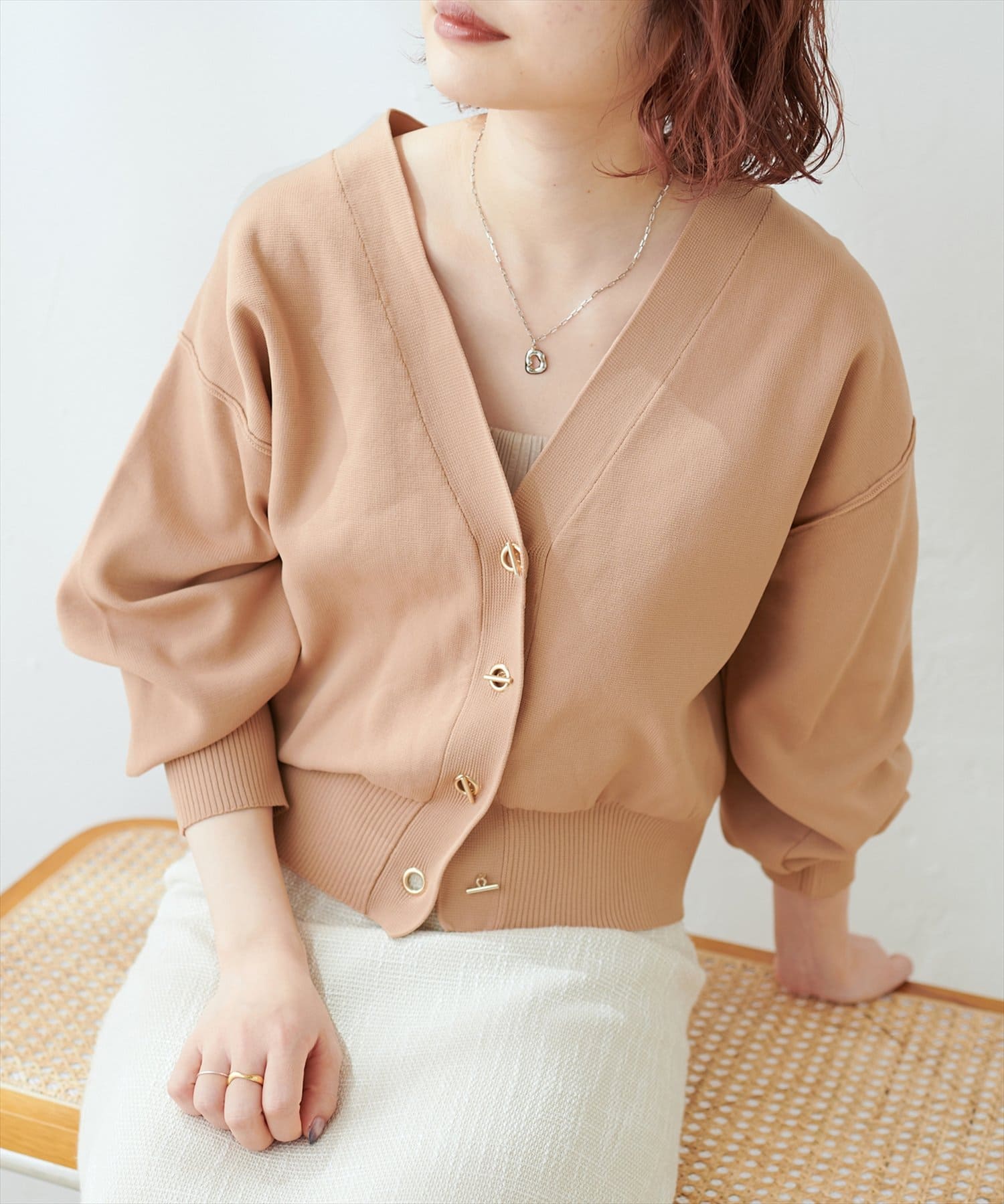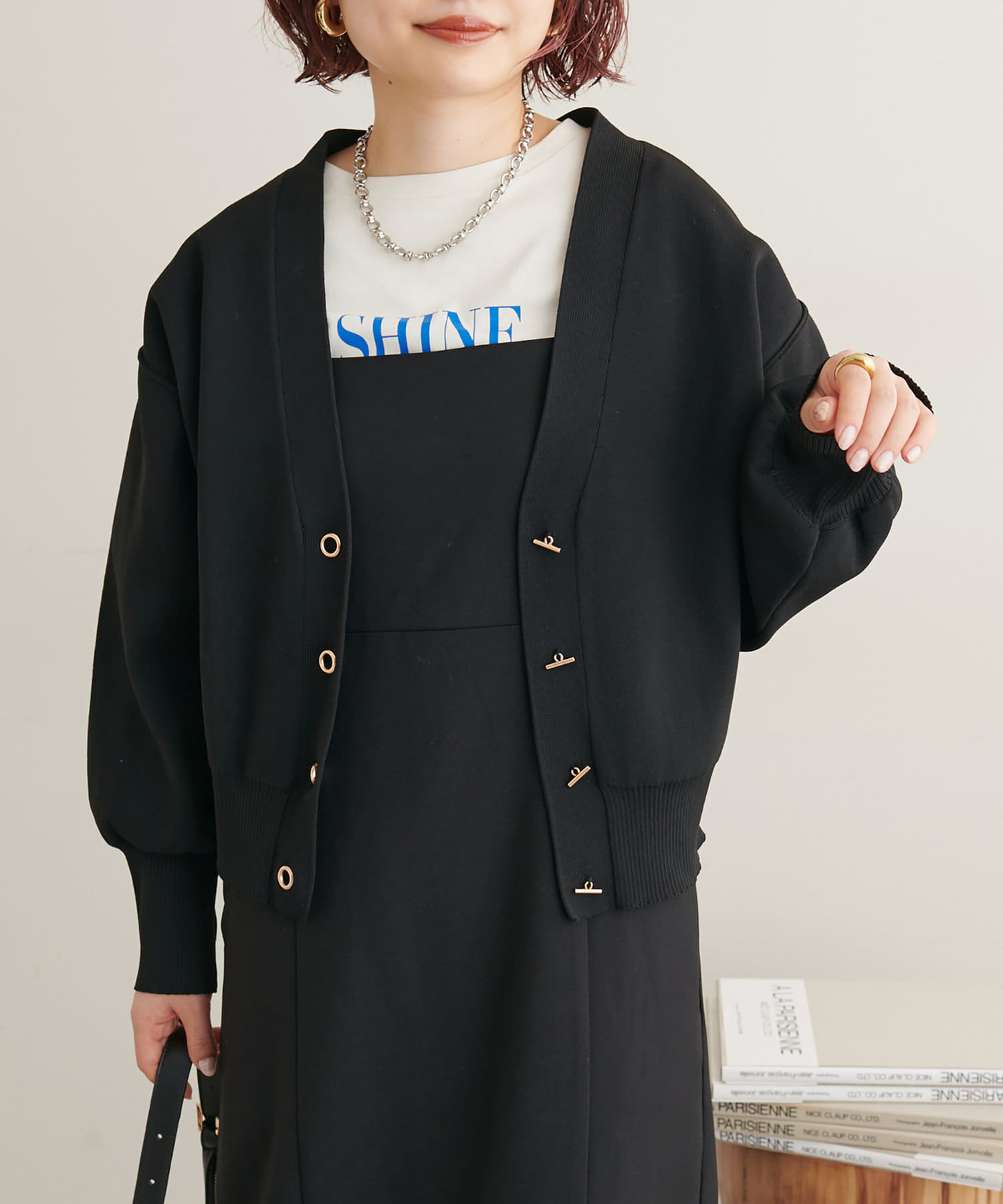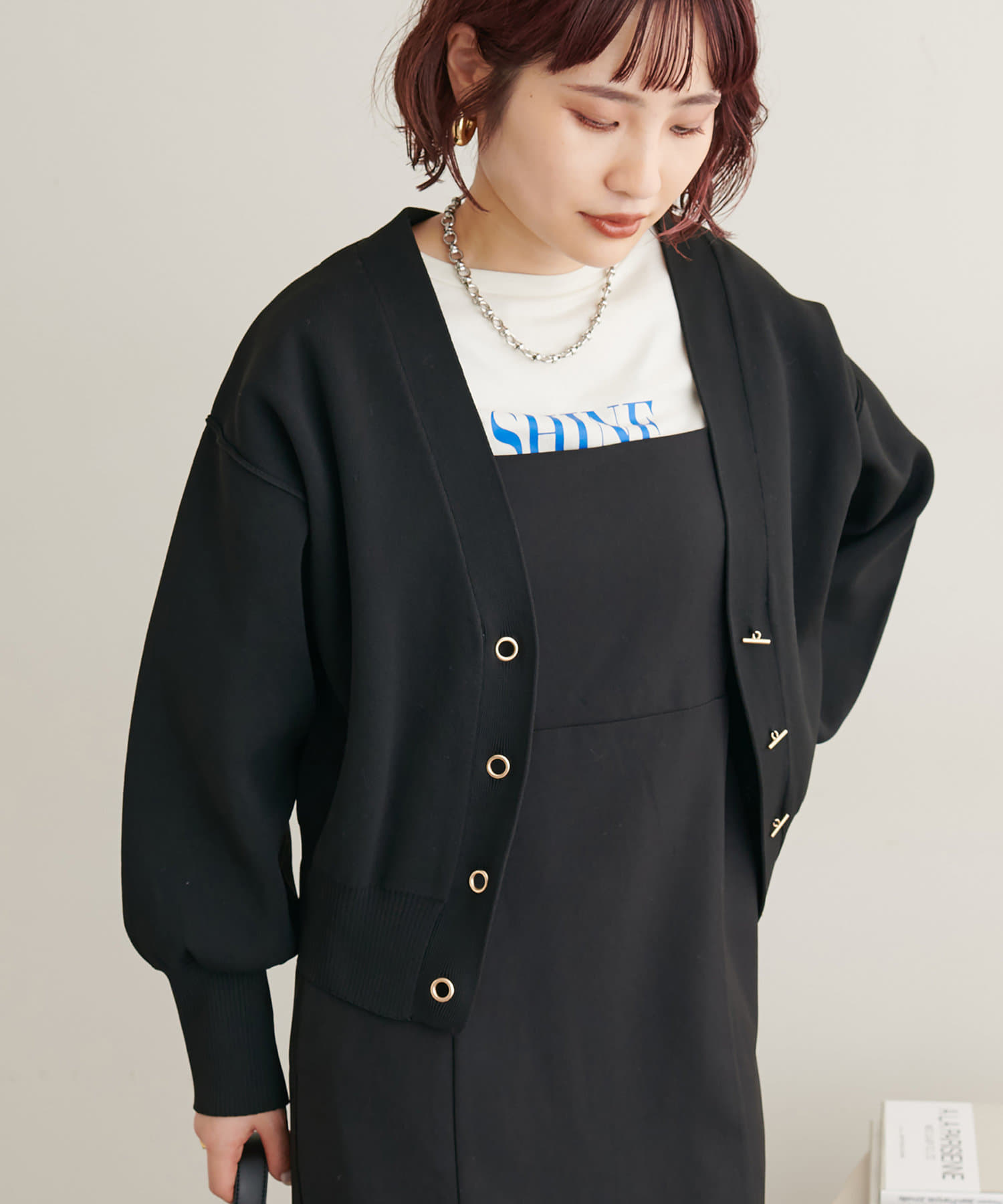 0322050151 プチプラハトメバー釦おしゃれカーディガン