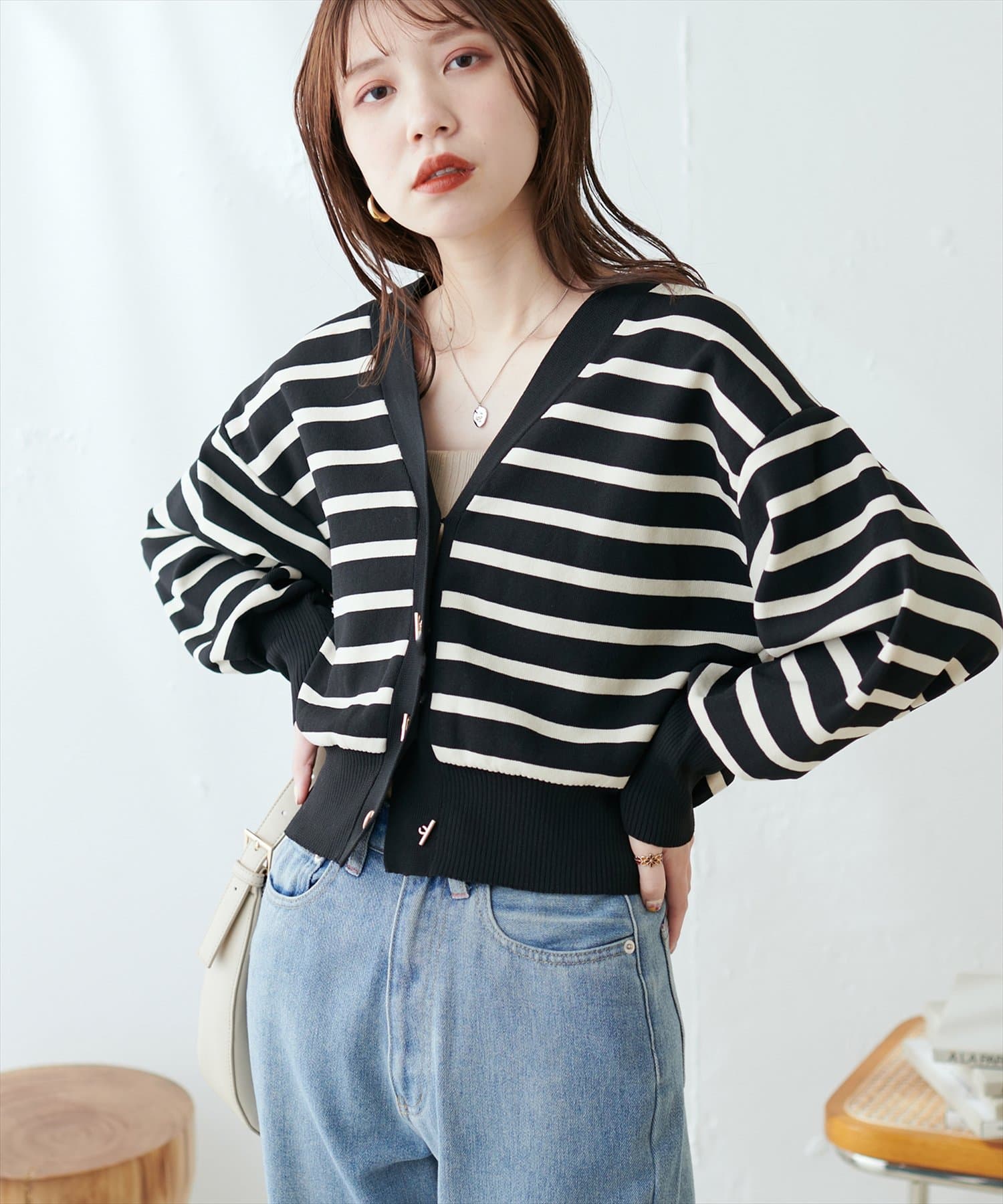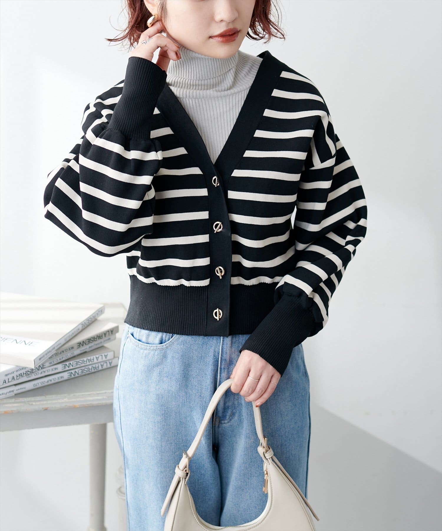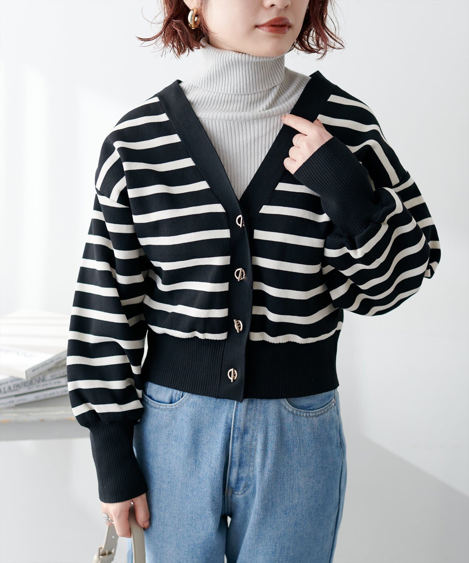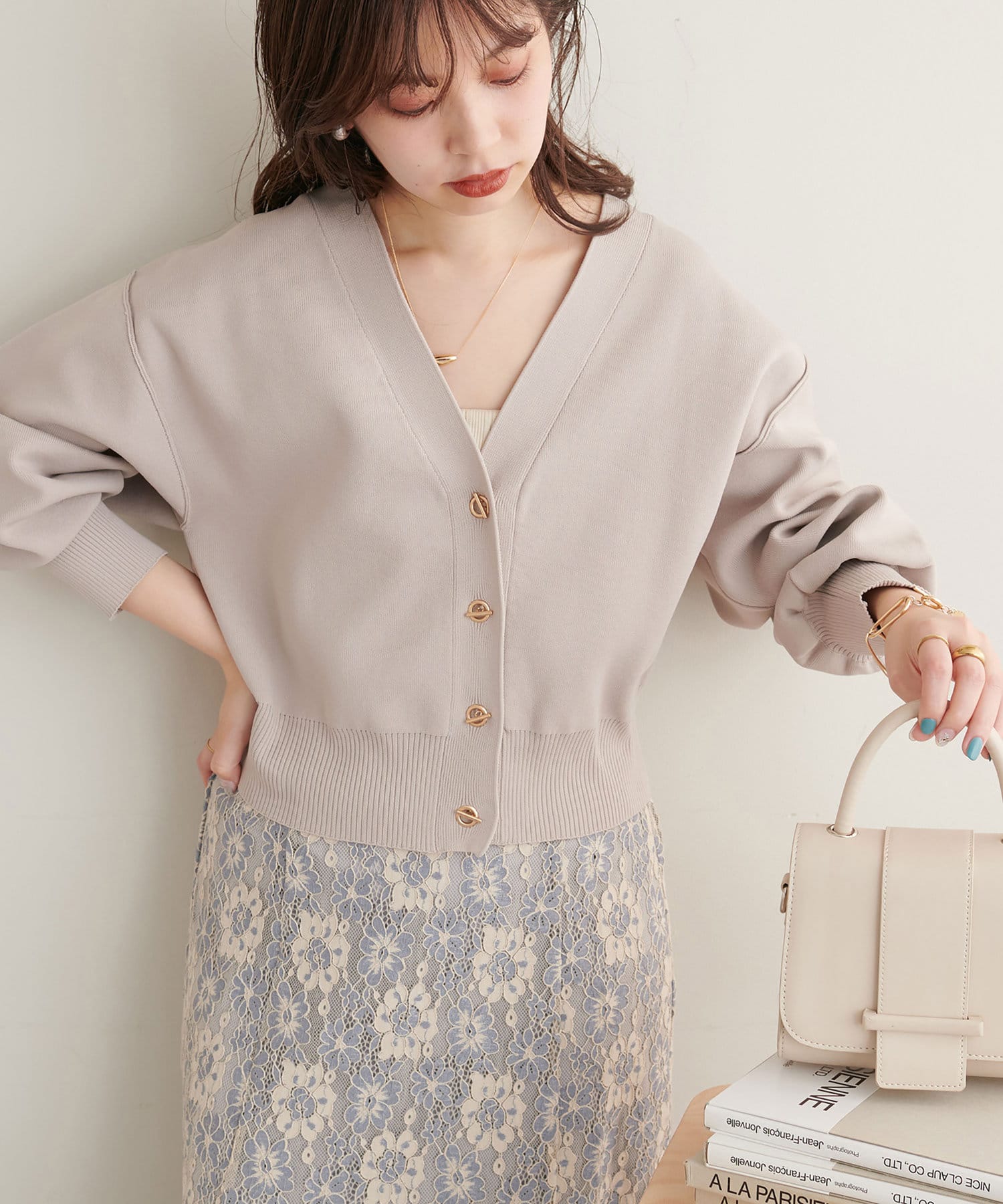 0322050151 プチプラハトメバー釦おしゃれカーディガン