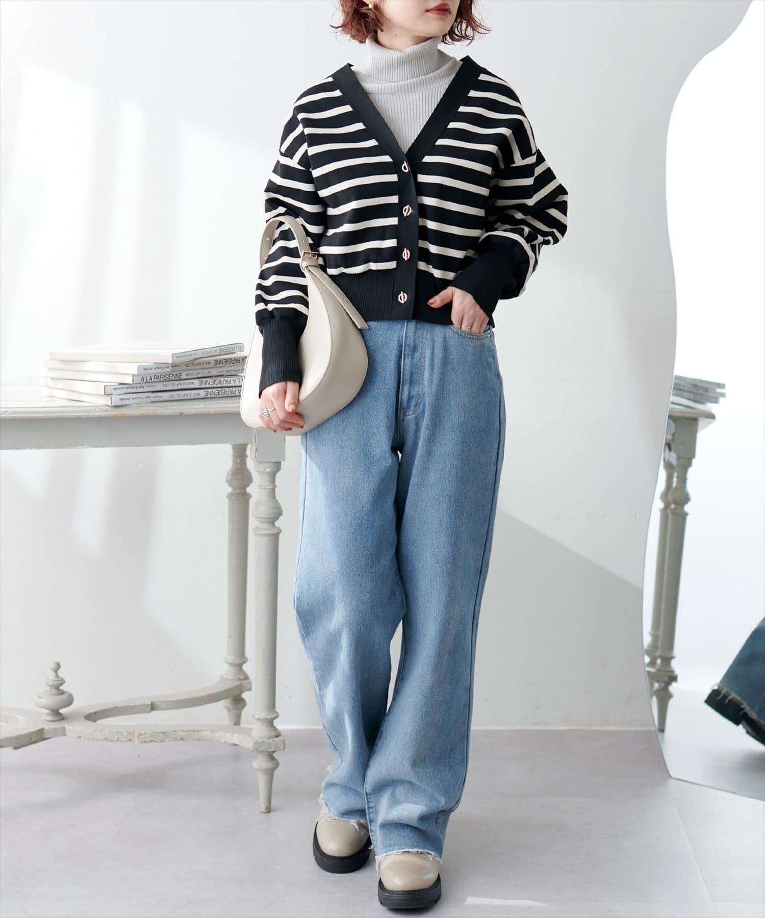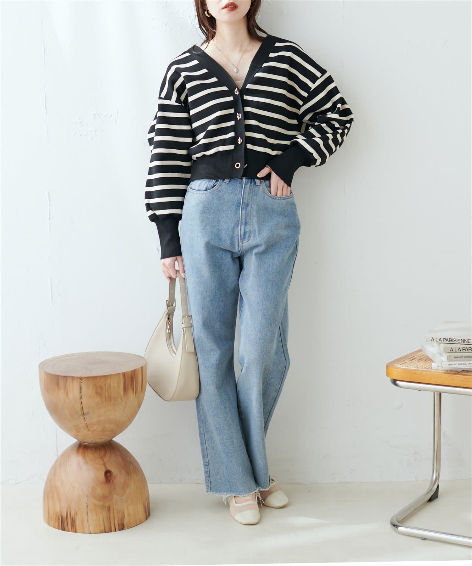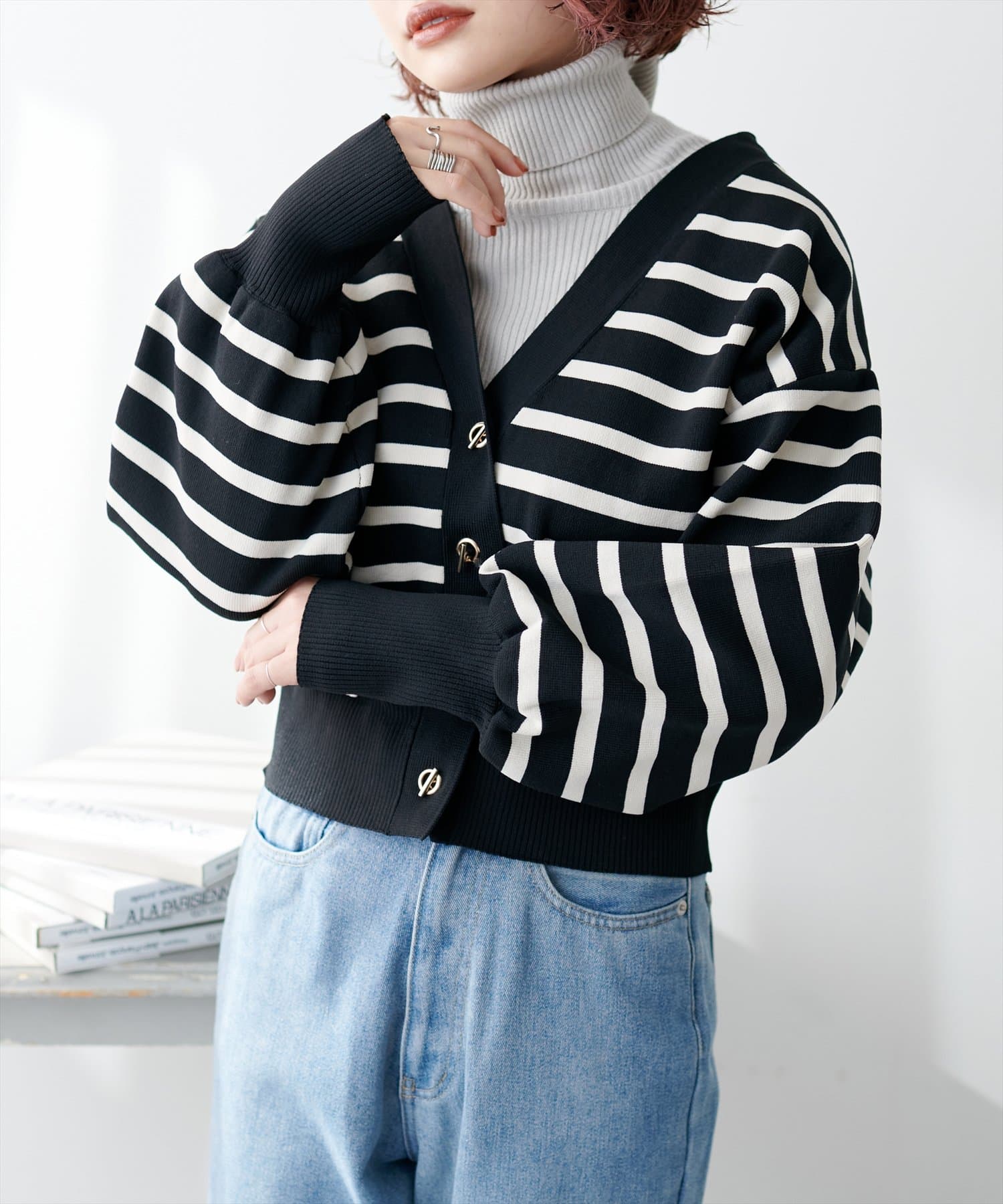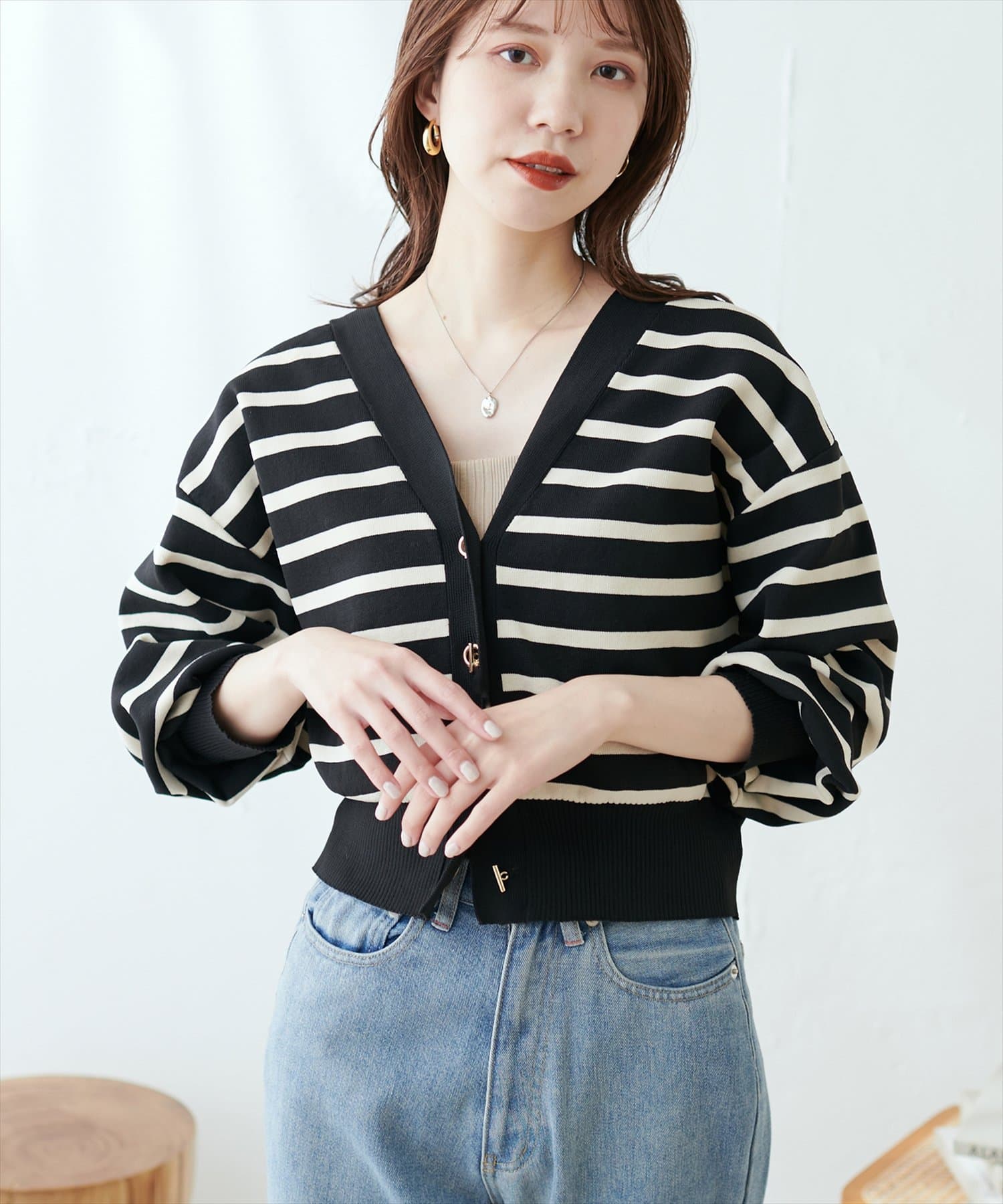 0322050151 プチプラハトメバー釦おしゃれカーディガン