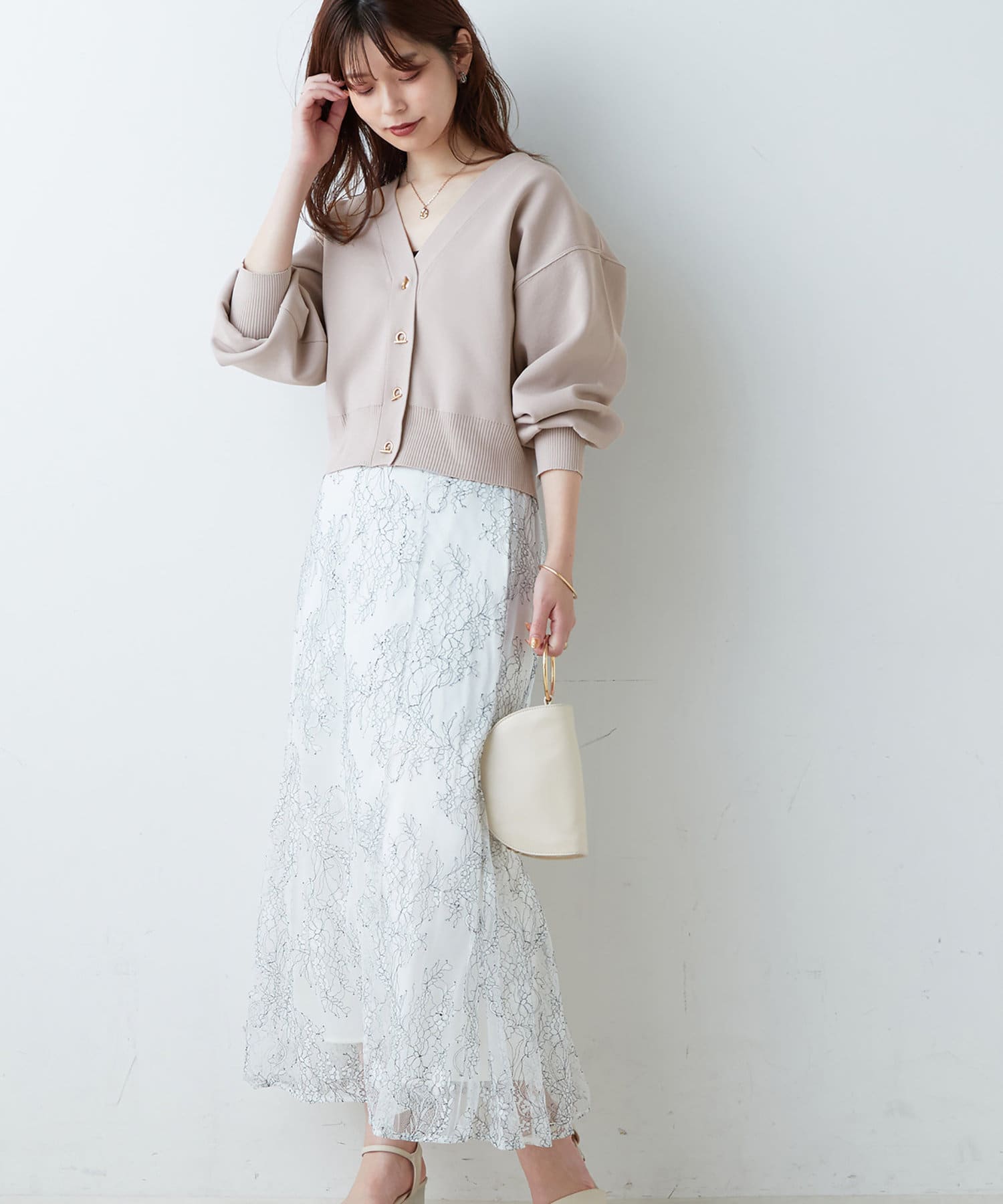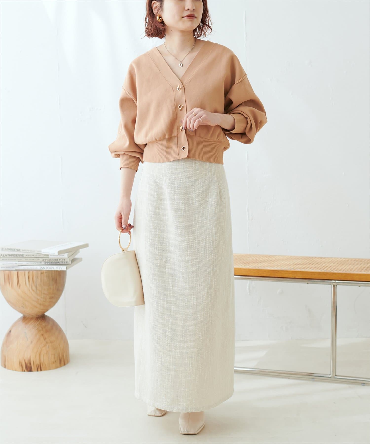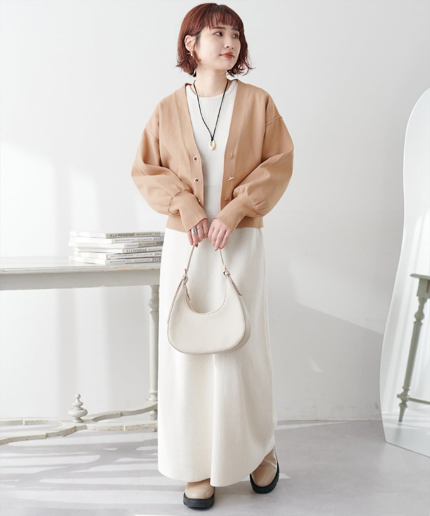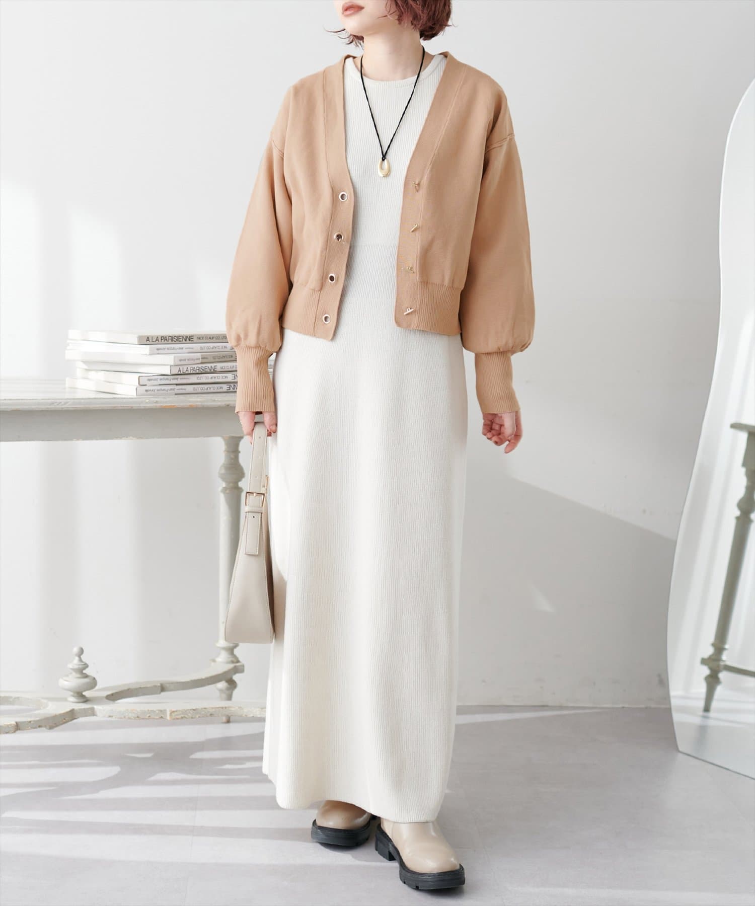 スッキリとしたキレイ見えするニットなので、オフィスからタウンまで幅広いシーンでお召頂けます。