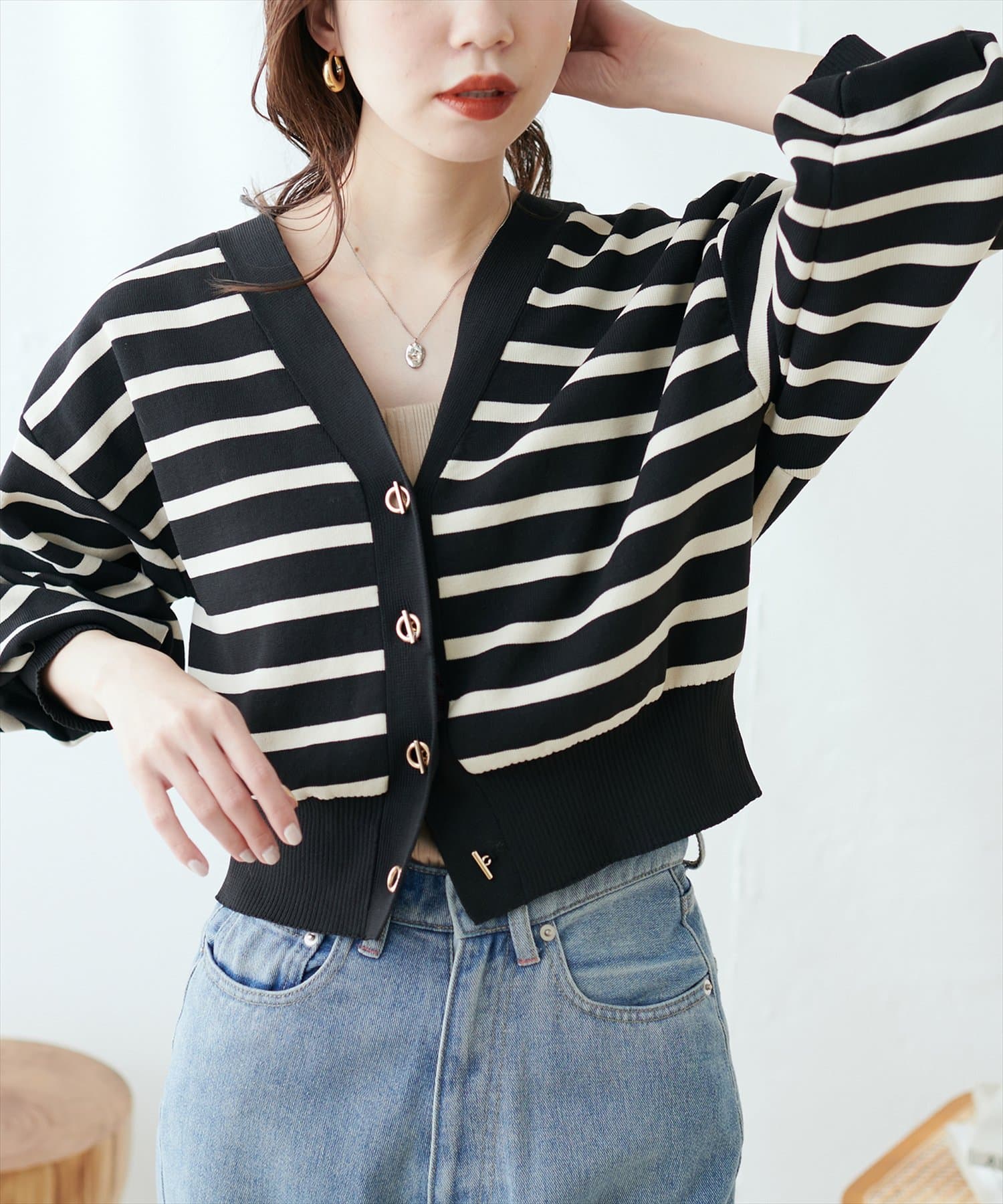 0322050152 プチプラハトメバー釦おしゃれカーディガン