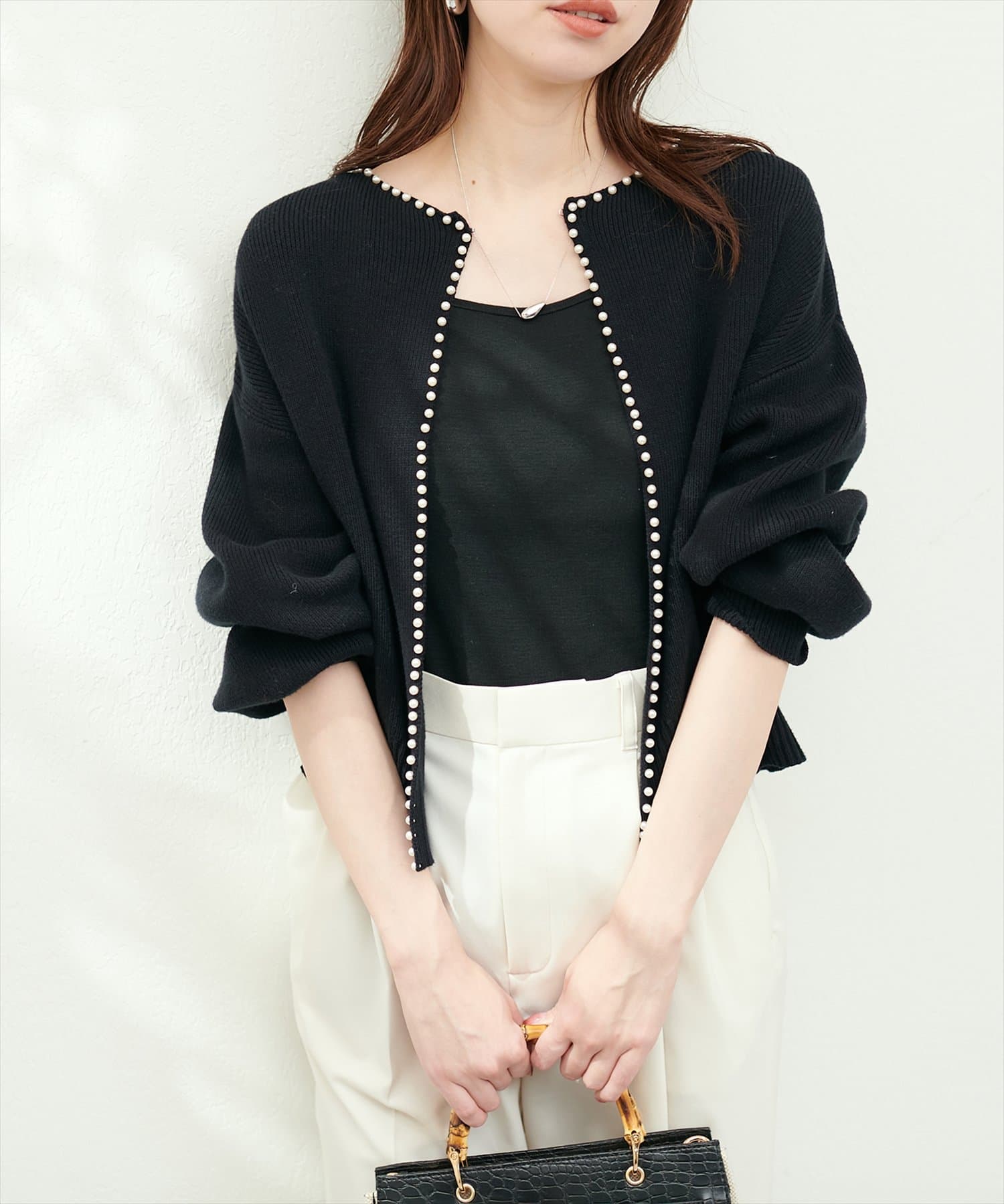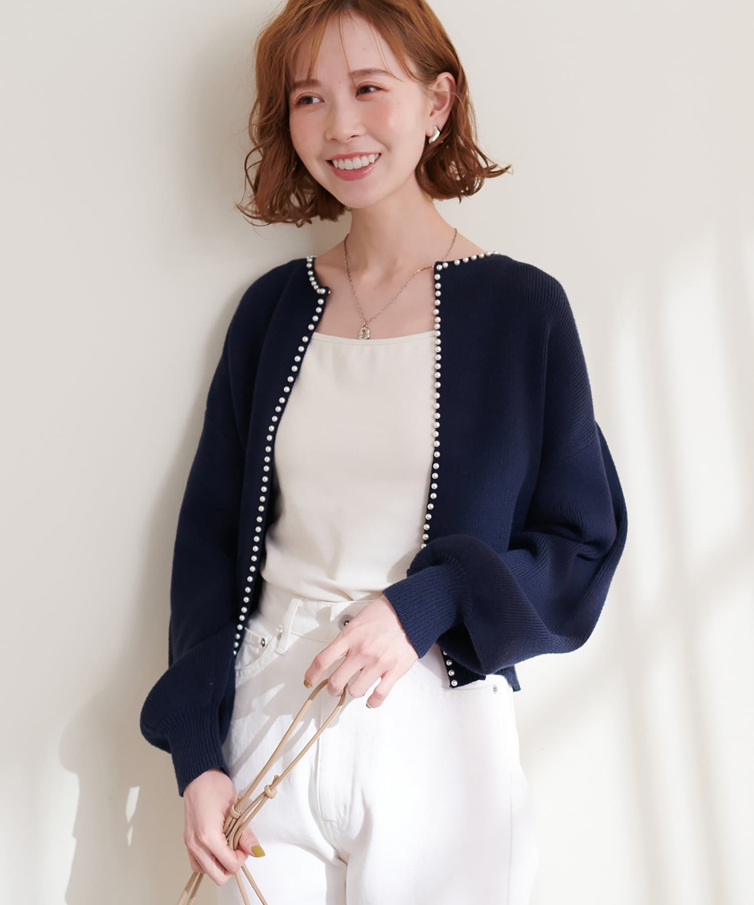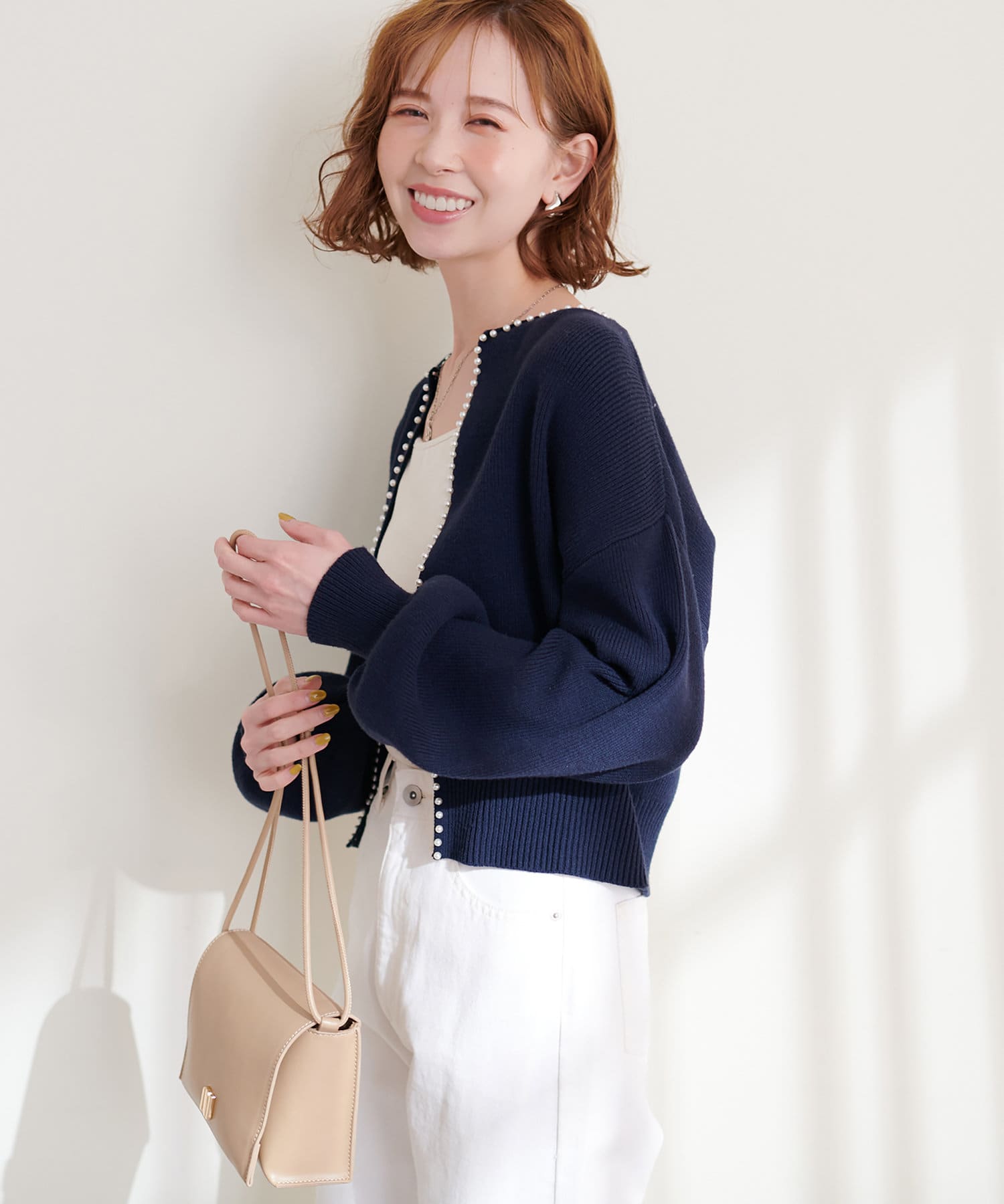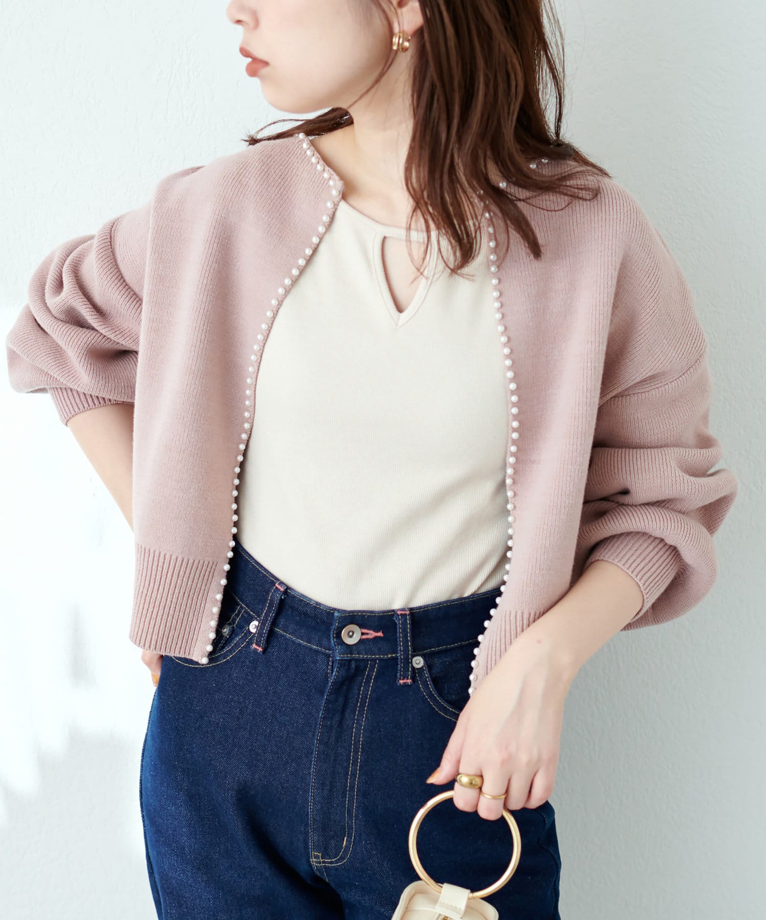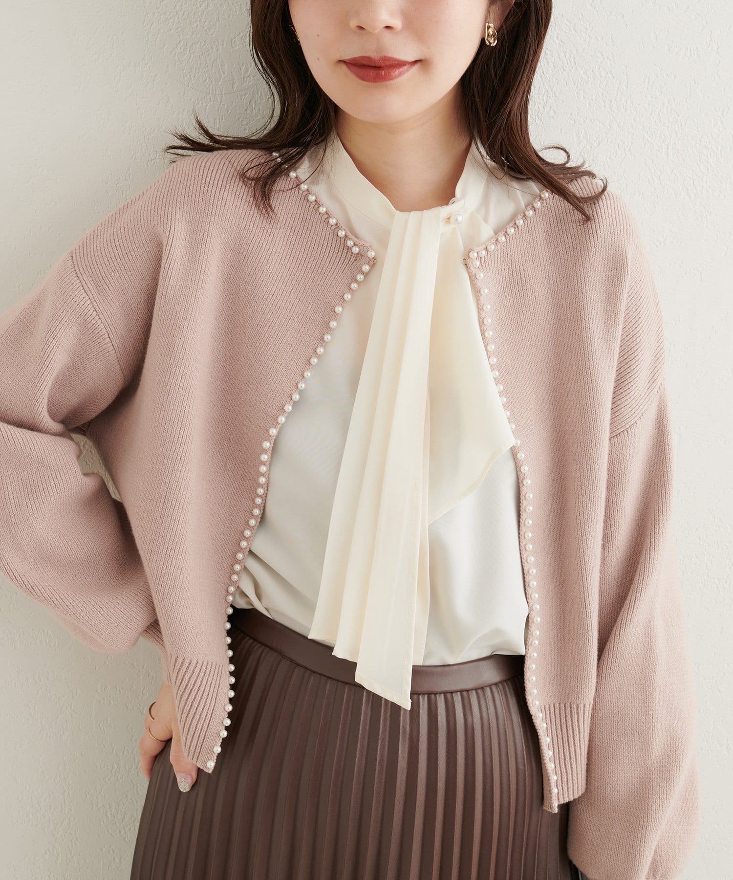 WEB限定カラー有り/パールトリムクルーネックカーディガン