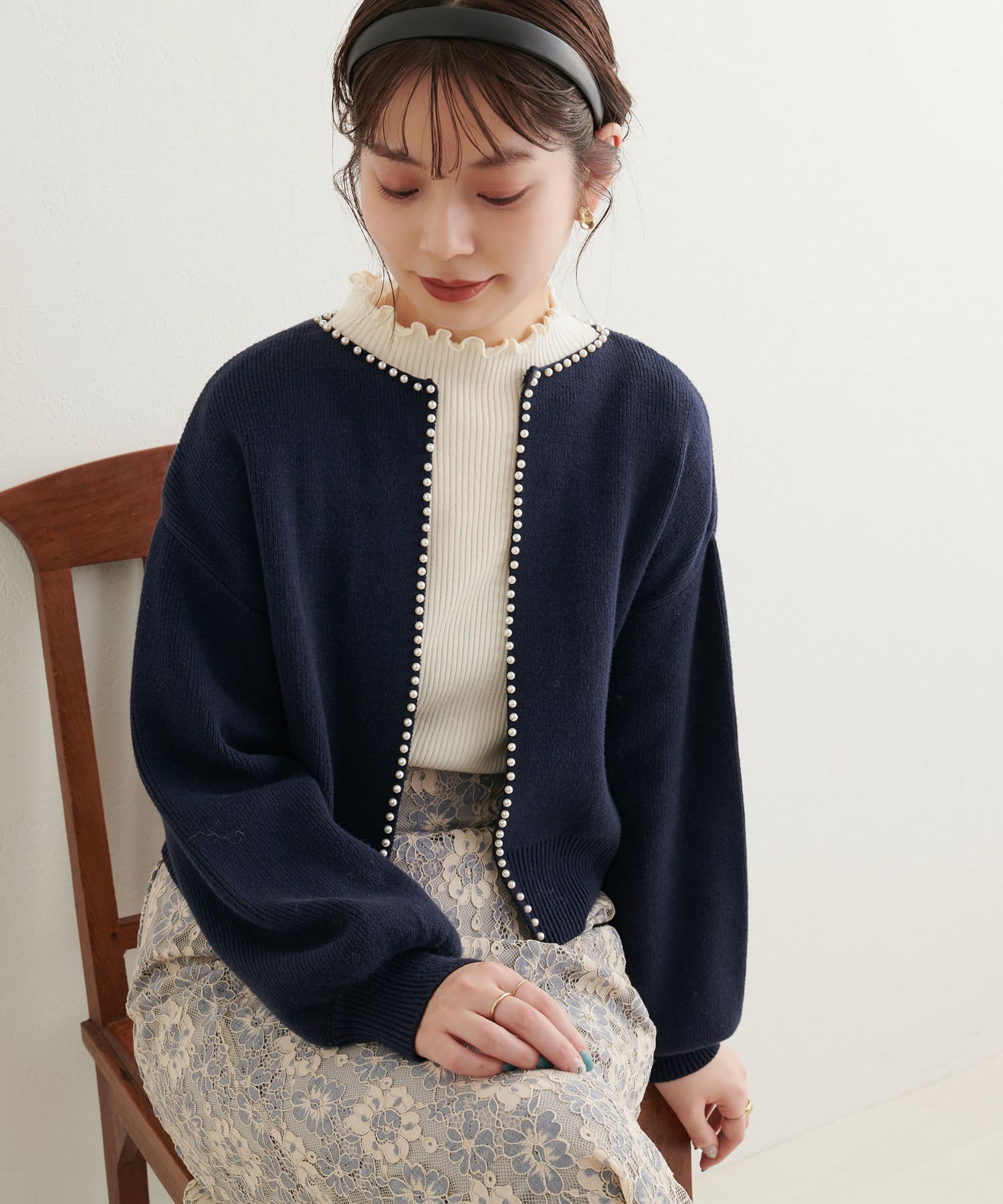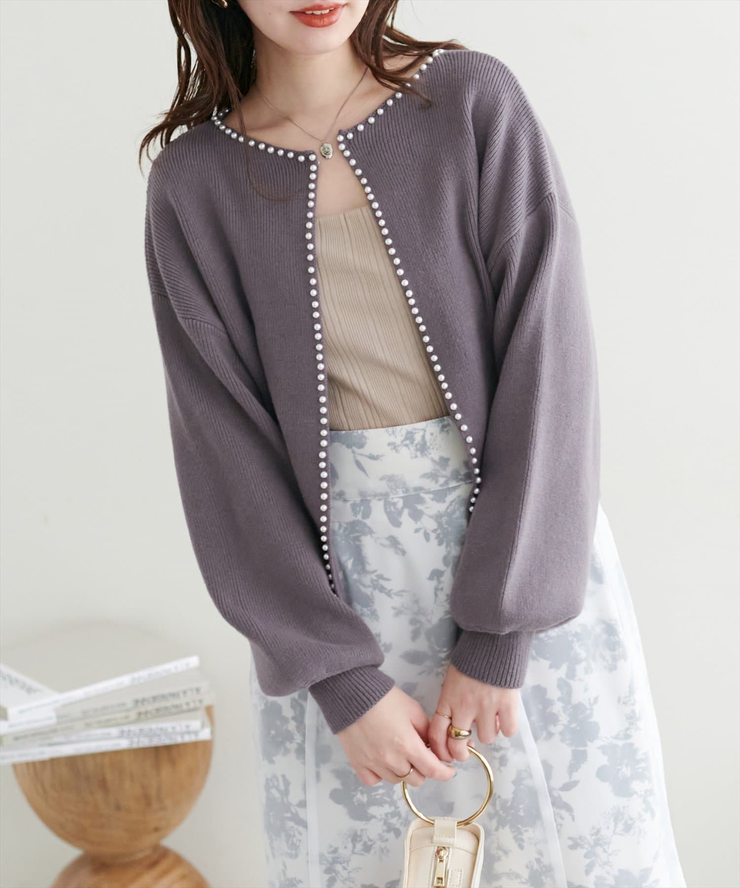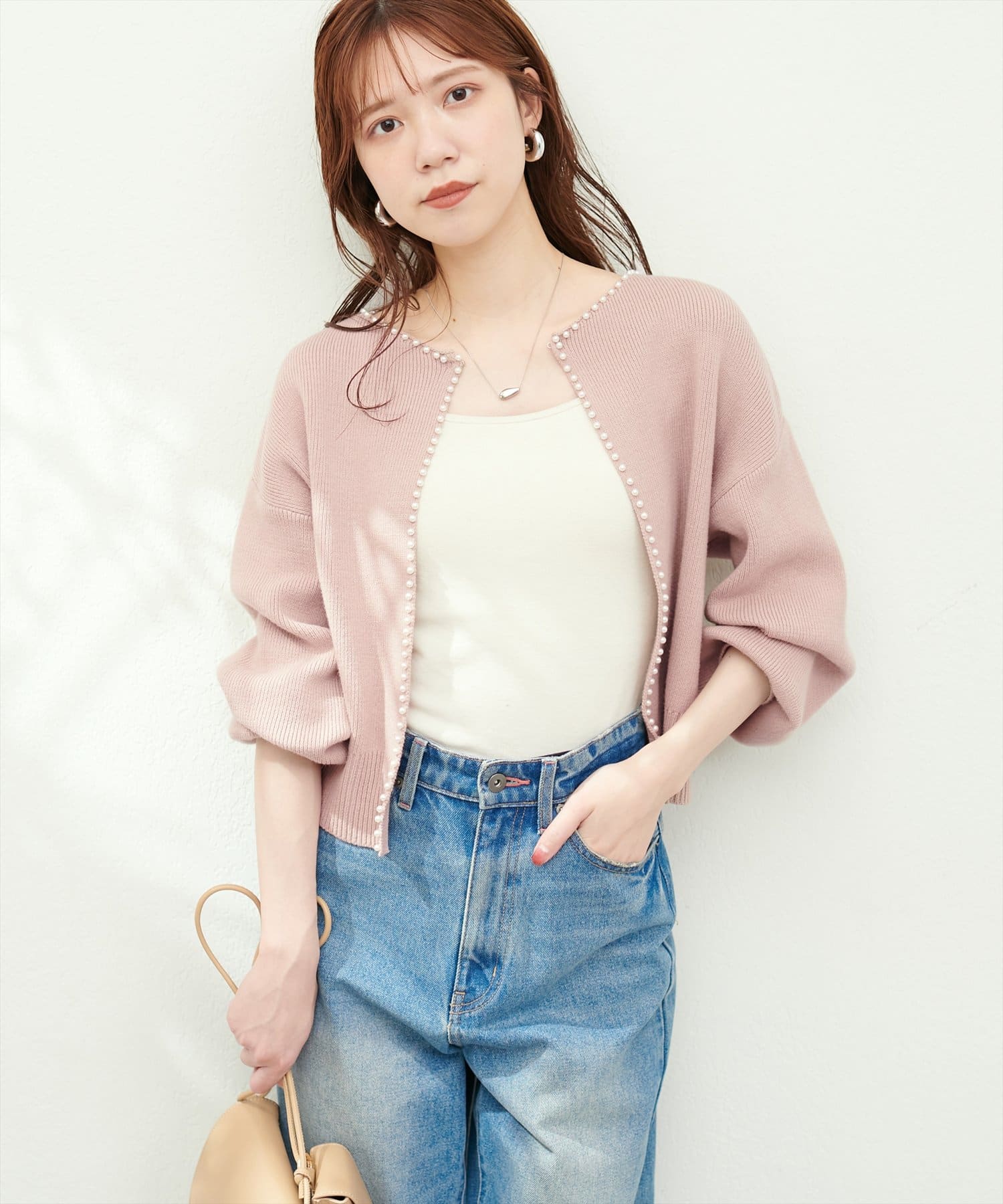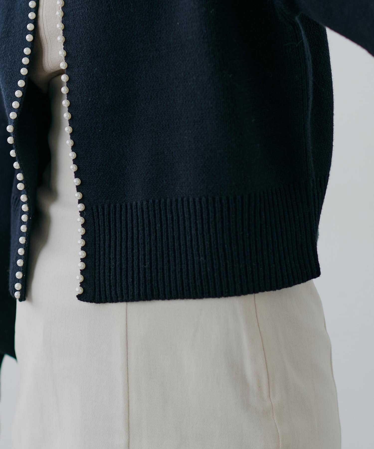 WEB限定カラー有り/パールトリムクルーネックカーディガン