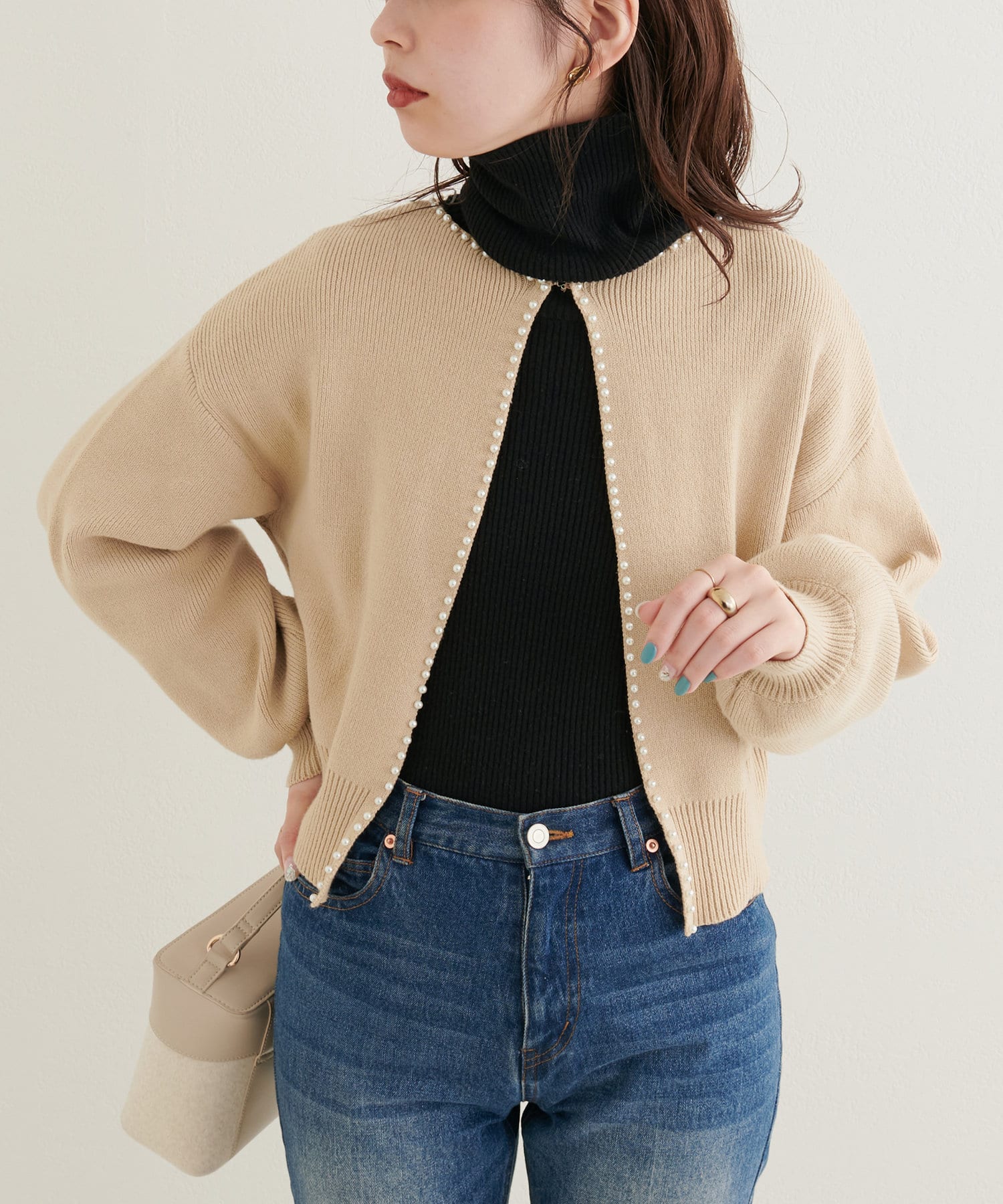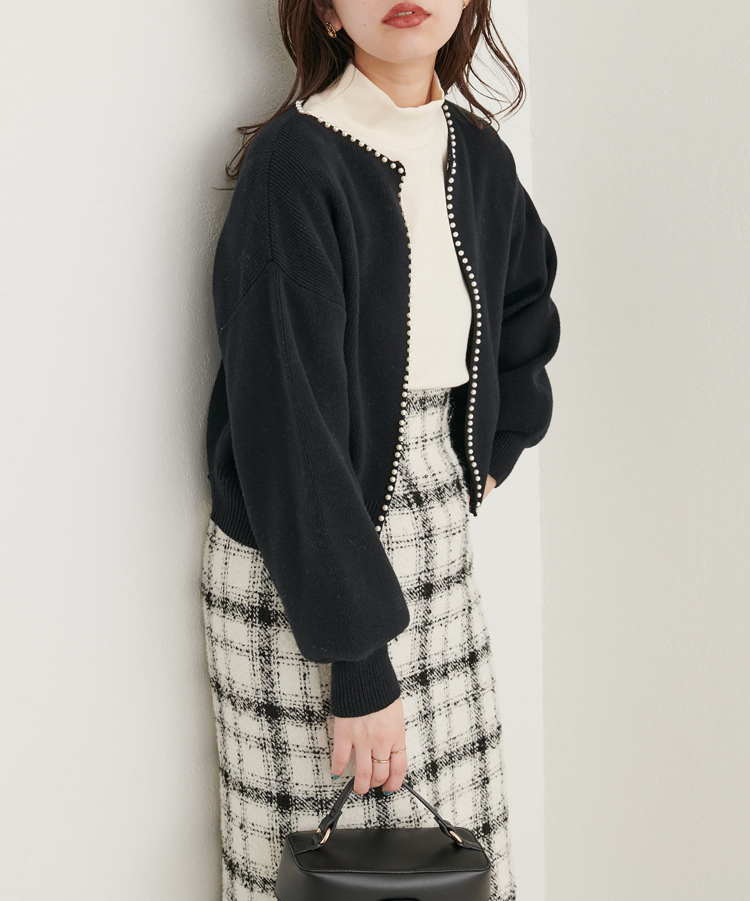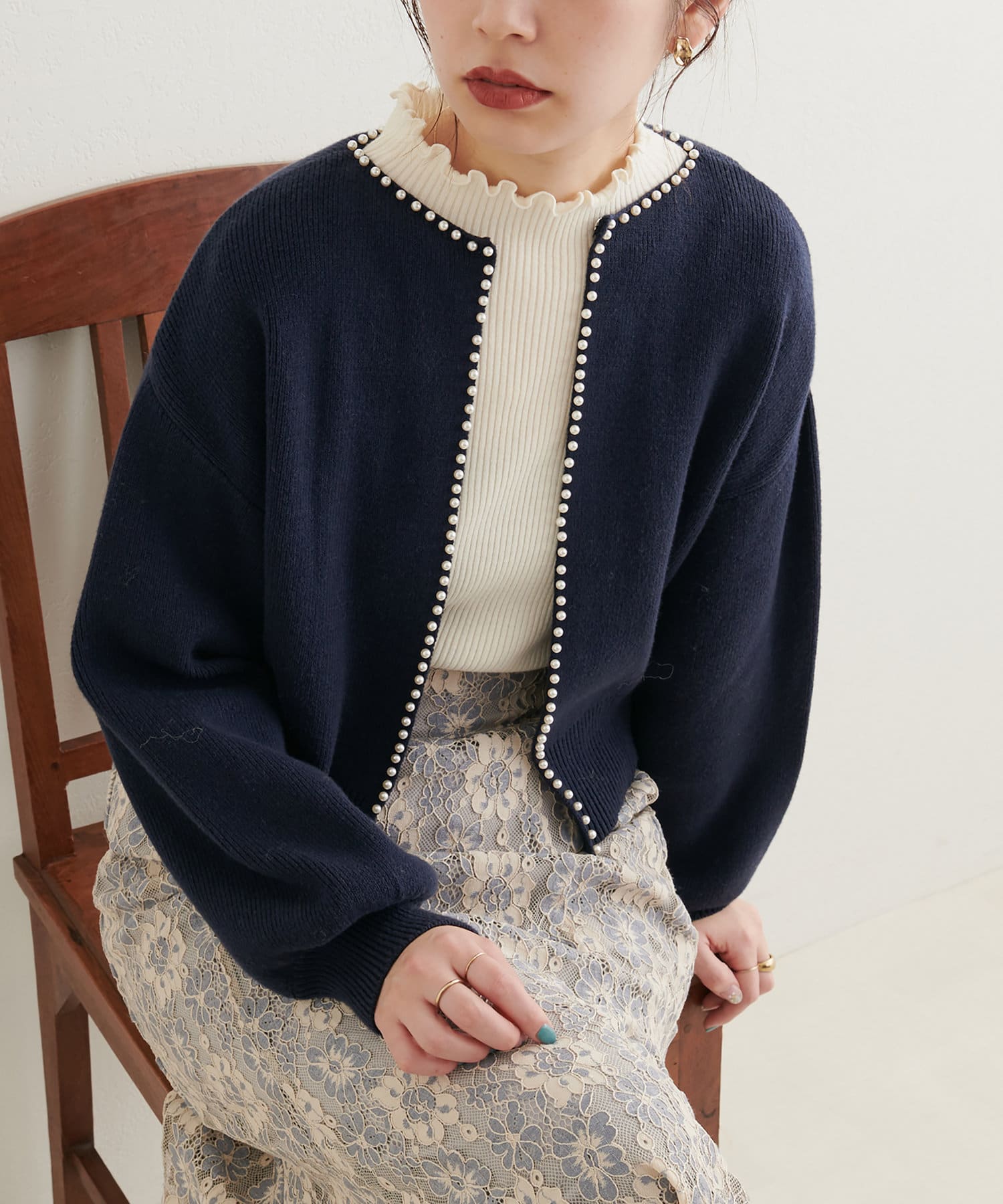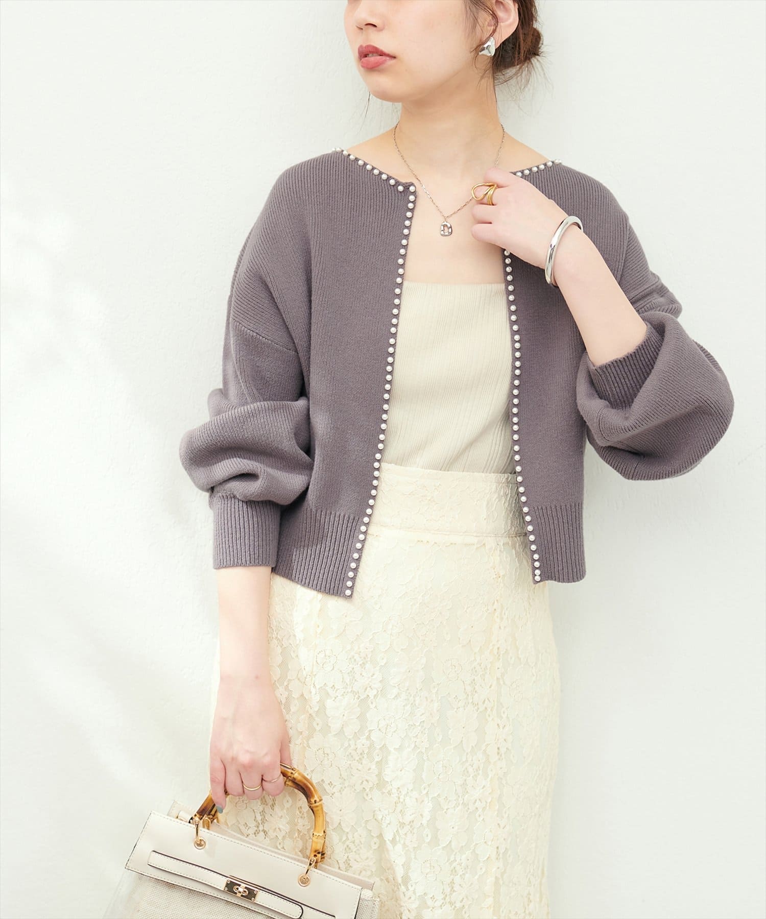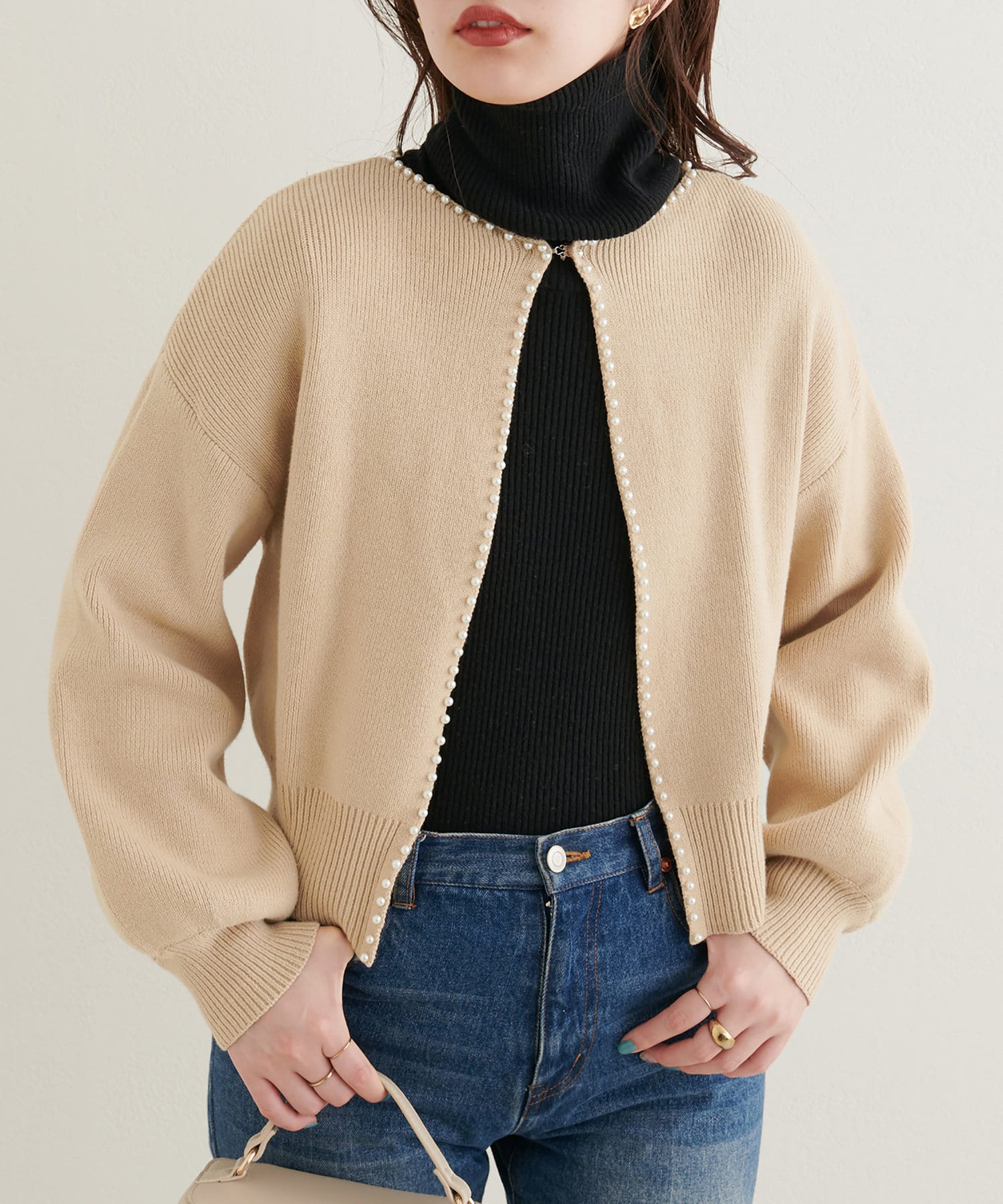 WEB限定カラー有り/パールトリムクルーネックカーディガン