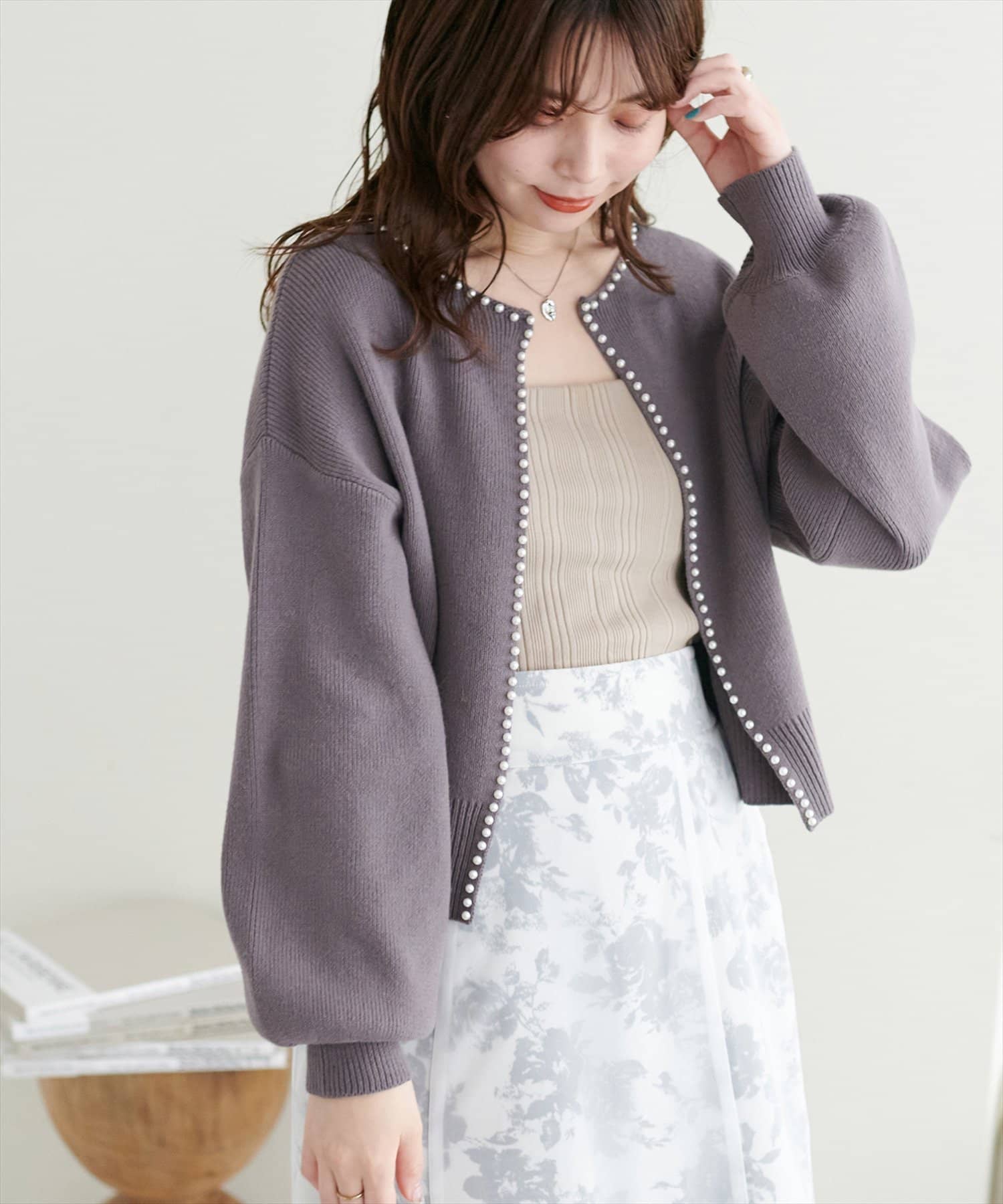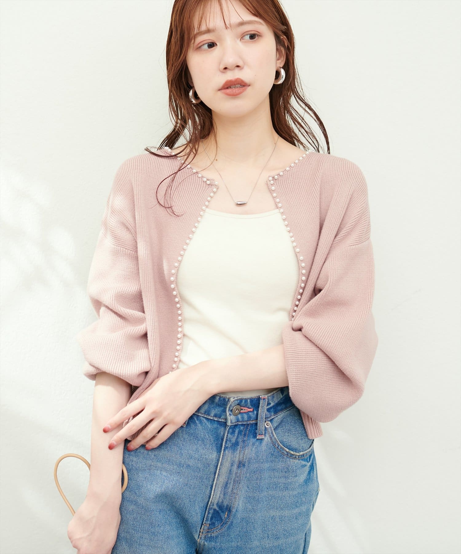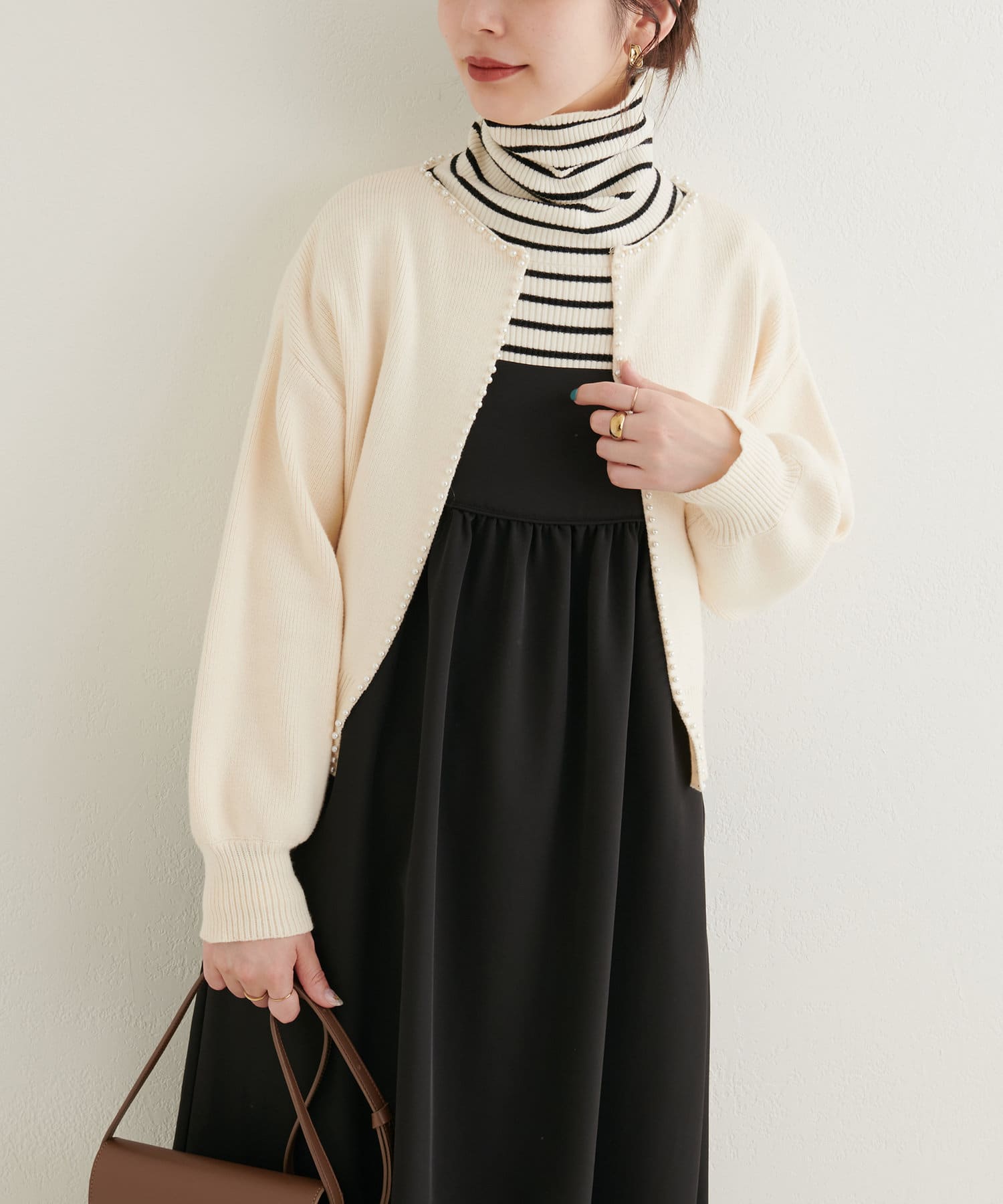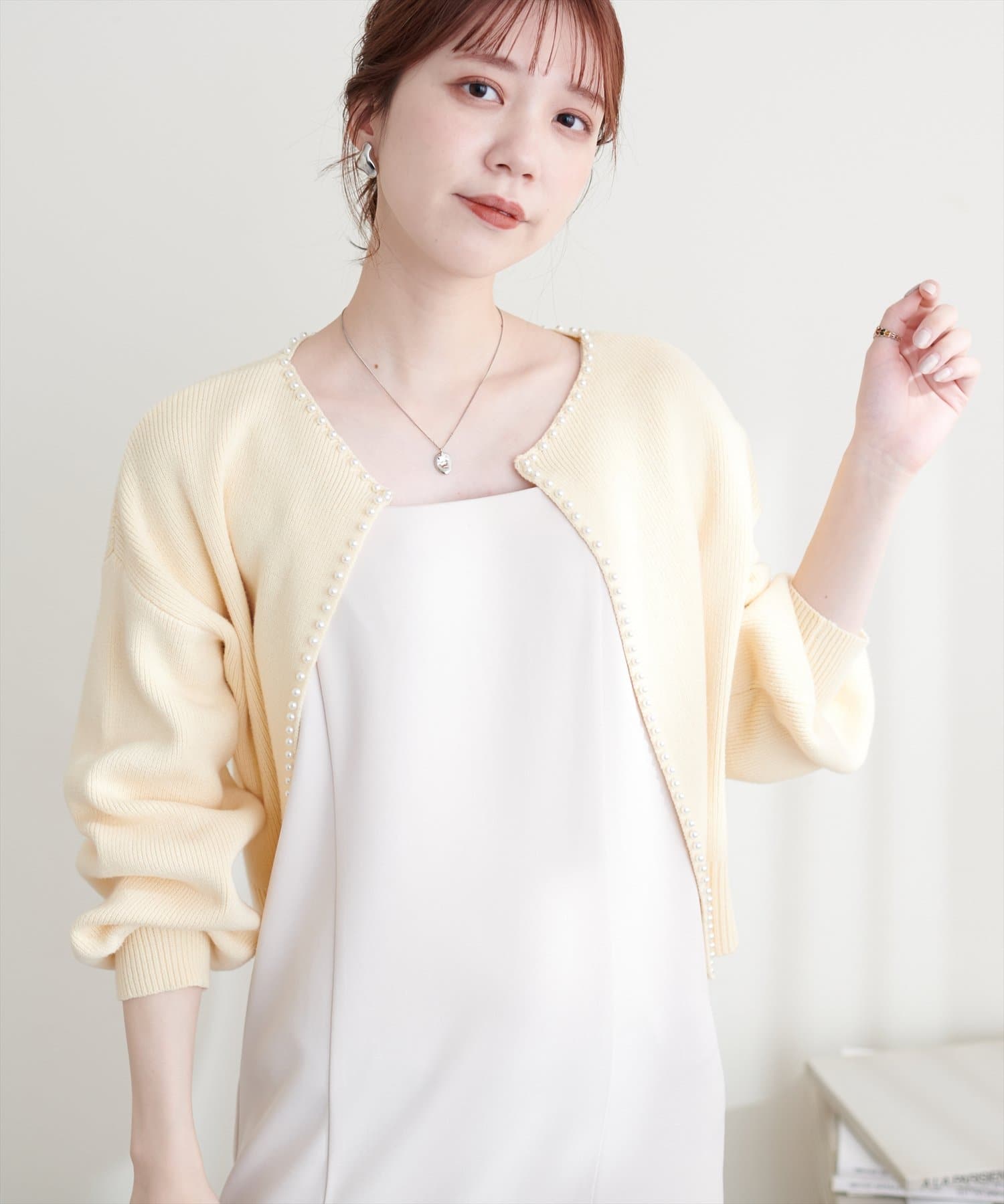 WEB限定カラー有り/パールトリムクルーネックカーディガン