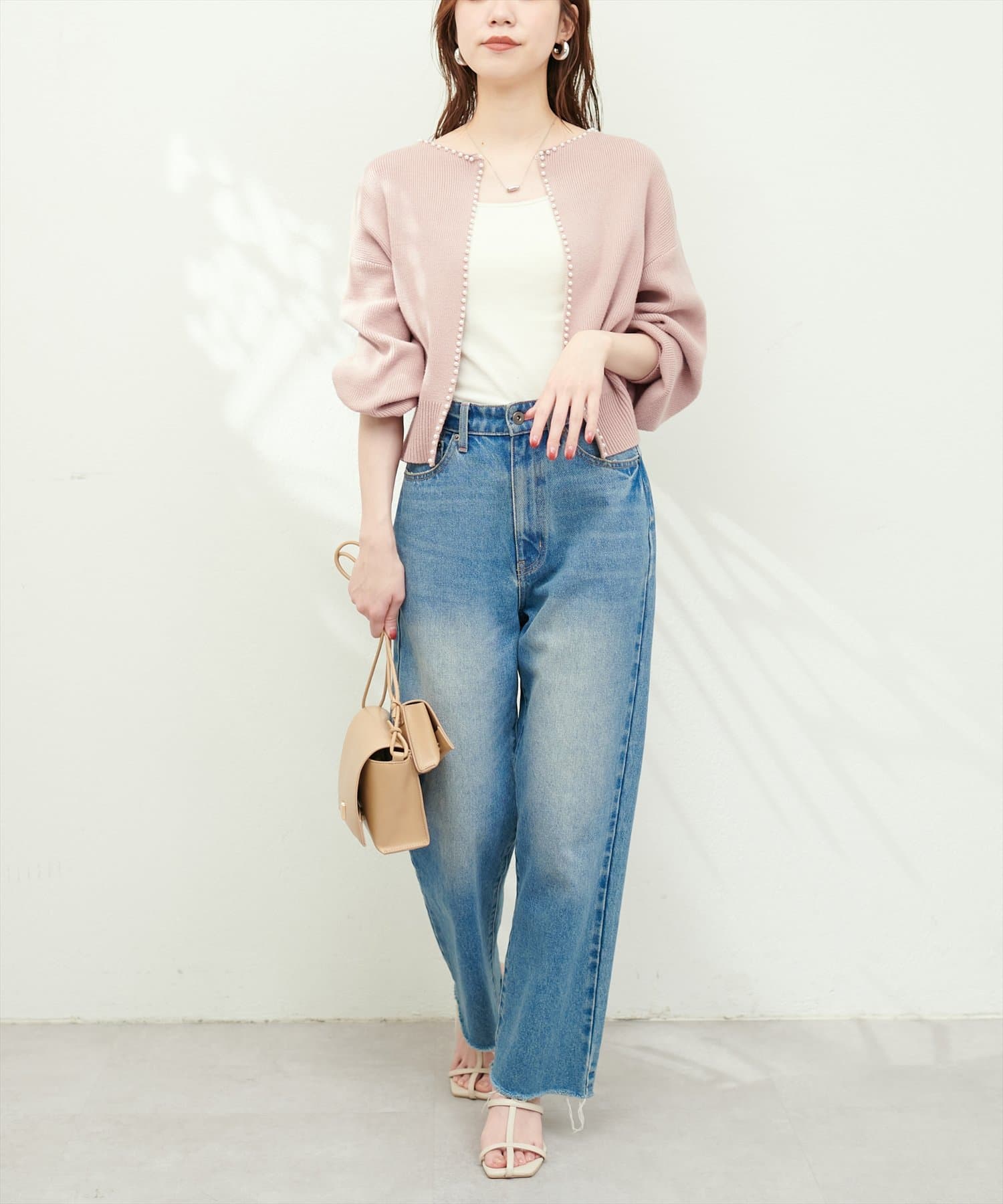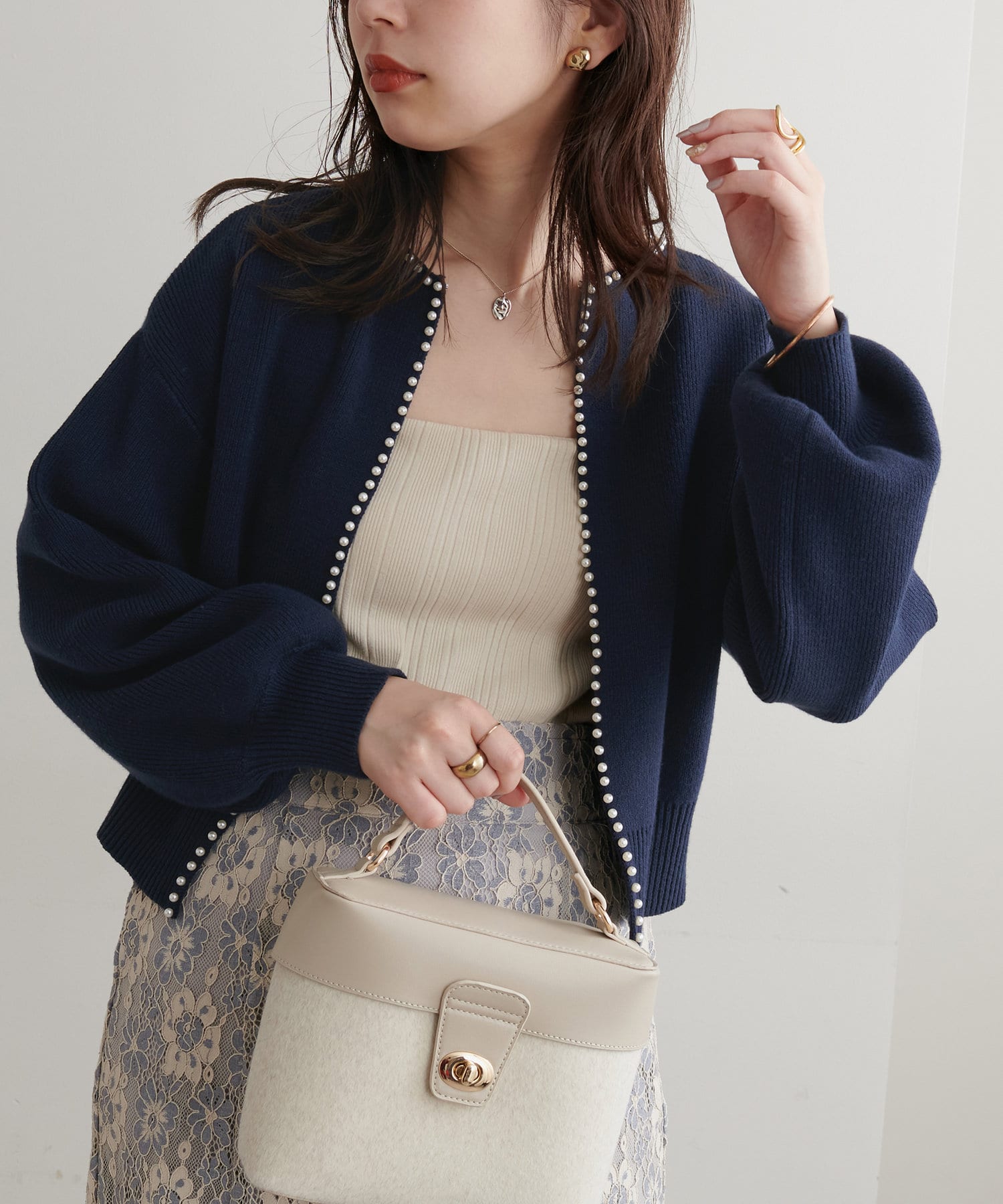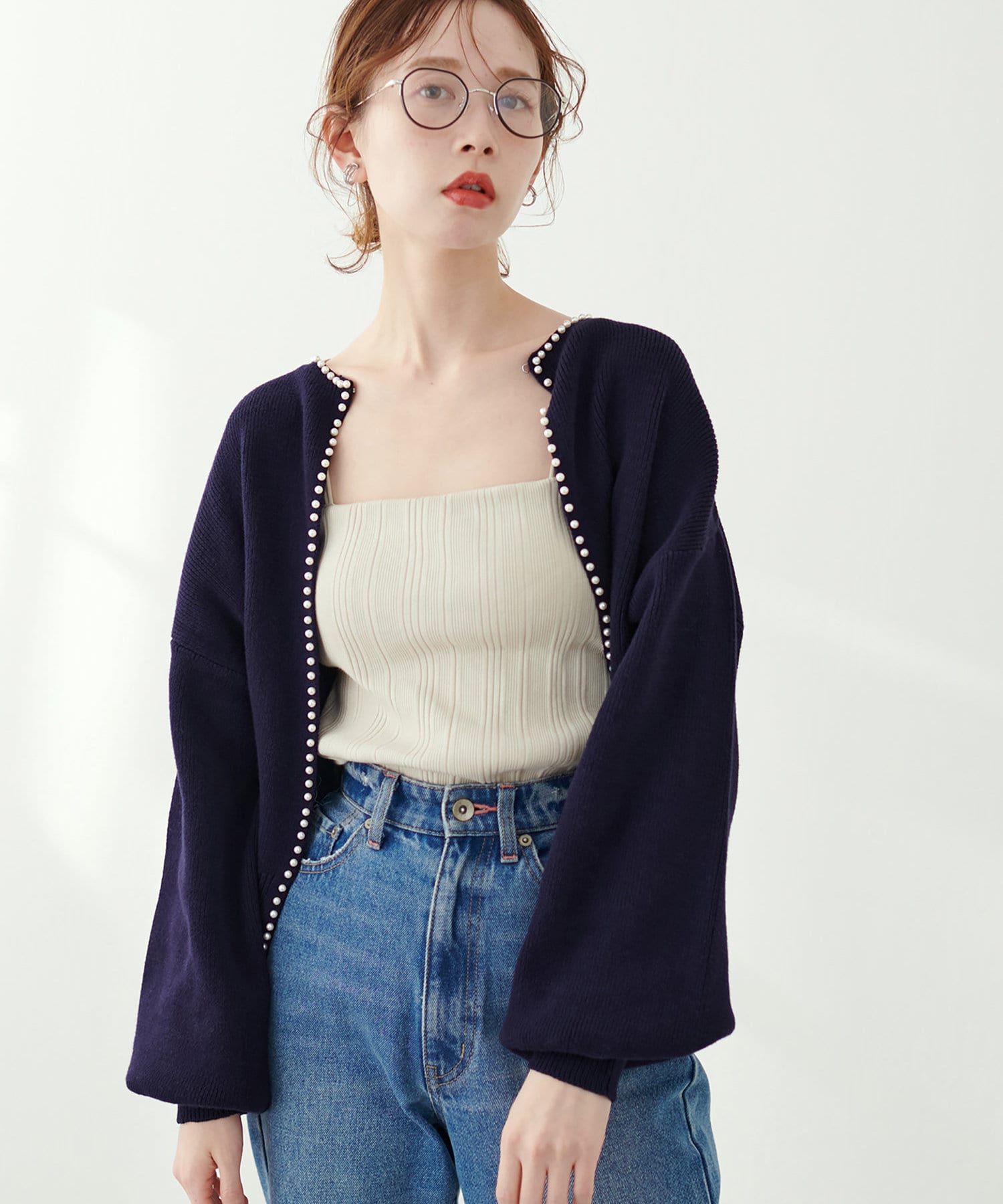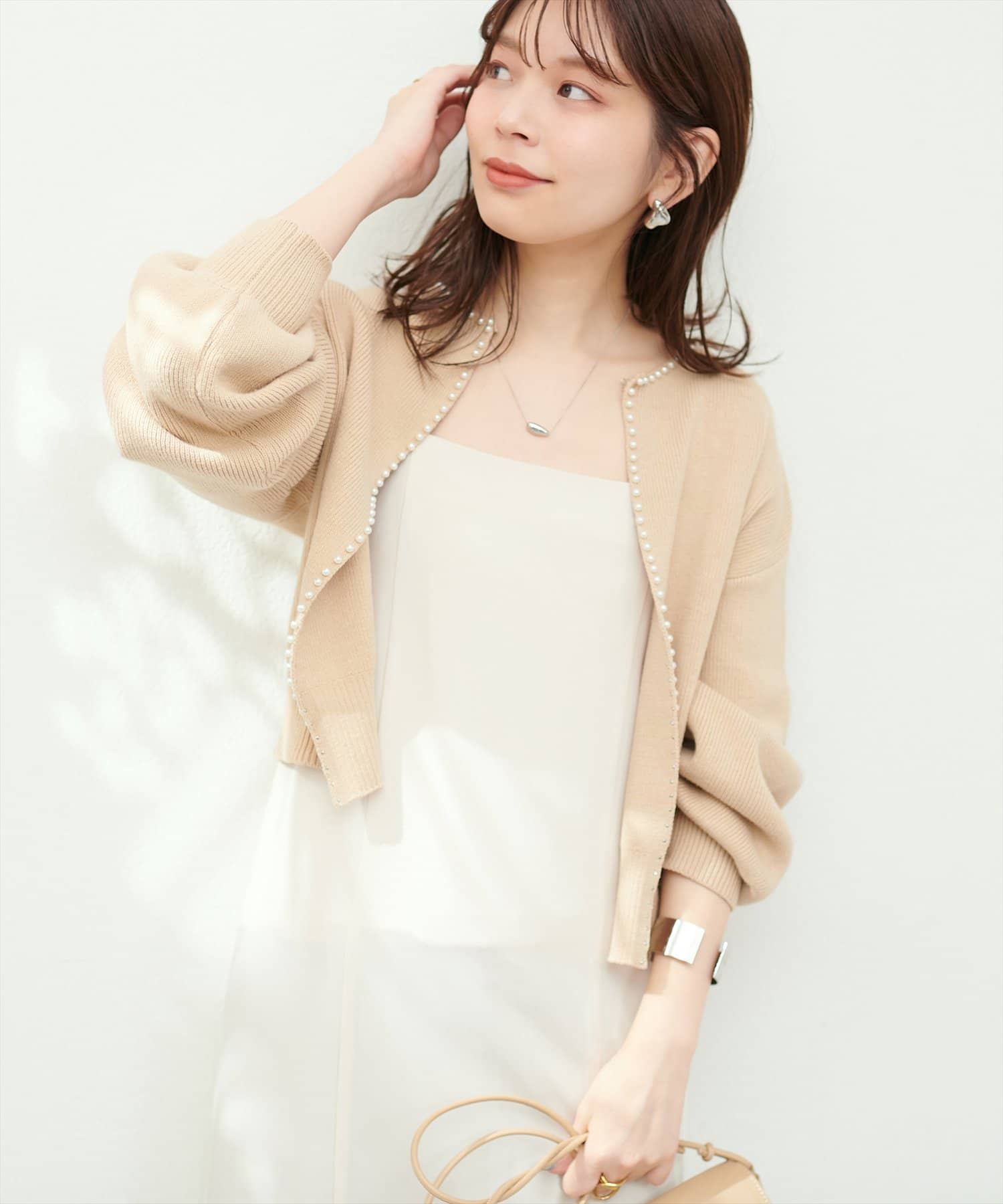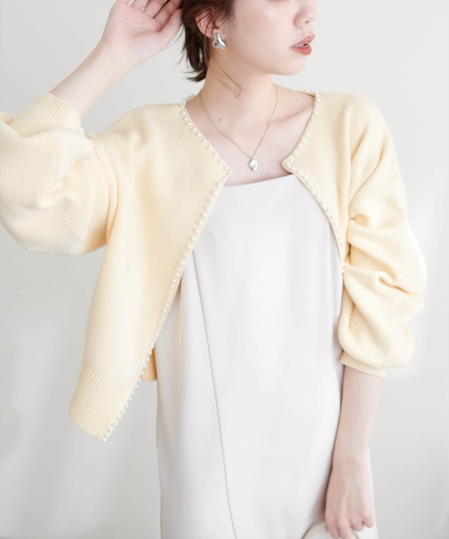 WEB限定カラー有り/パールトリムクルーネックカーディガン