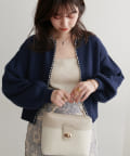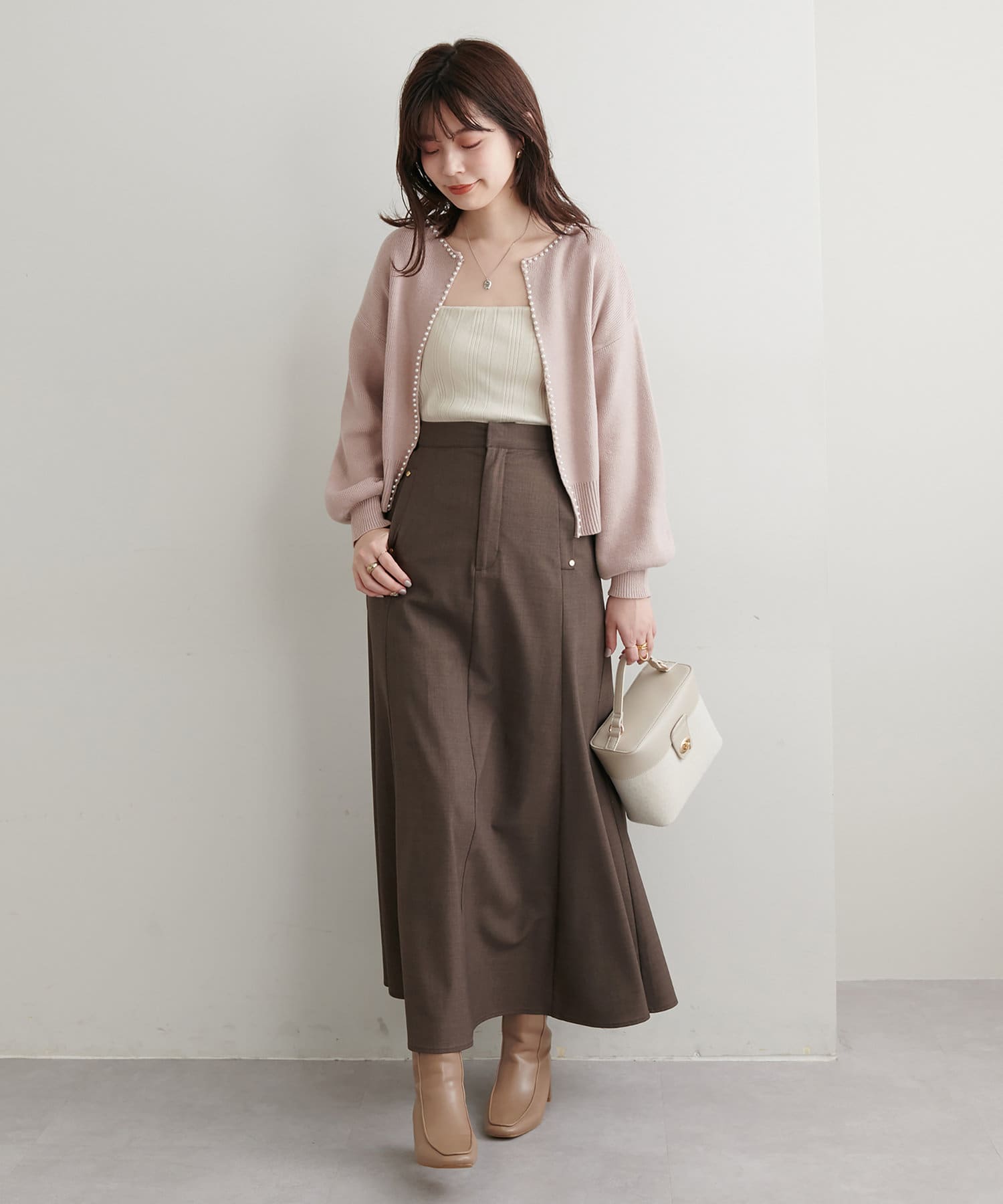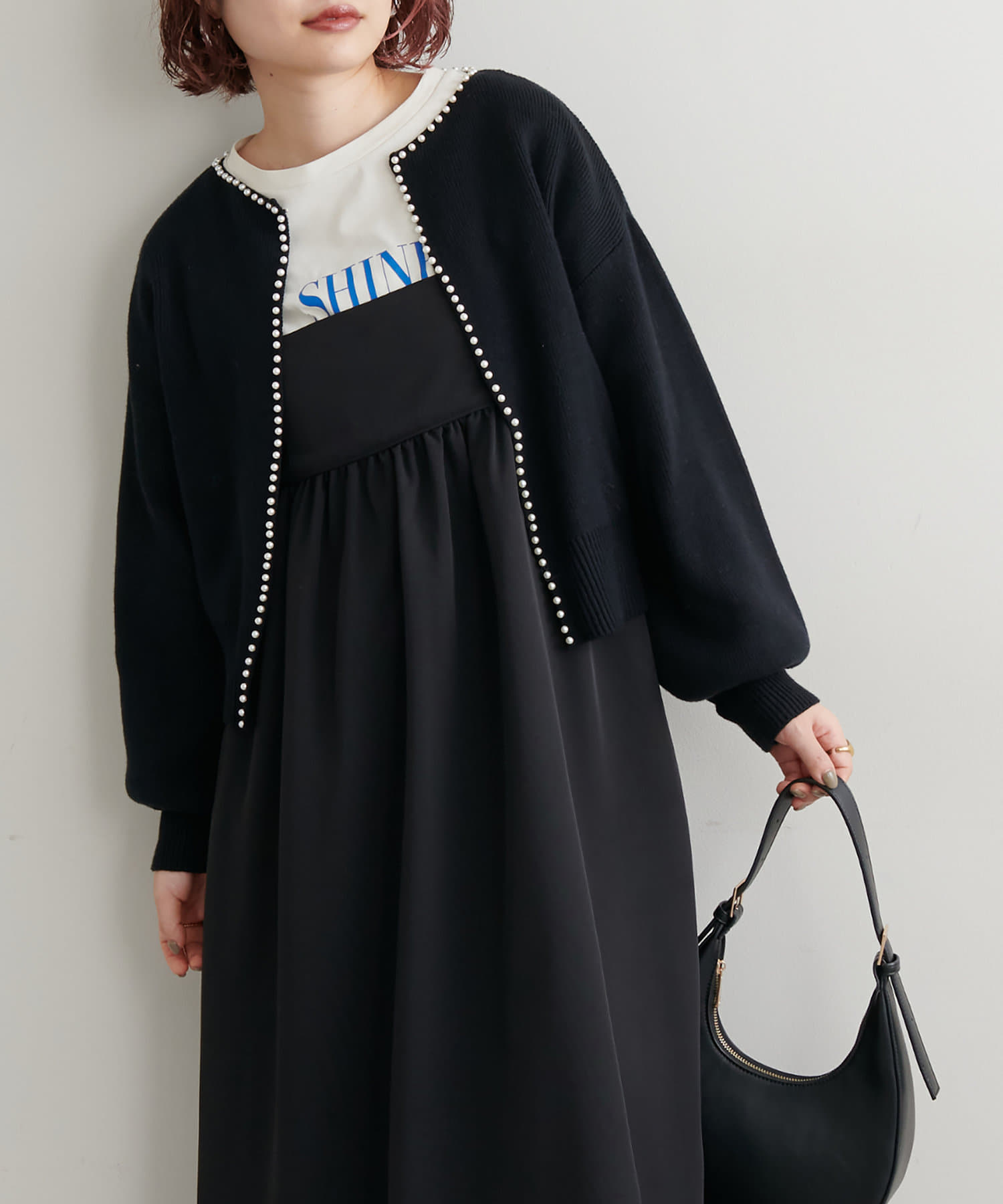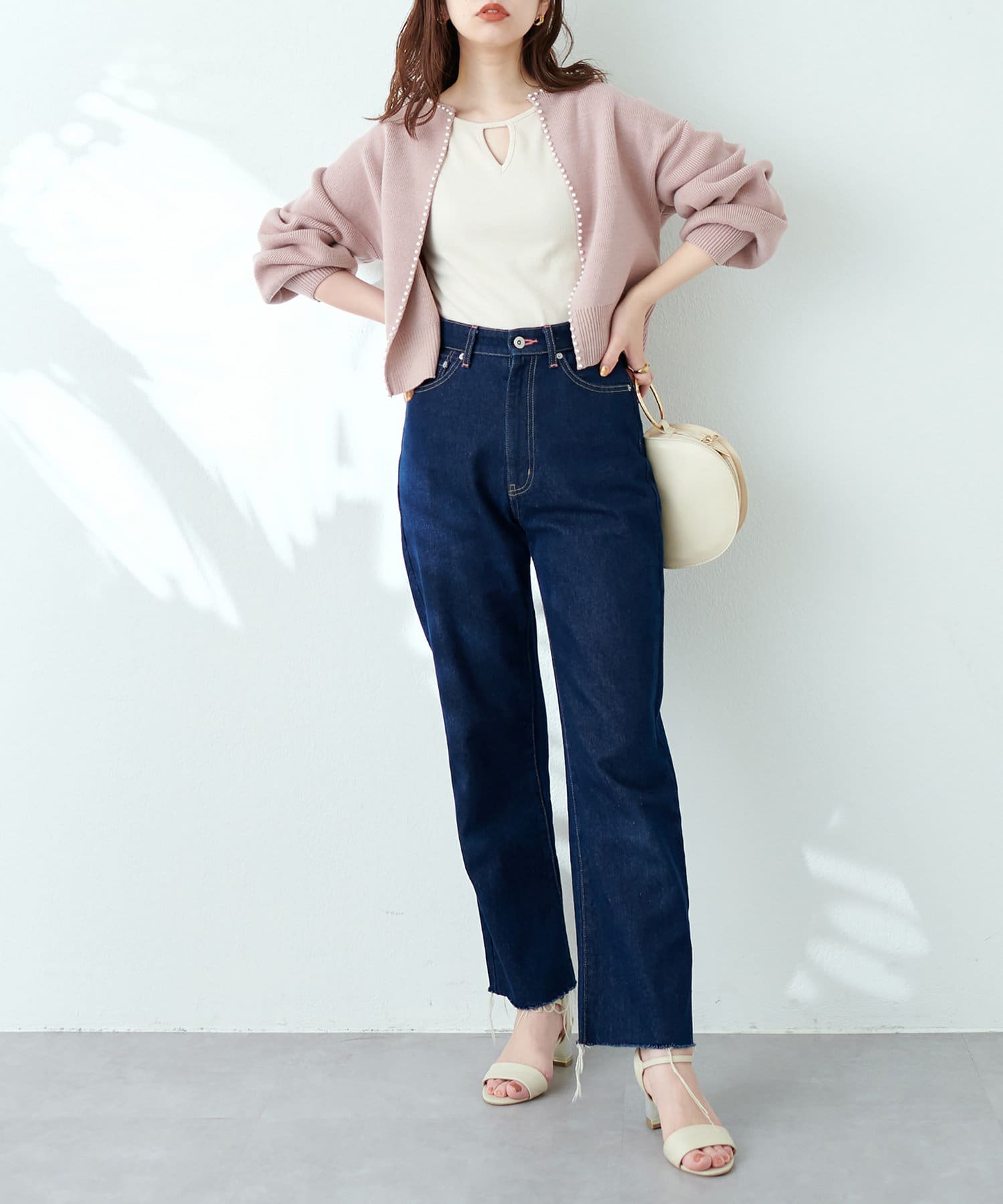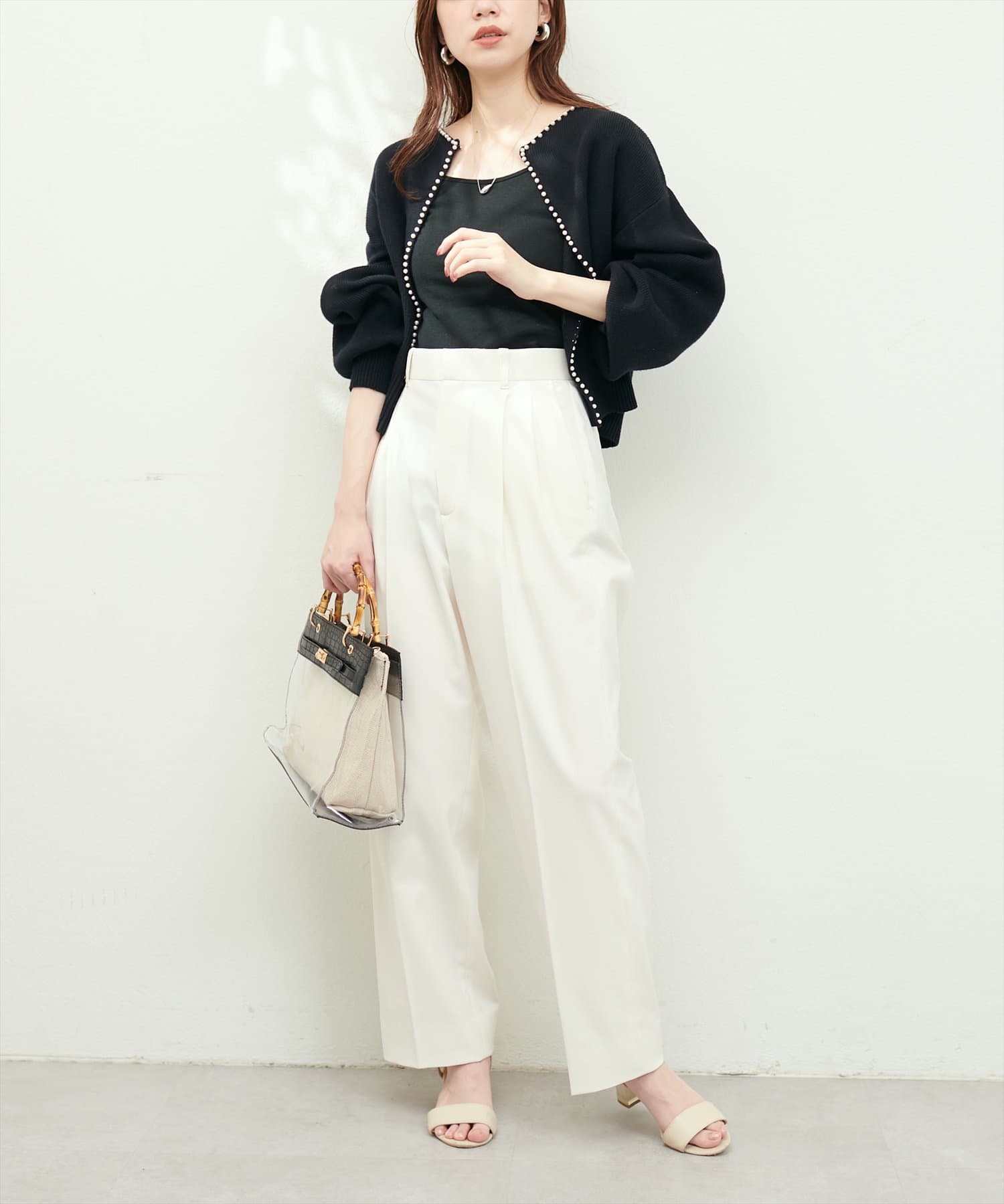 WEB限定カラー有り/パールトリムクルーネックカーディガン
