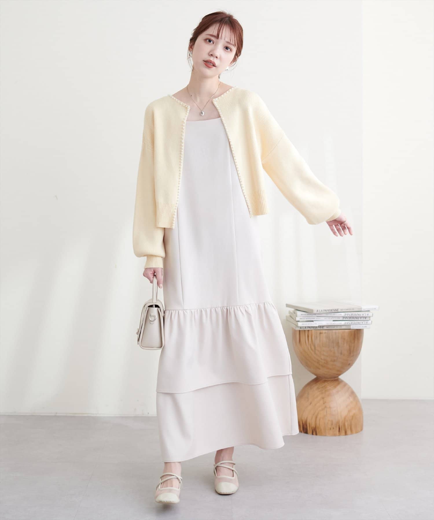 お好みでキャミワンピースやジャンパースカートに羽織って頂くのもおすすめです。