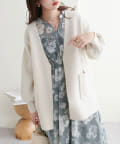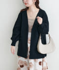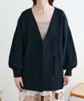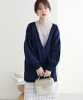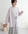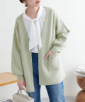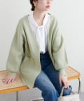釦なしのすっきりとしたデザインでさっと羽織れるカーディガン。