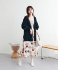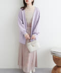 ゆるやかなVネックなので、フリルブラウスなどフロントにポイントのあるトップスと相性抜群。
