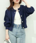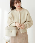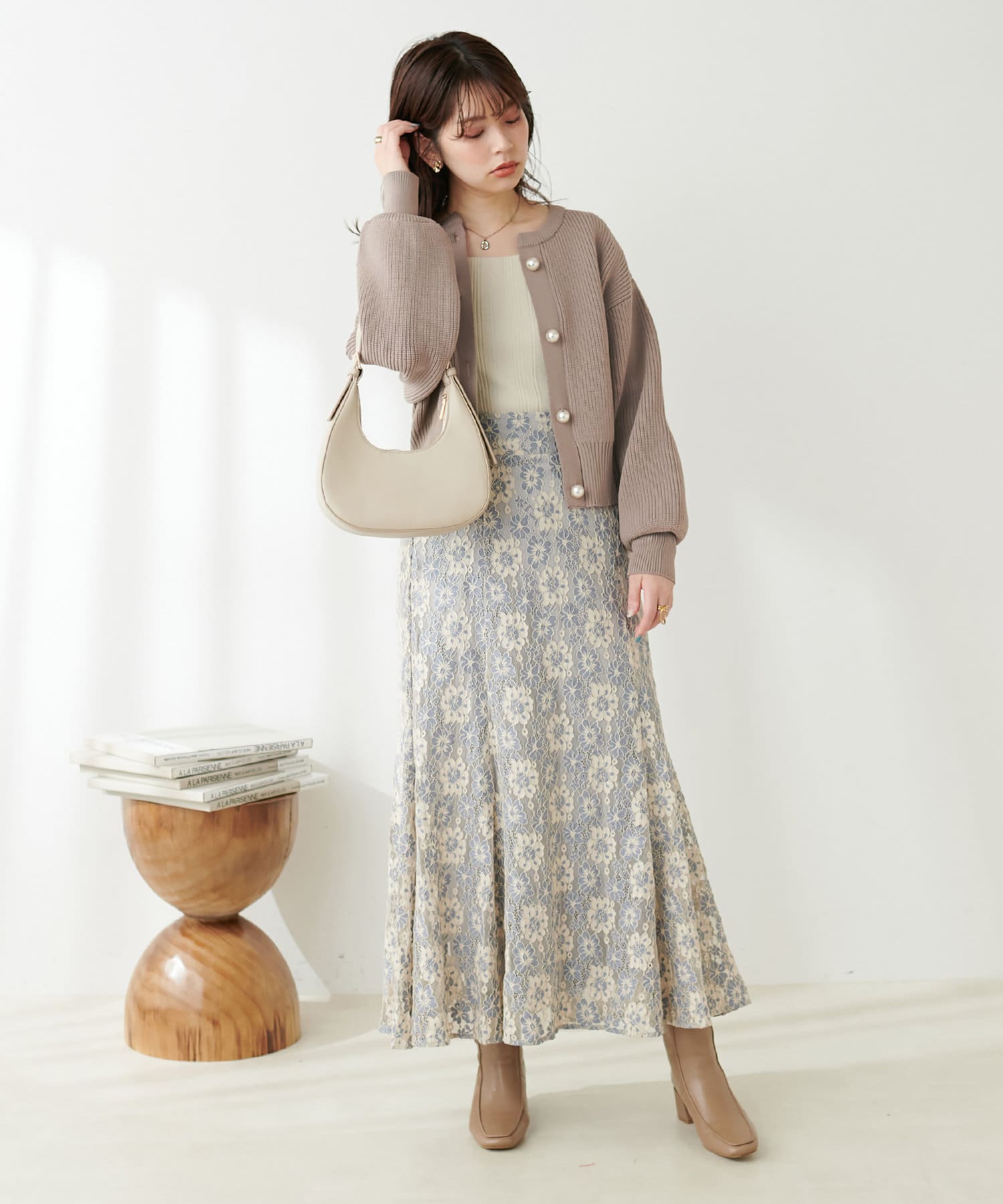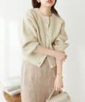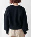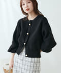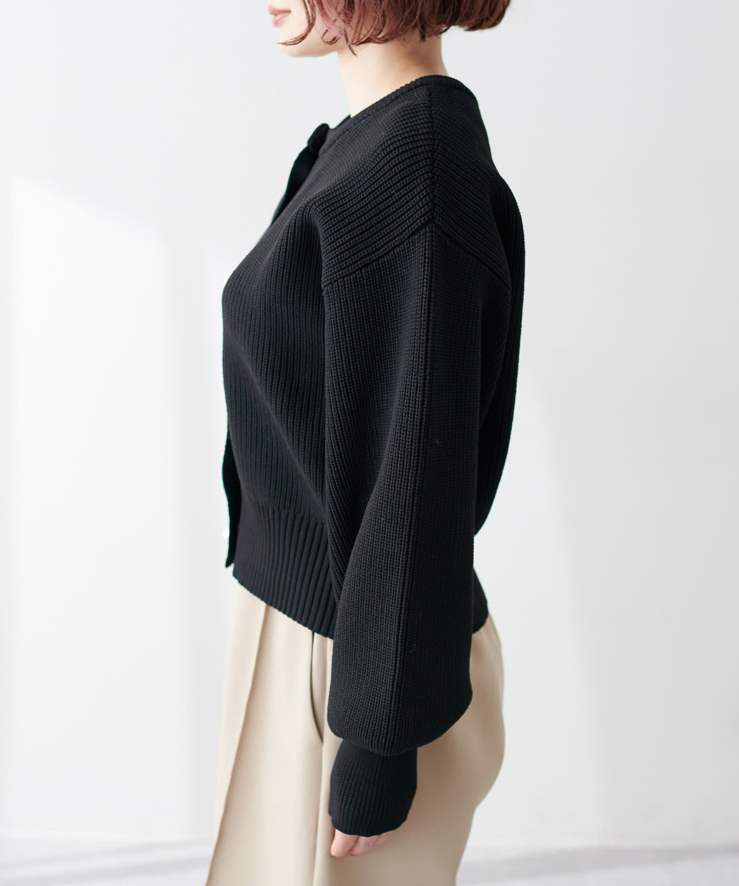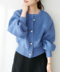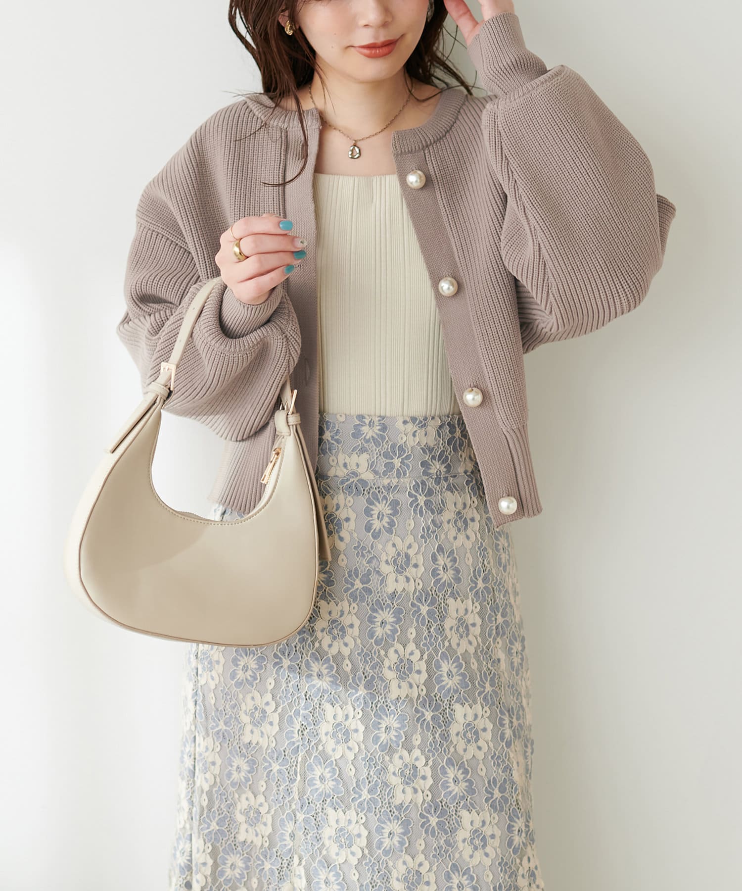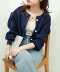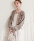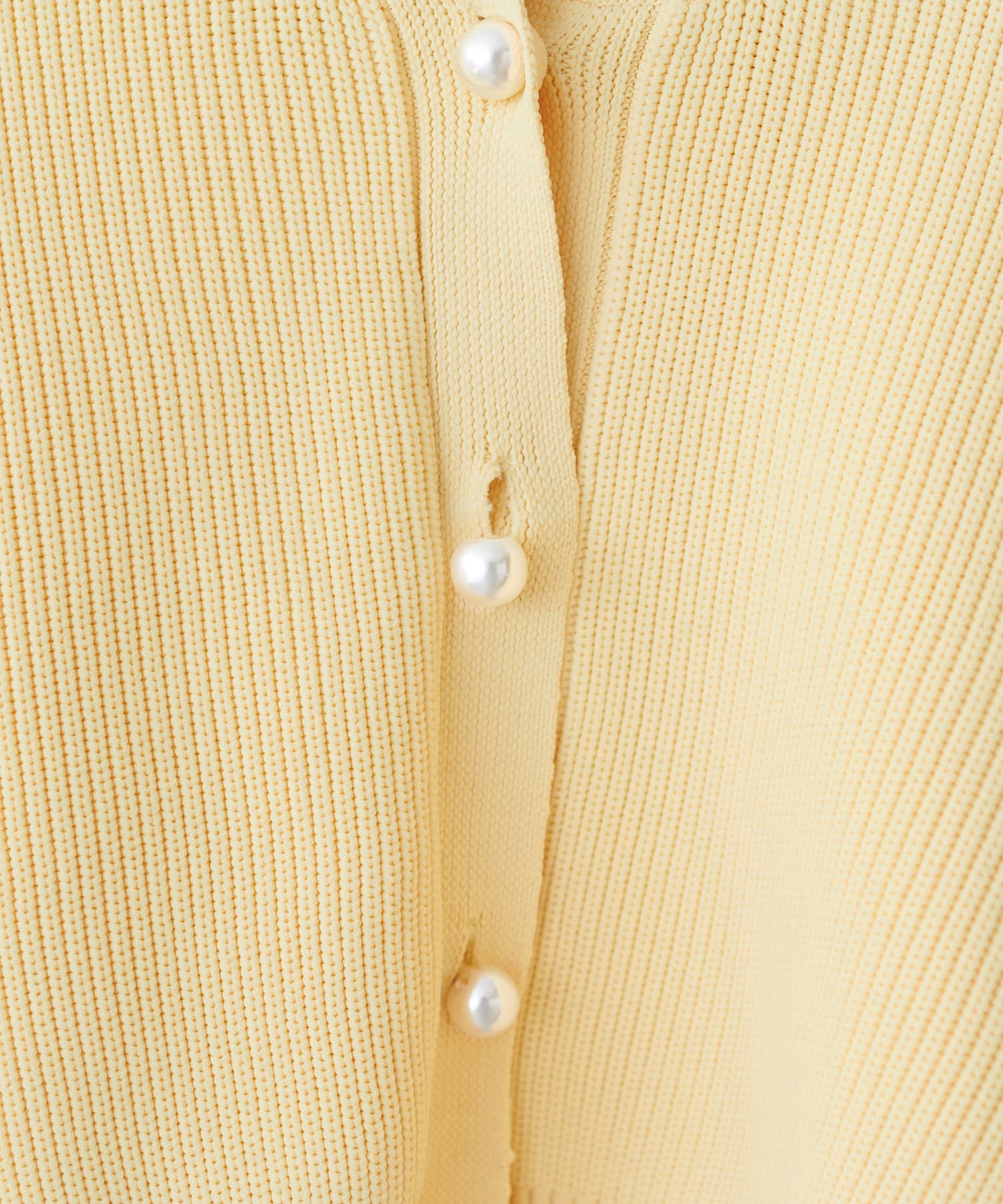 大きなパール釦がレトロな雰囲気を醸し出すニットカーディガン。