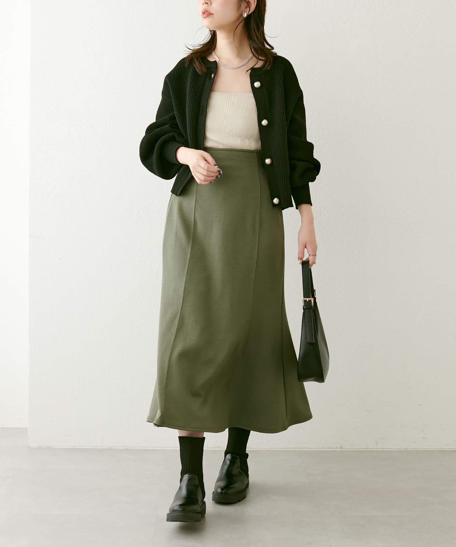フレアスカートでフェミニンに、Iラインスカートで大人っぽくと、合わせるアイテム次第で雰囲気を変えられるアイテムです。