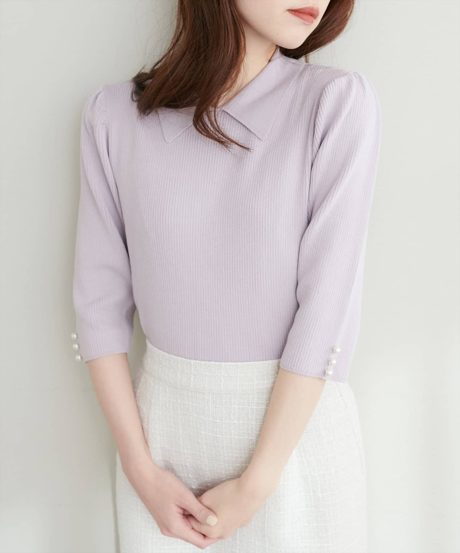 肩にギャザーがふわっと入っていて、柔らかい印象に。