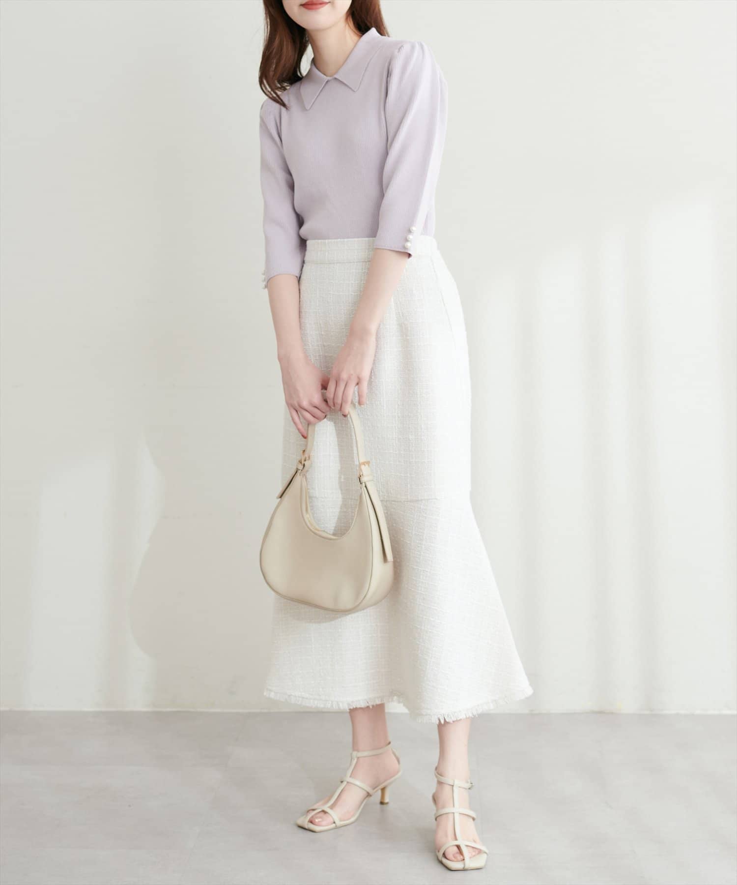 フレアやマーメイド、ナローシルエットのスカートにウエストインしてきれいめに合わせるのはもちろん、