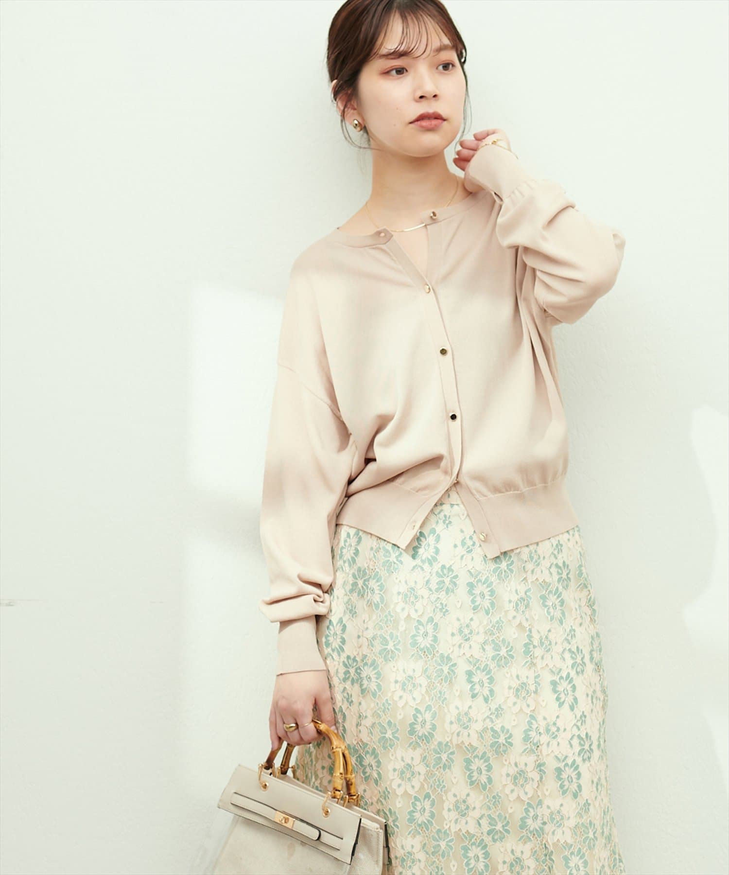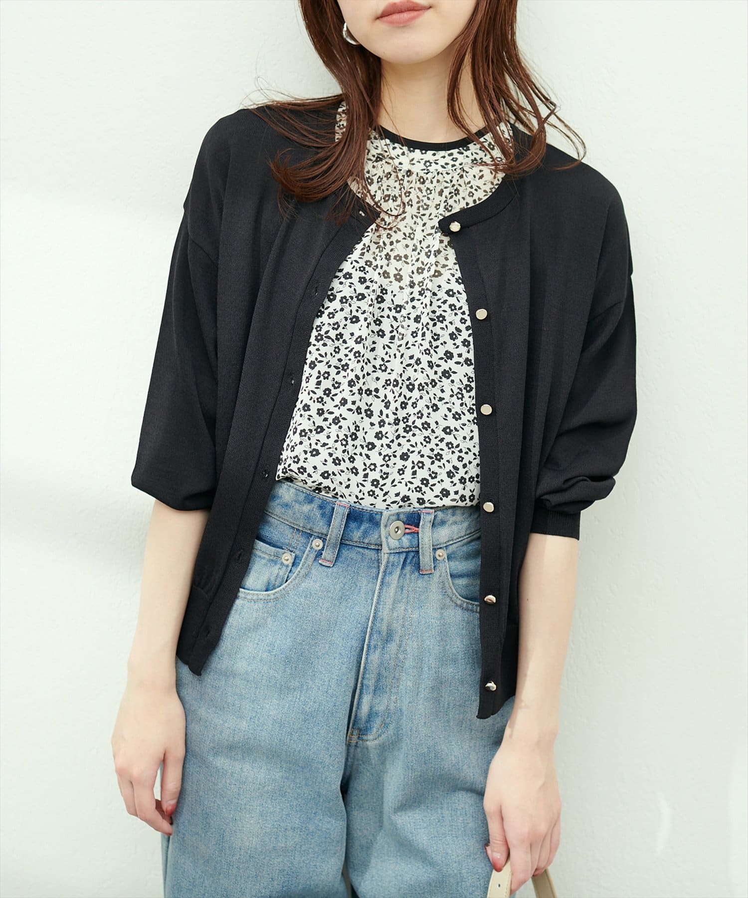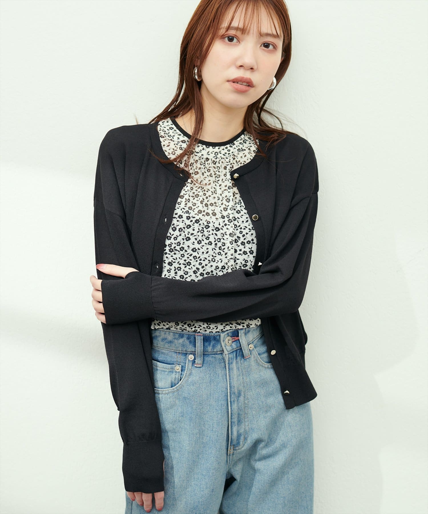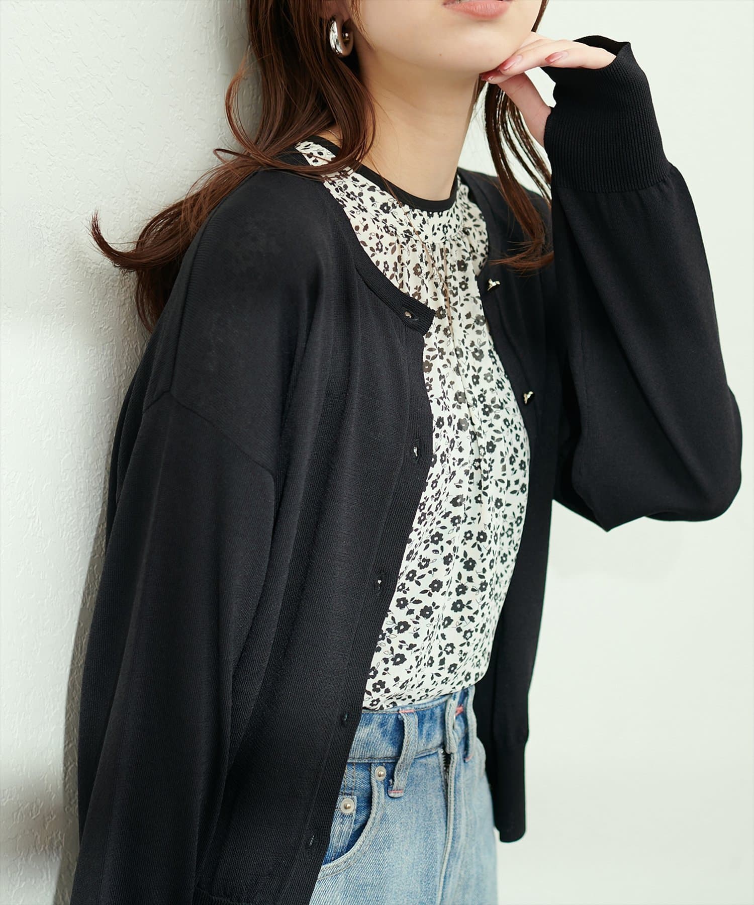 ボーダーやフラワーモチーフのインナーと合わせると、ほんのり柄が透けて雰囲気の違いを楽しんで頂けます。
