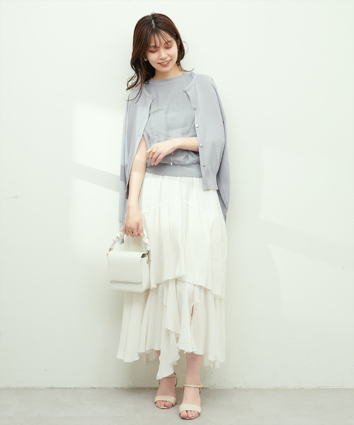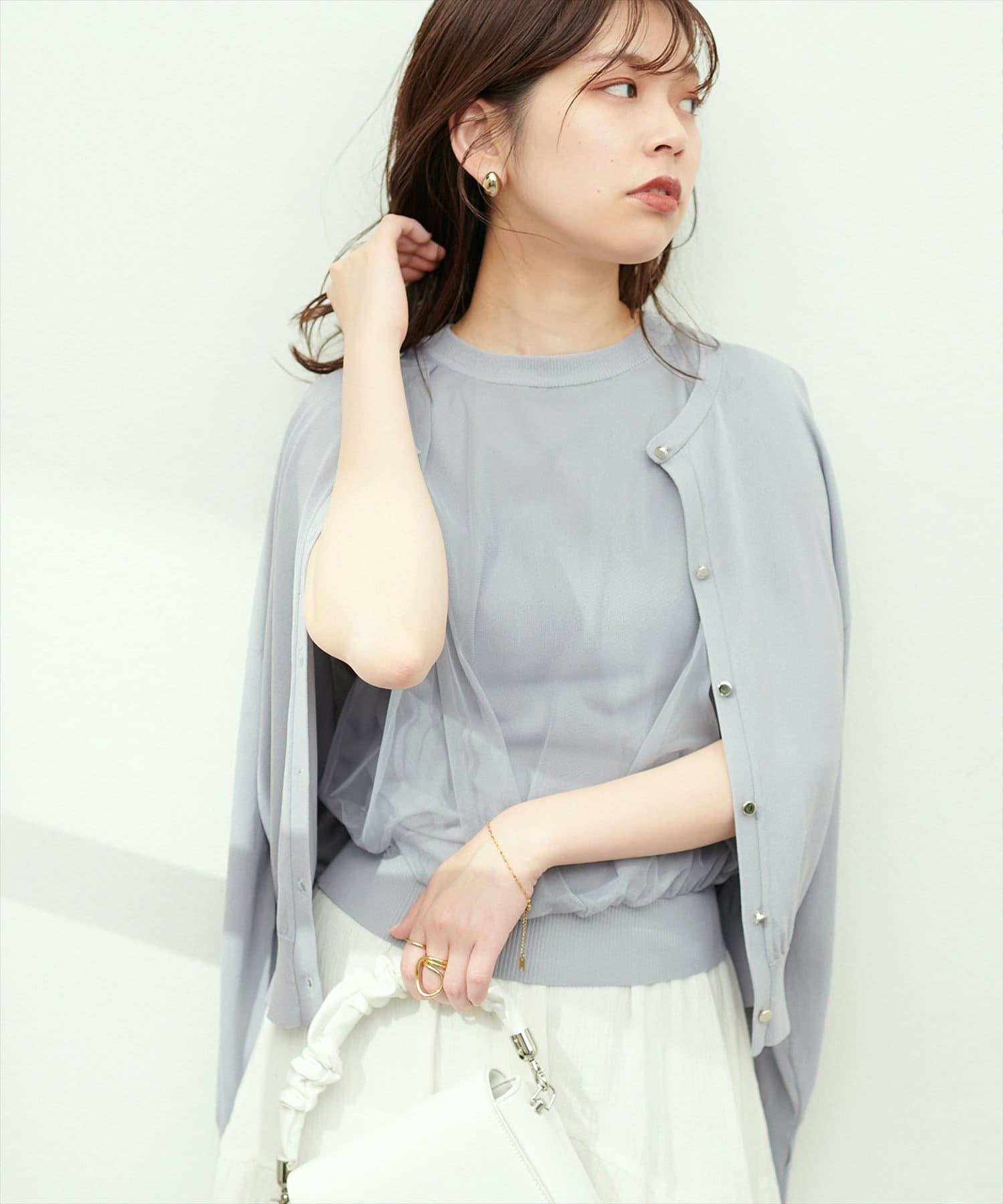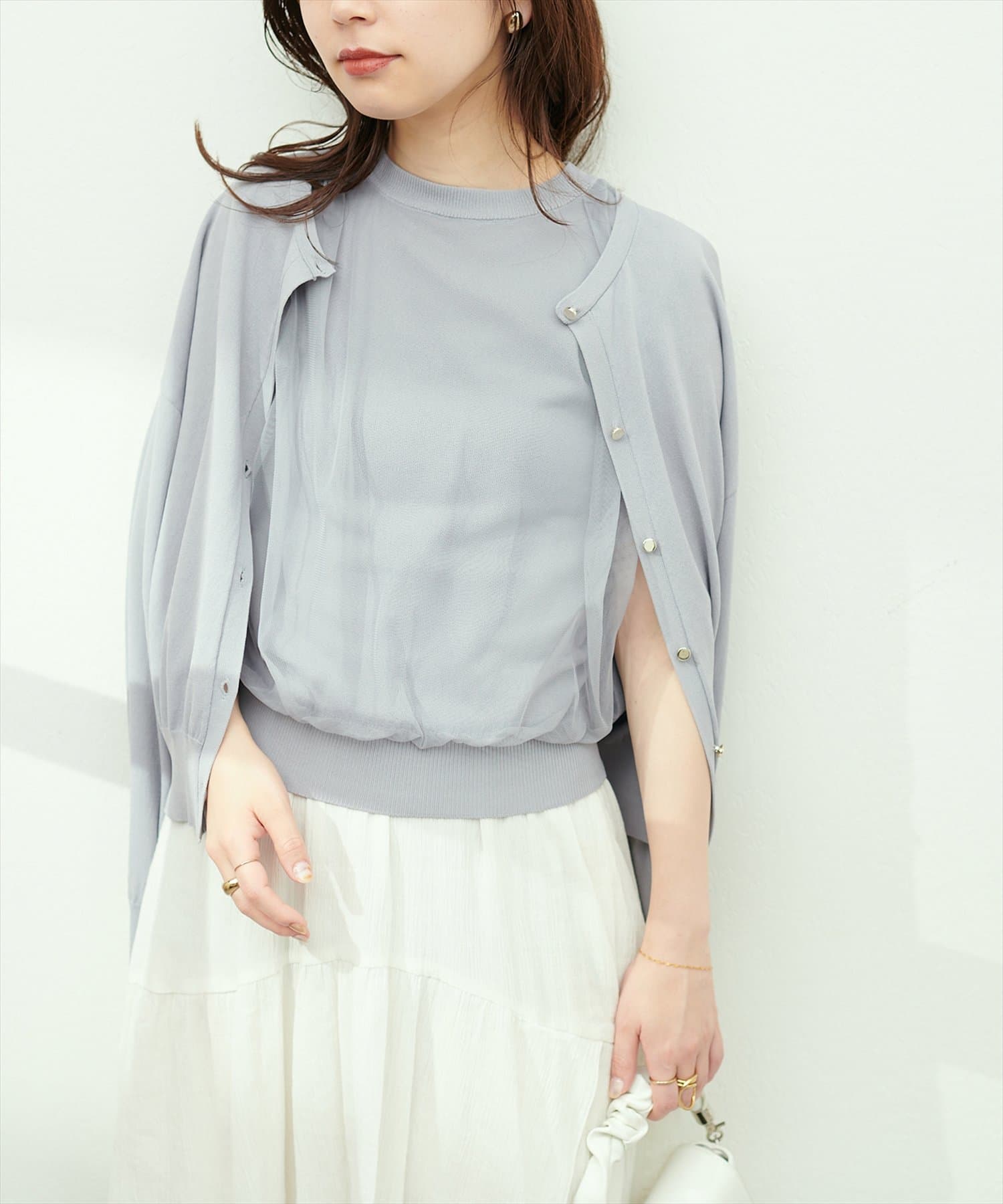 お手持ちのタンクトップやキャミソールなどにさっと羽織って頂くのはもちろん、