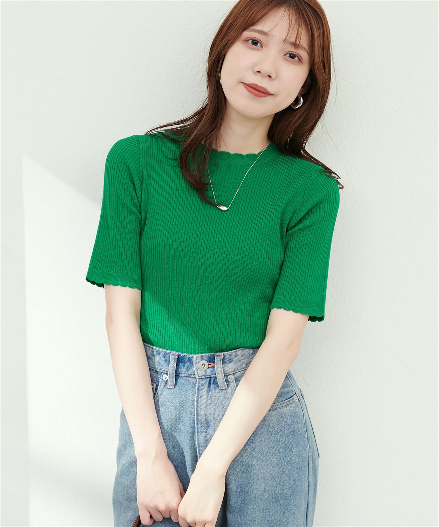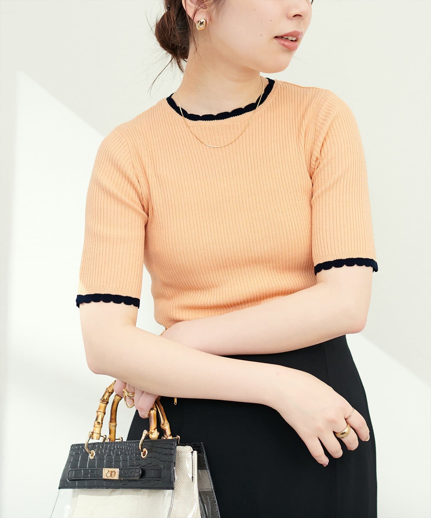 • natural couture(ナチュラルクチュール) 配色スカラップニット