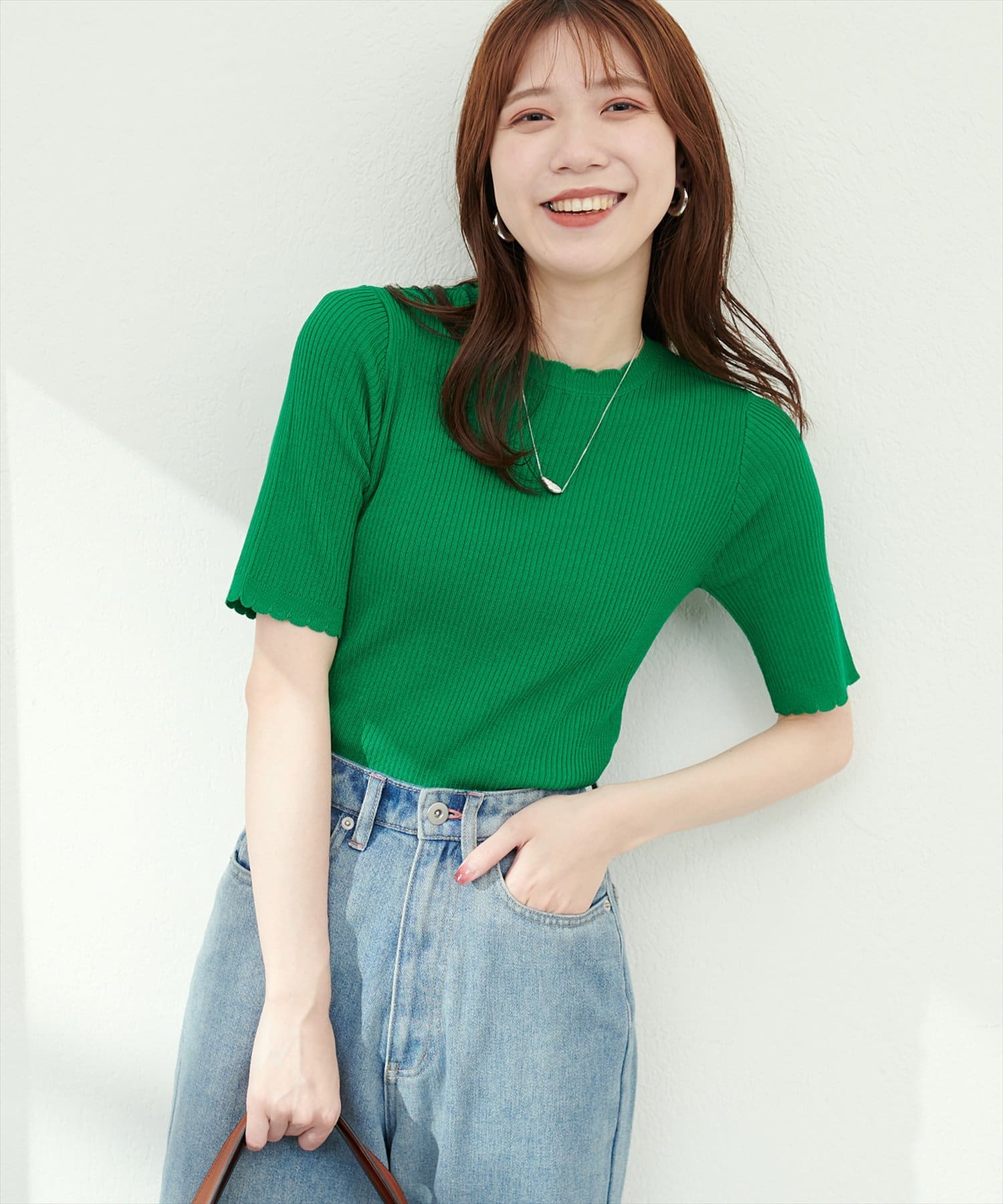 スカラップに一目惚れして購入。体のラインを綺麗に見せてくれるニットでした。
