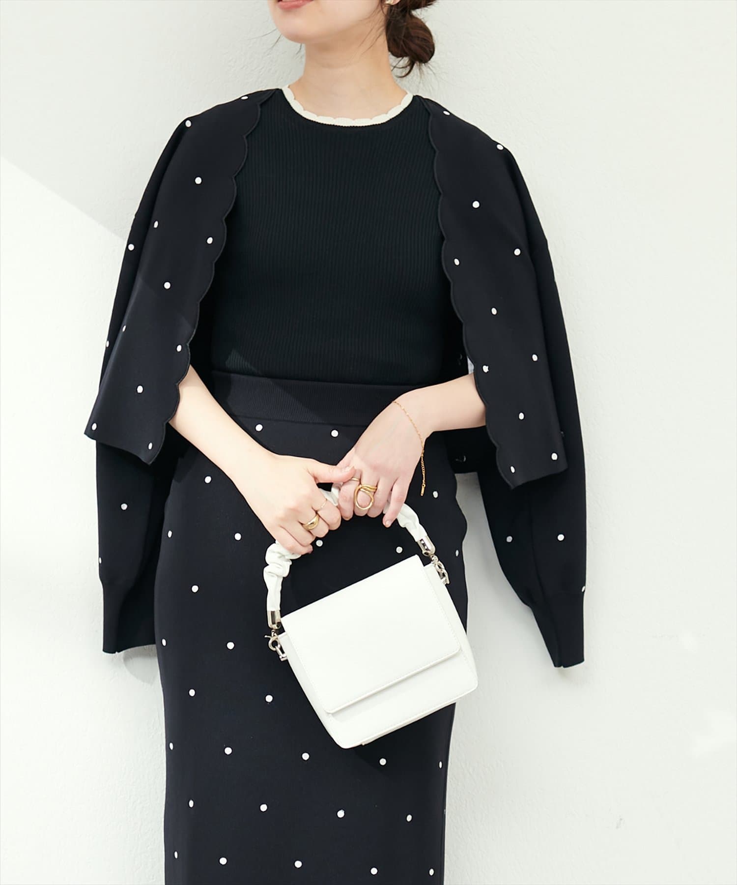 襟、袖、裾のスカラップデザインがフェミニンさを演出してくれます。