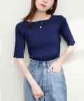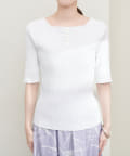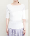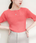 程よく肌にフィットし、柔らかな肌触りが気持ち良い細リブ使いのニット。