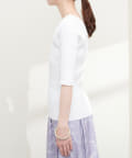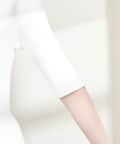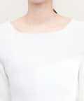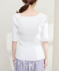 伸縮性のある生地で着心地が楽な上に、スクエアネックで品良くデコルテが見えるので、すっきりとした印象に。