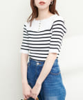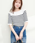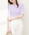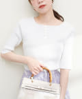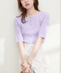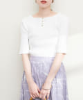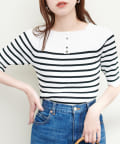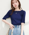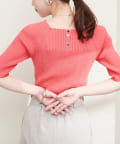 スクエアネックに金釦のアクセント◎程よい抜け感の夏ニット