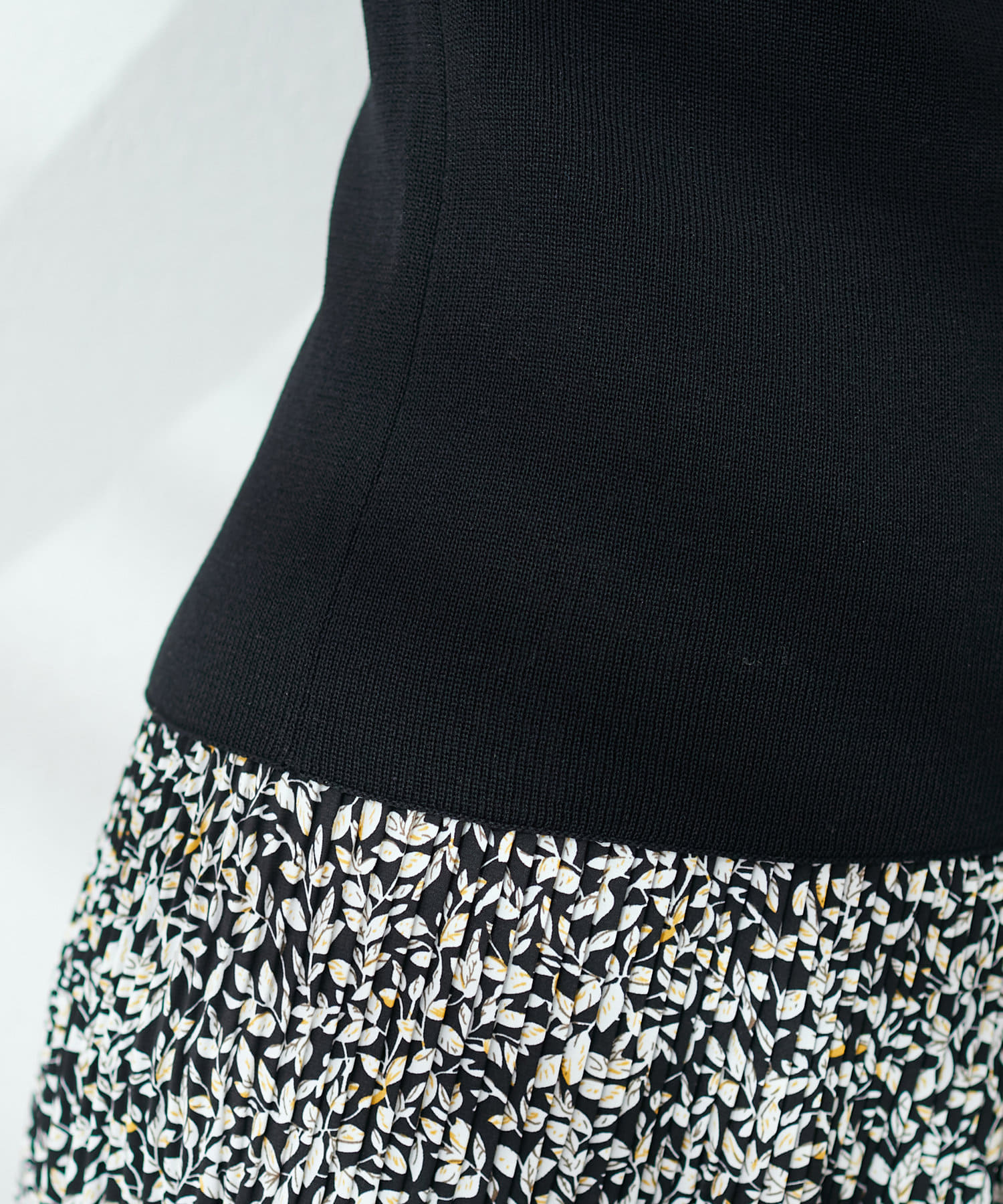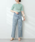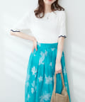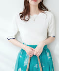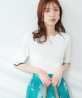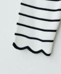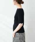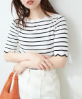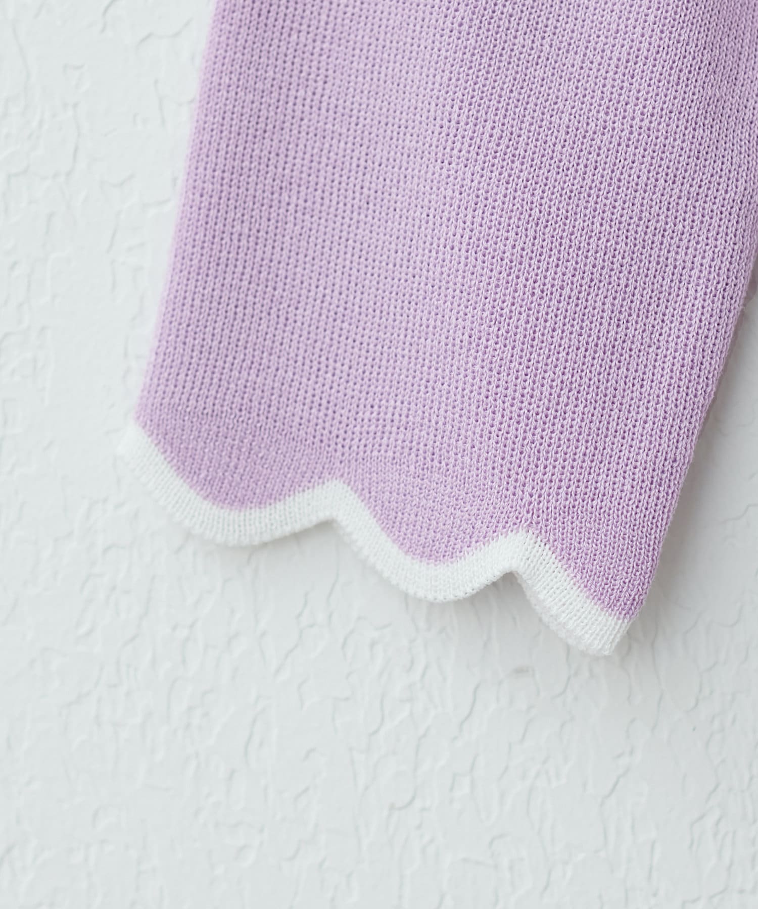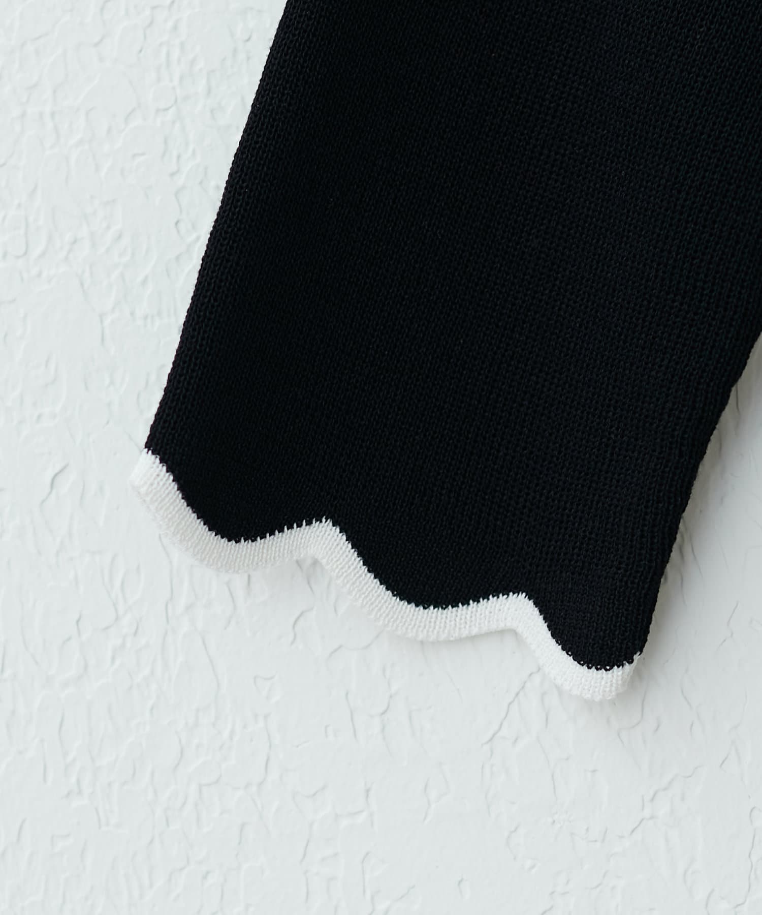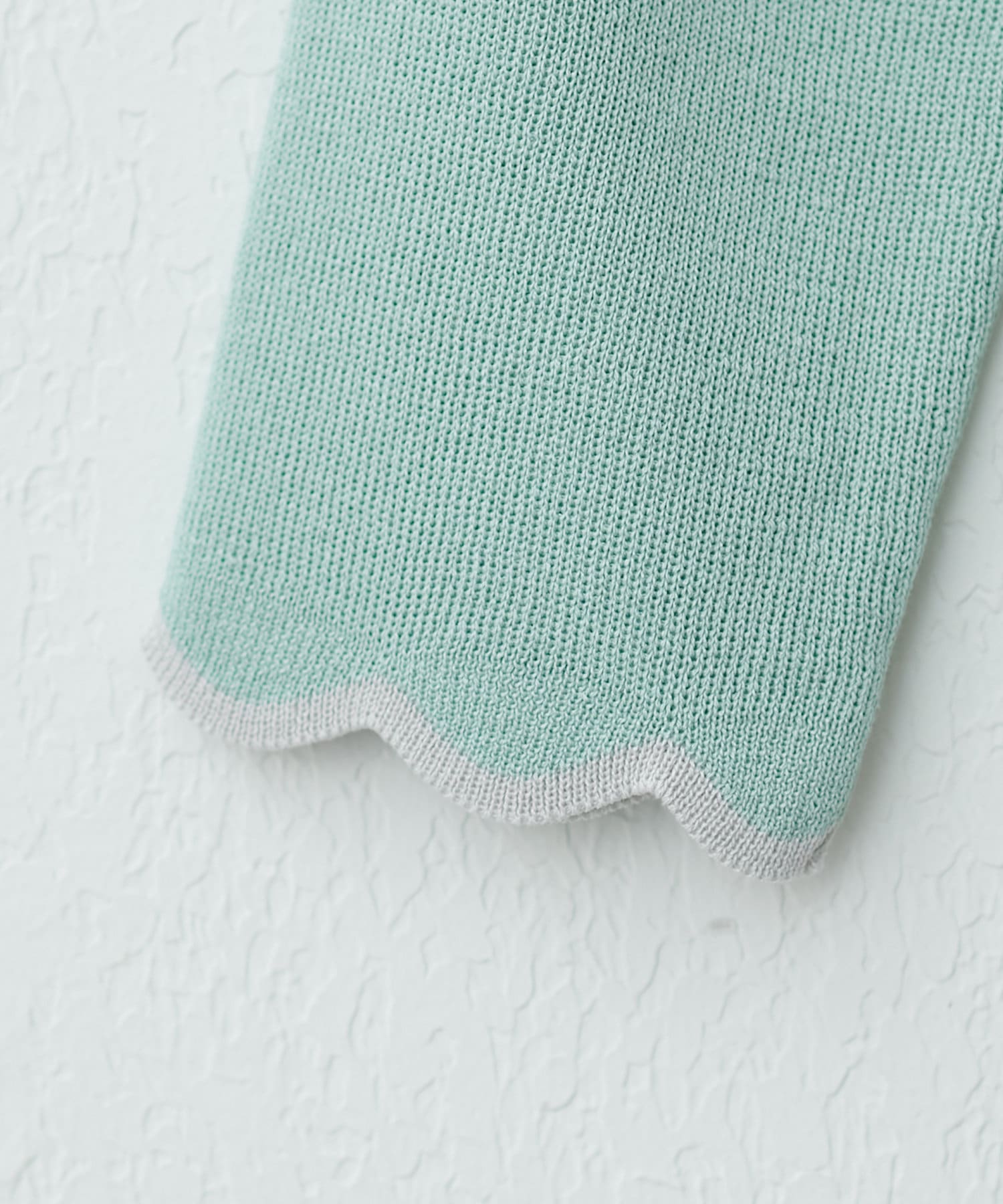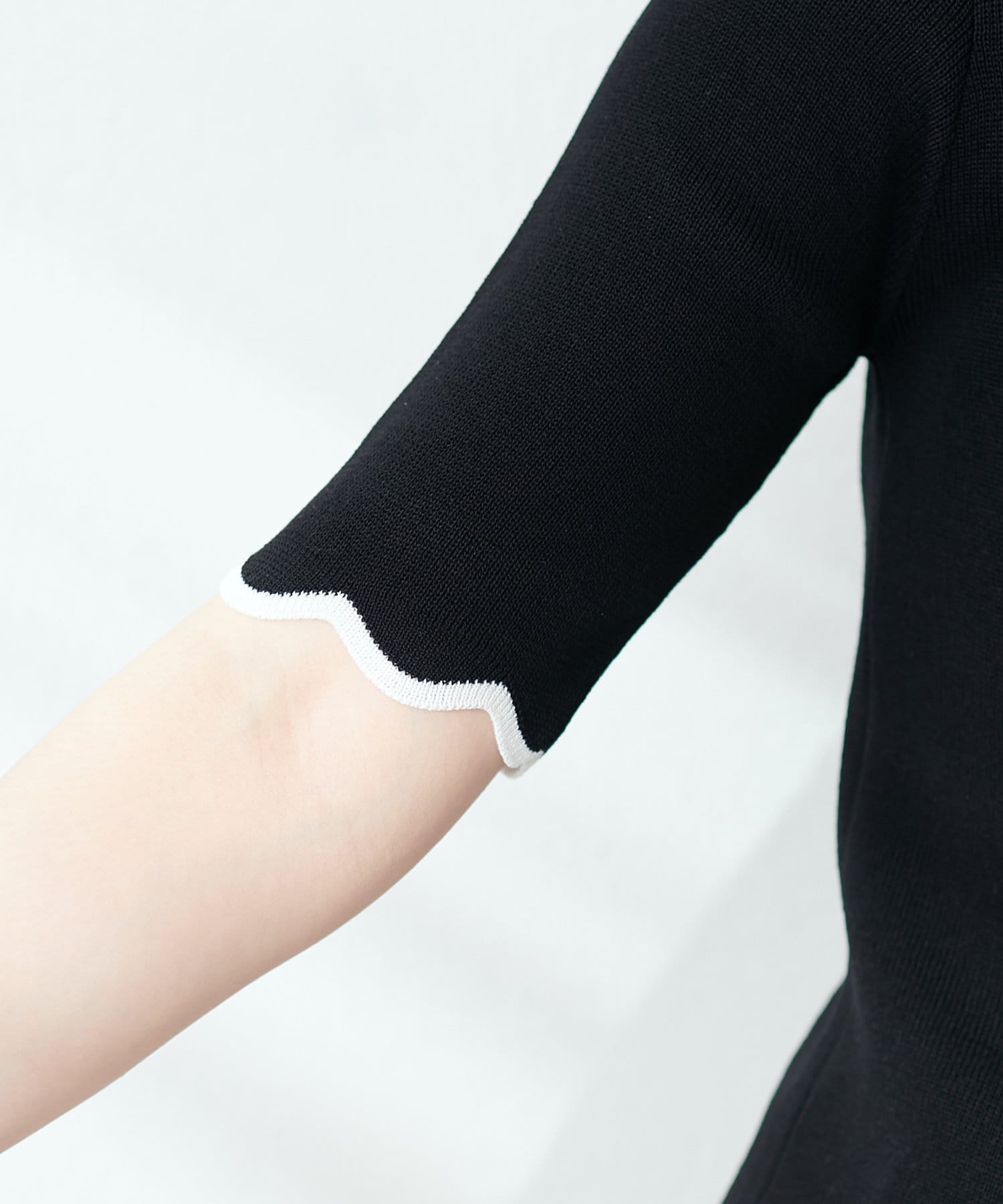 0331050360 袖口配色スカラップ7分袖強撚ニット