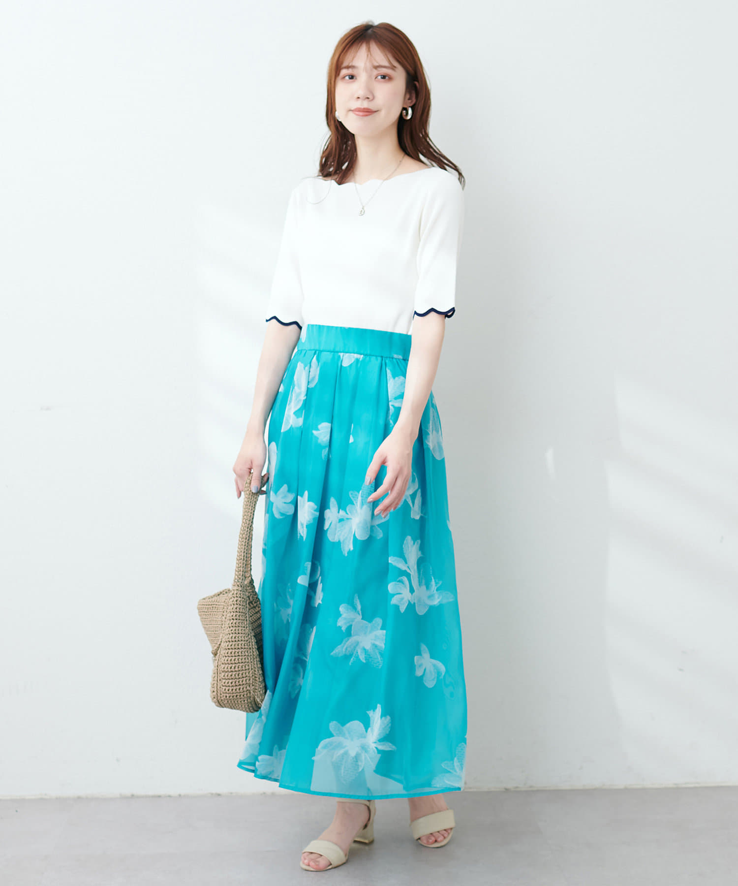 首元、袖口はスカラップデザインを採用しているのでデコルテラインをキレイに見せてくれ、