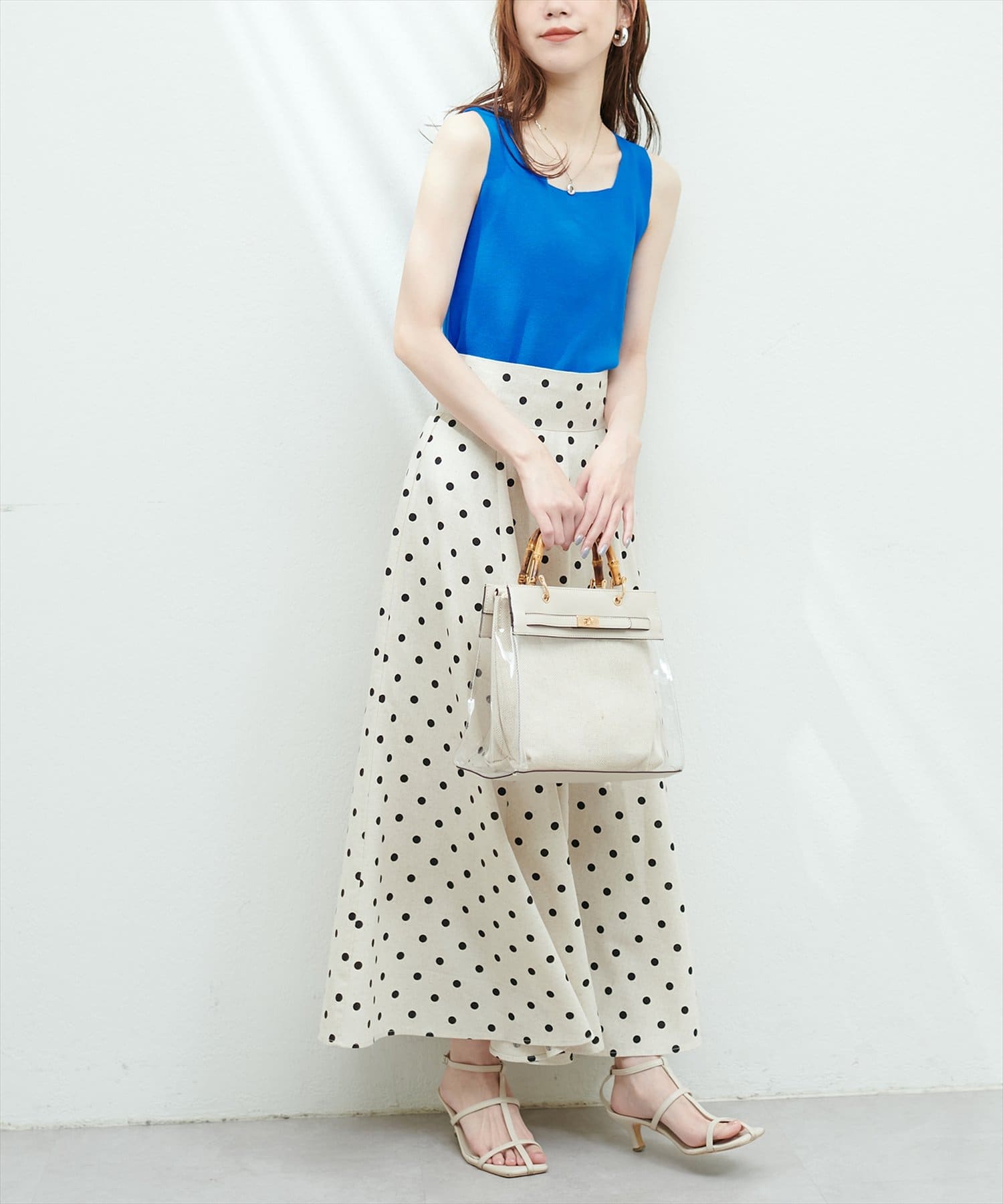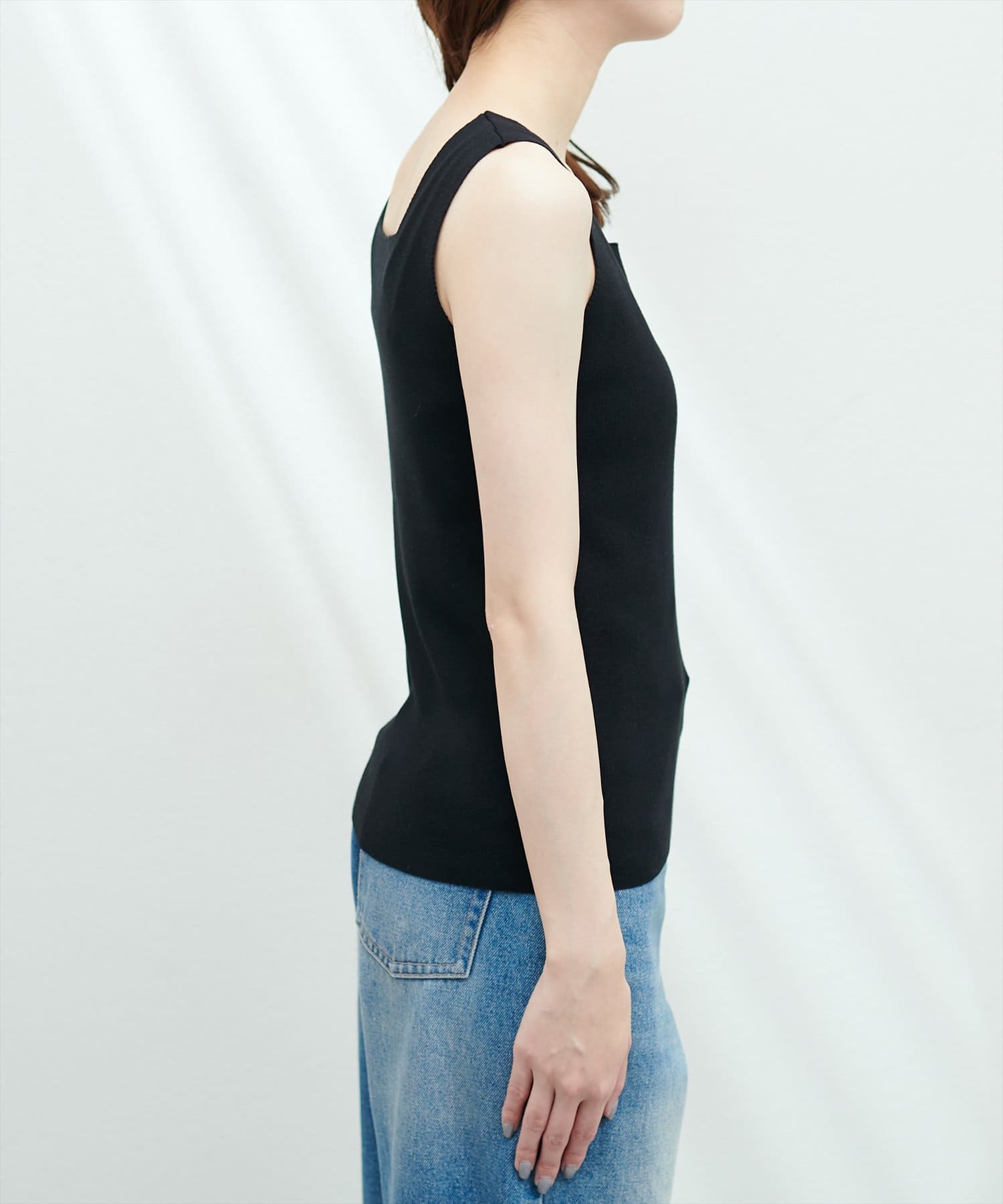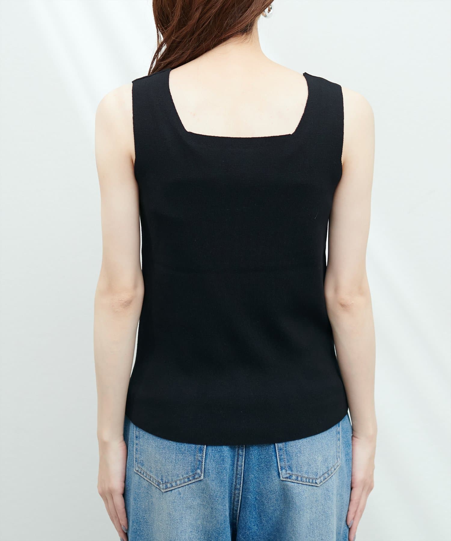 スクエアネックがコーディネートに抜け感をプラスしてくれます。